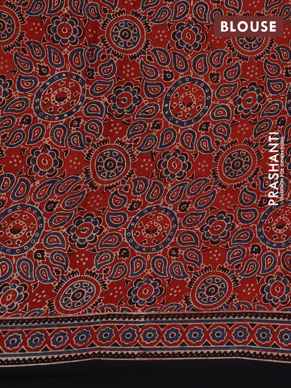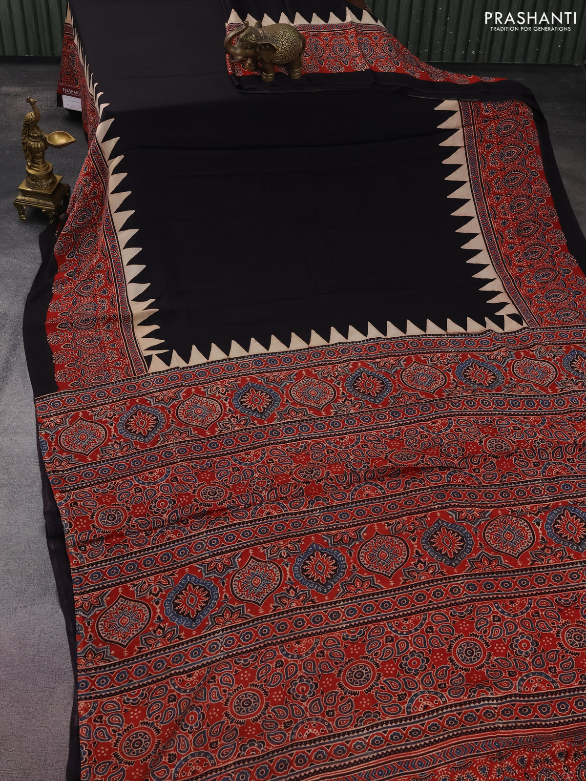 Modal silk saree black and maroon with plain body and ajrakh printed border & pallu