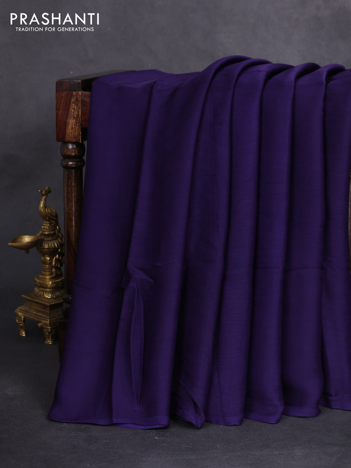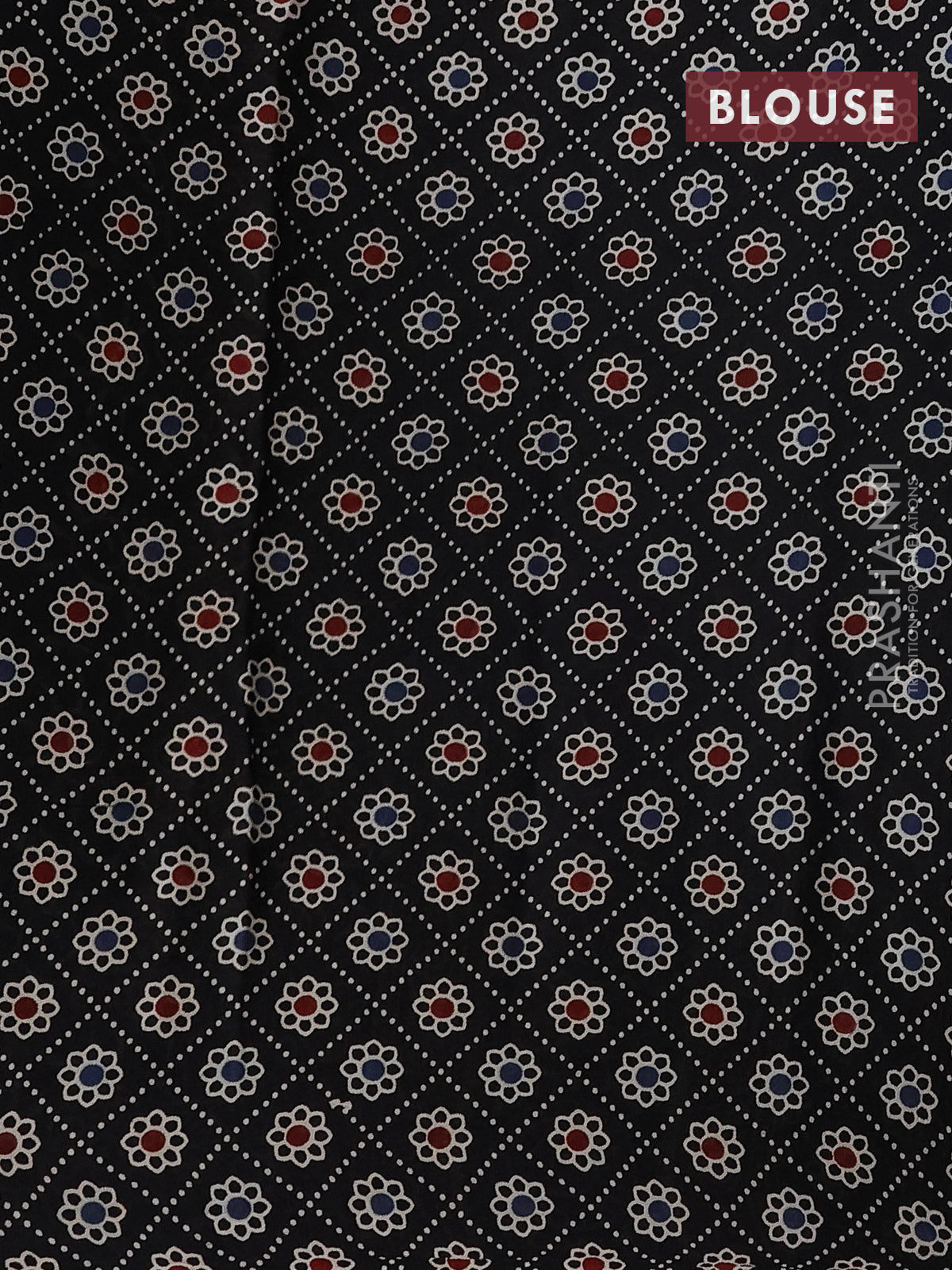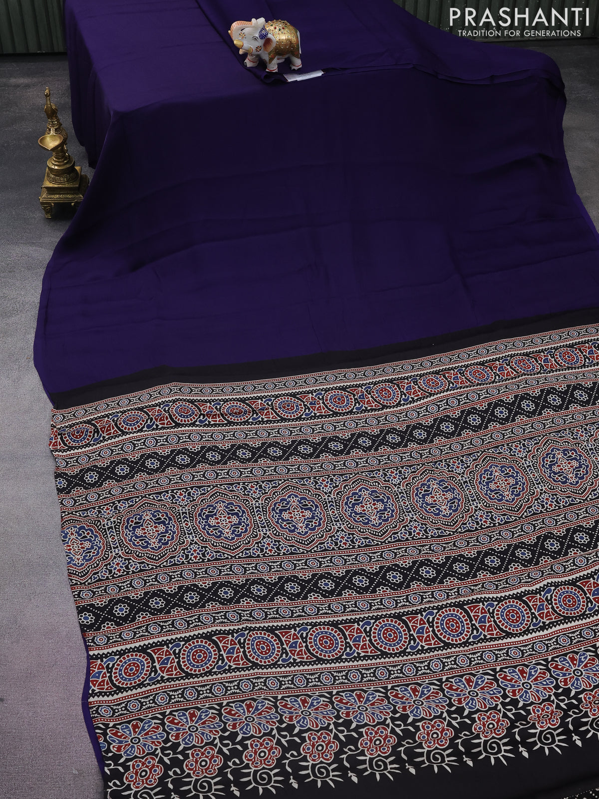 Modal silk saree blue and black with plain body and ajrakh printed pallu & blouse