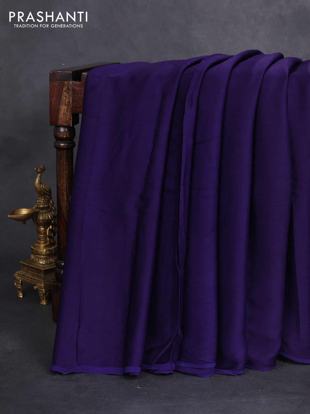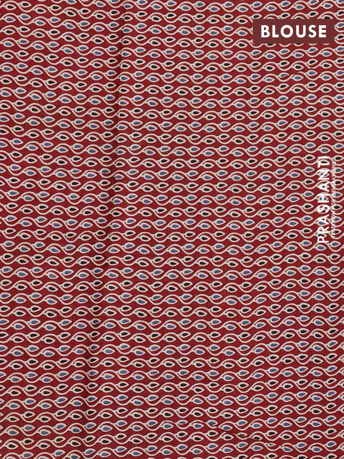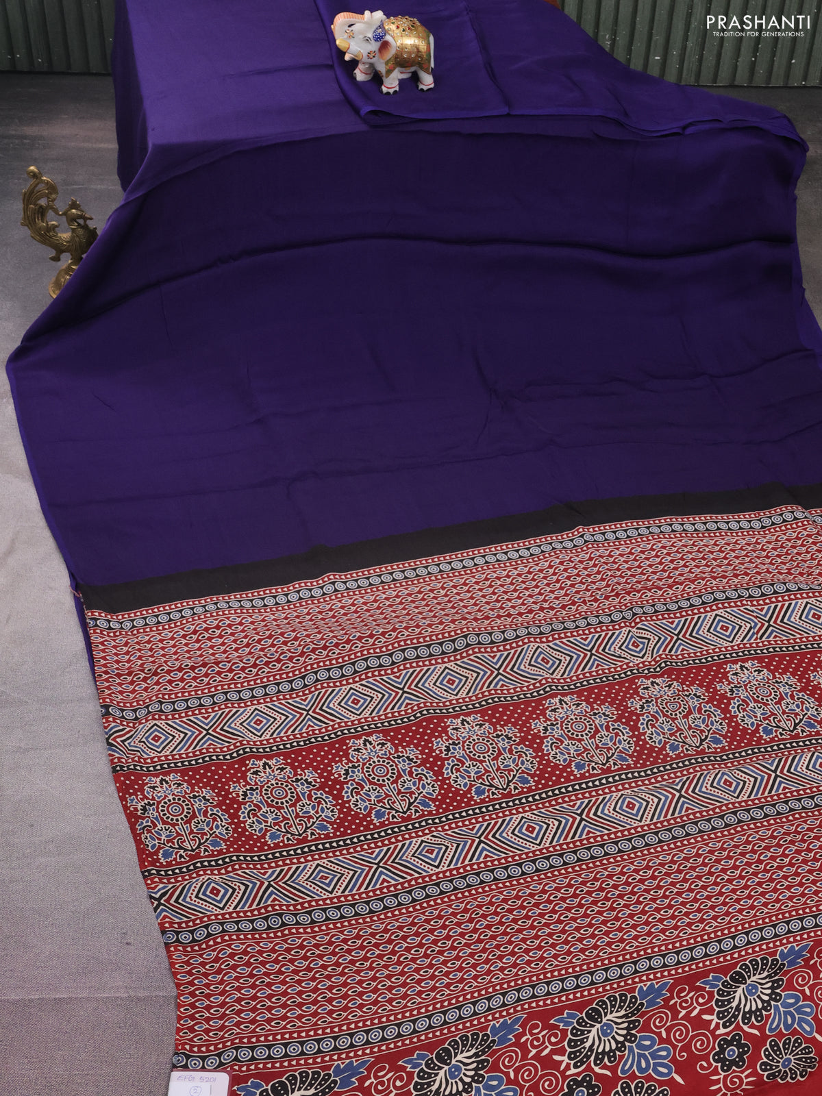 Modal silk saree blue and maroon with plain body and ajrakh printed pallu & blouse