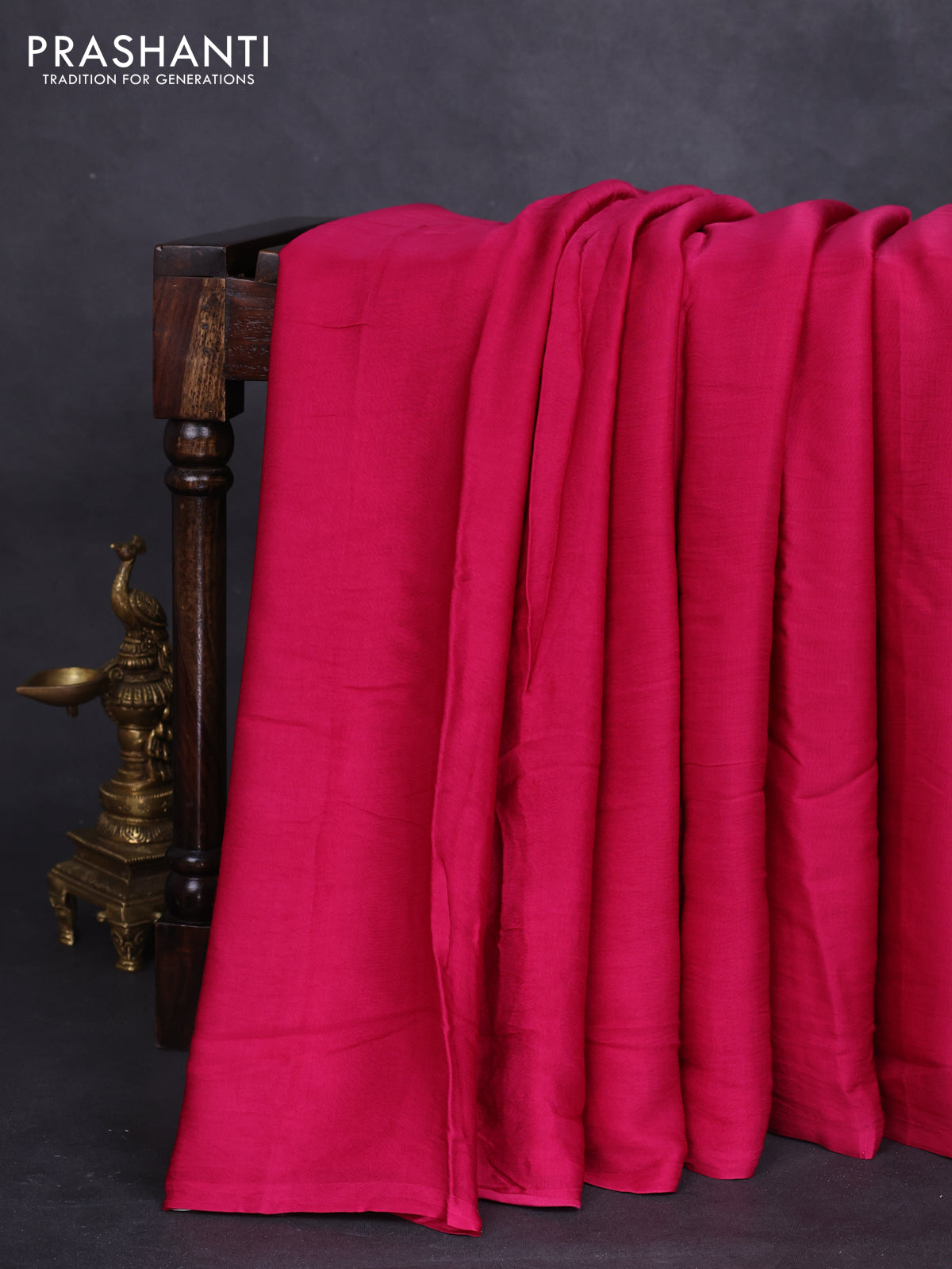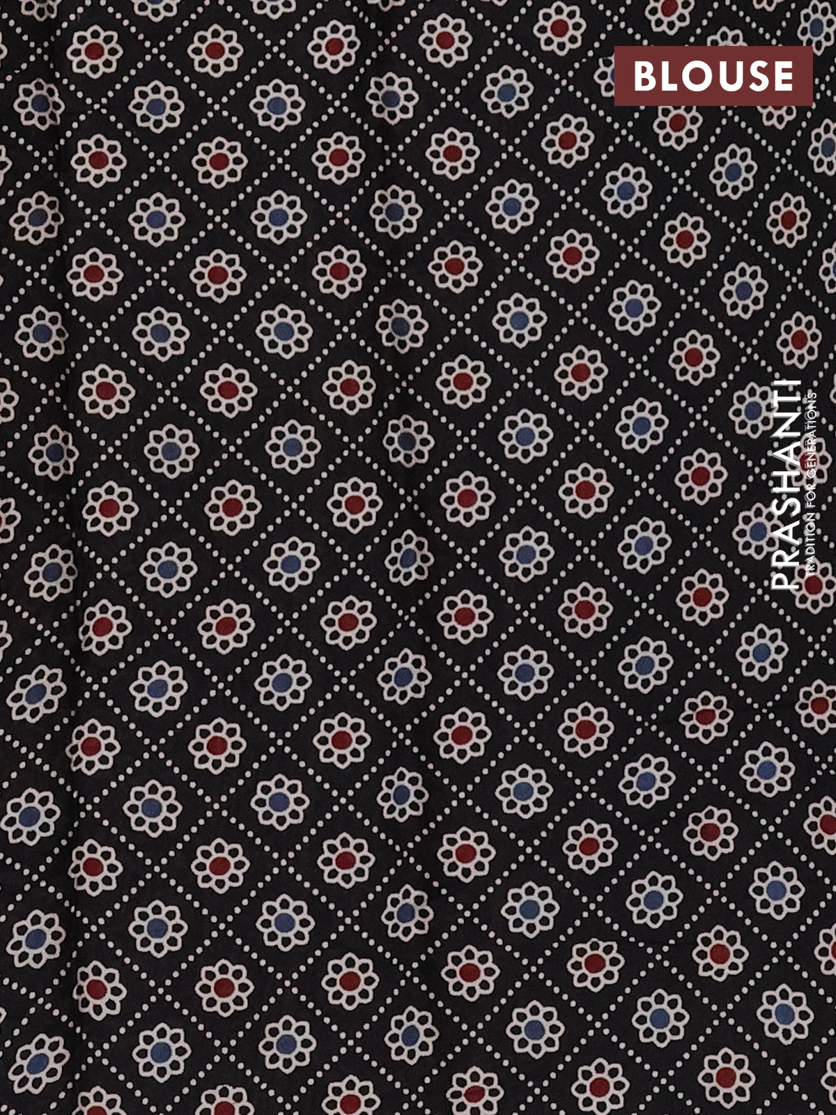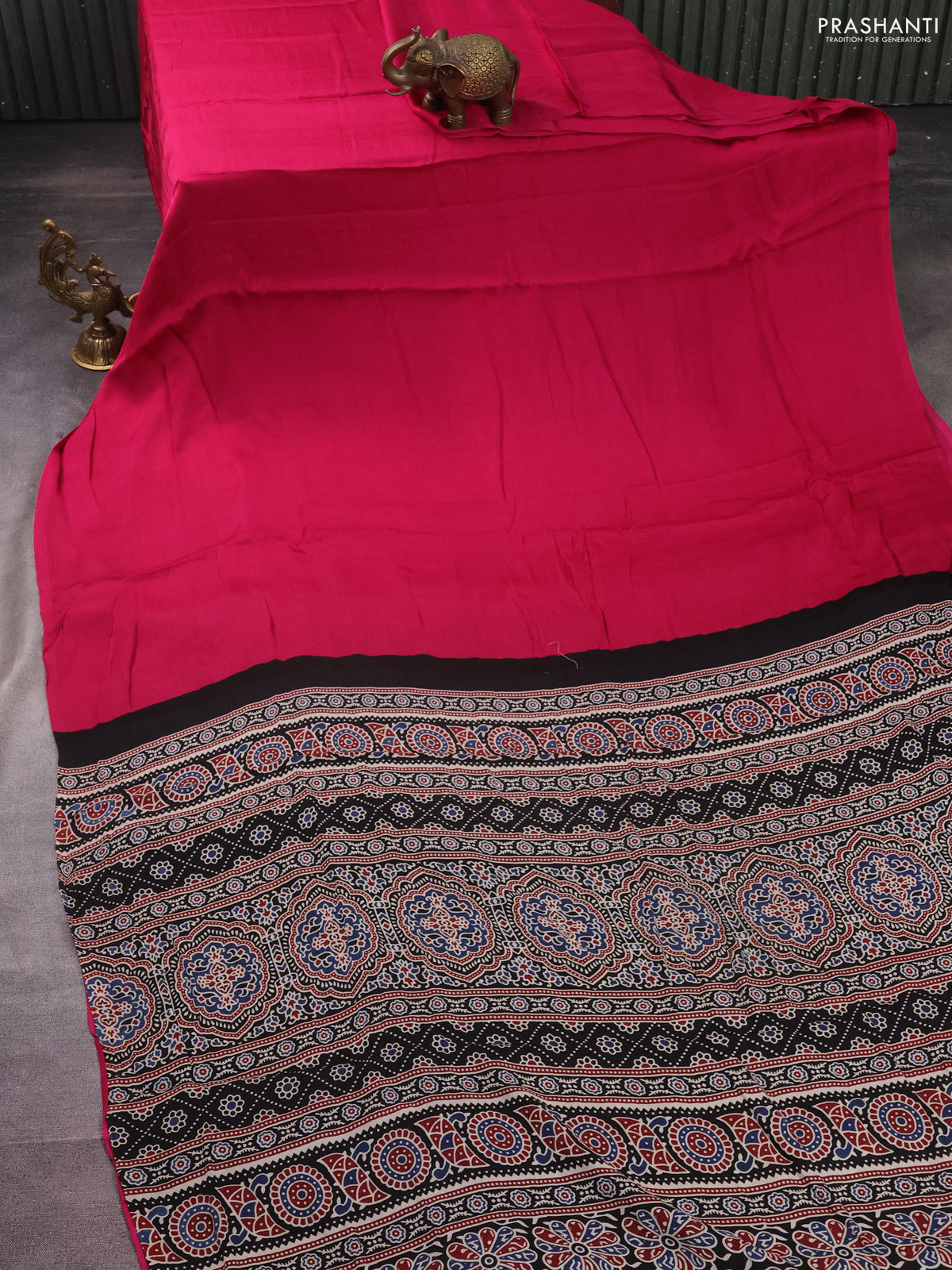 Modal silk saree pink and black with plain body and ajrakh printed pallu & blouse