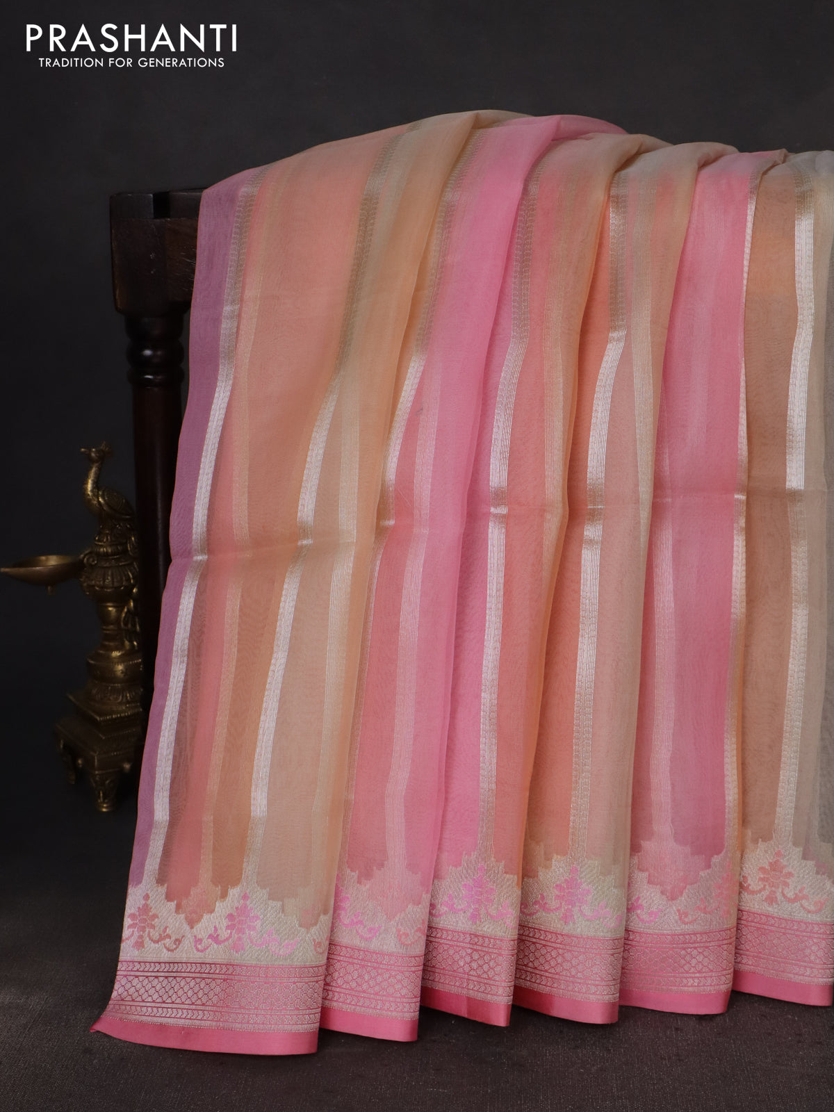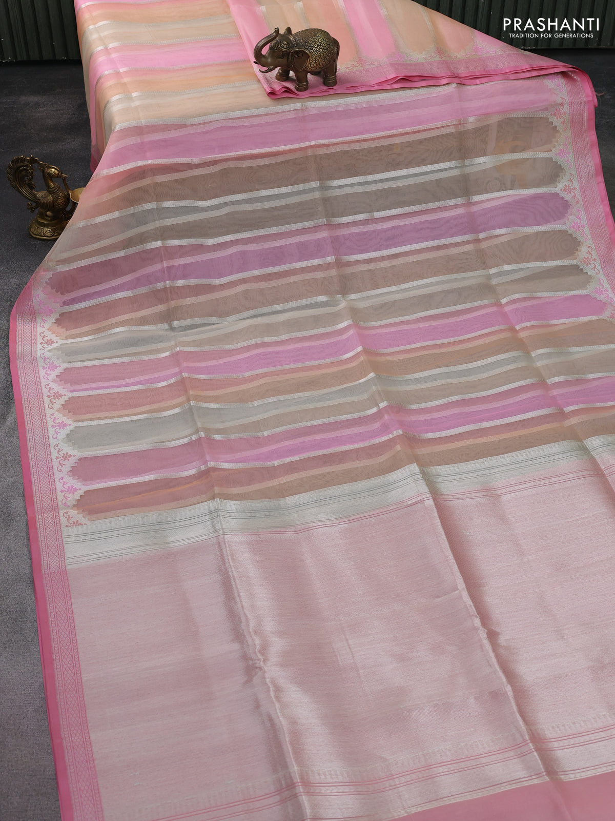 multi colour and peach pink Banarasi kora jamdhani silk saree