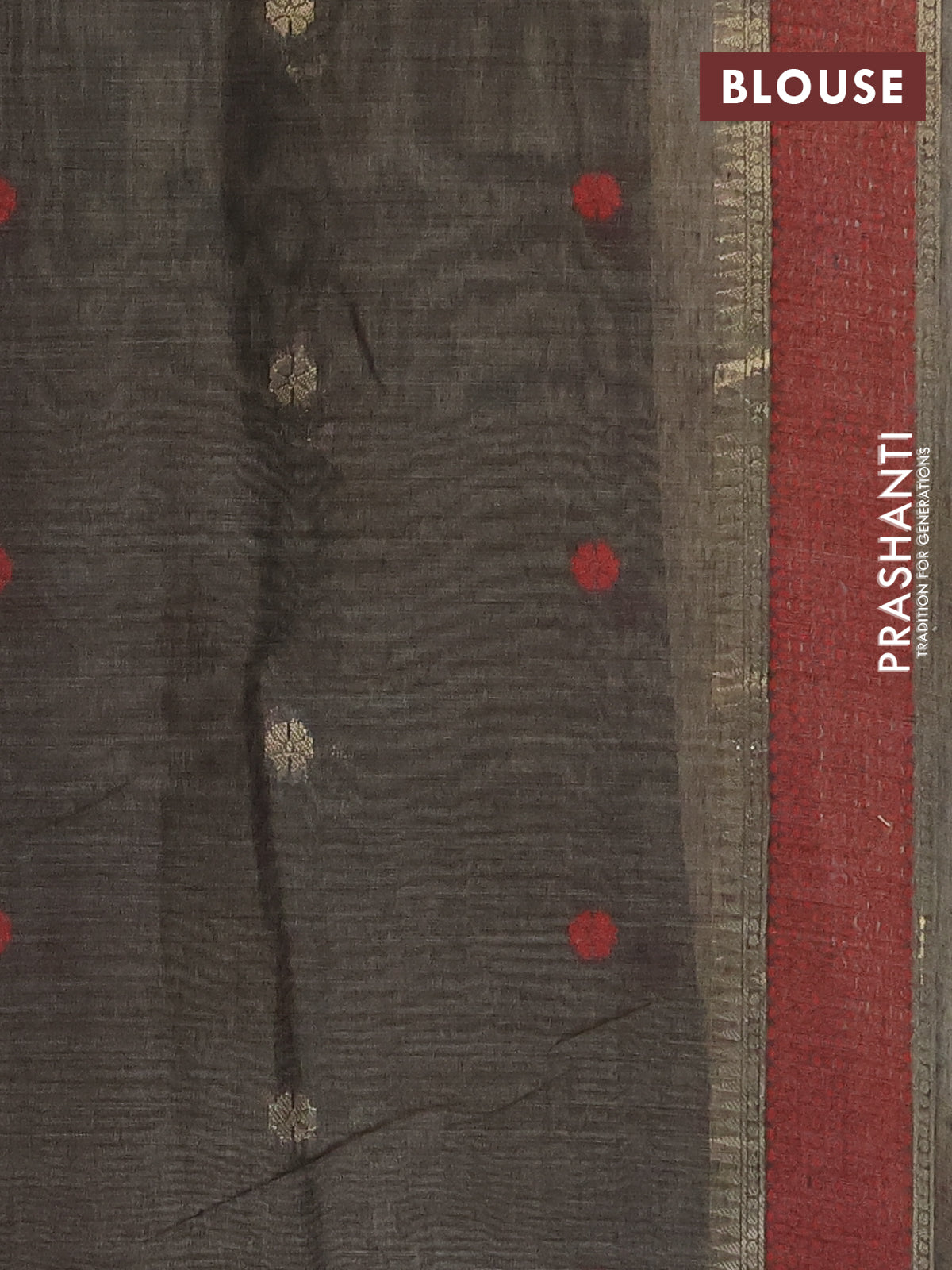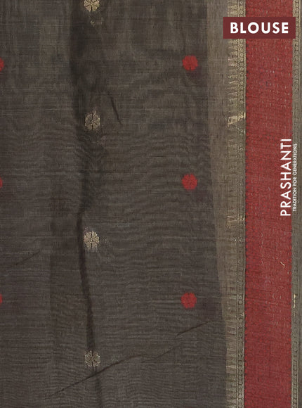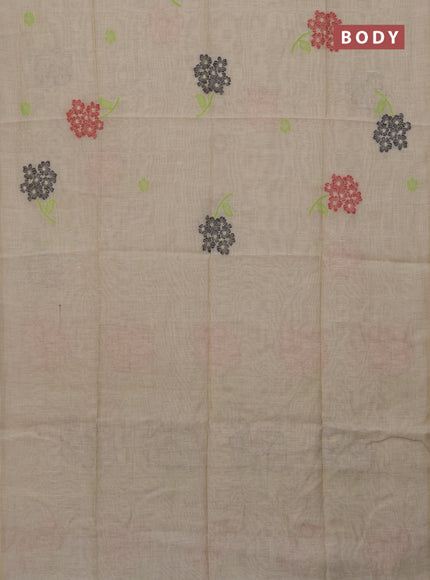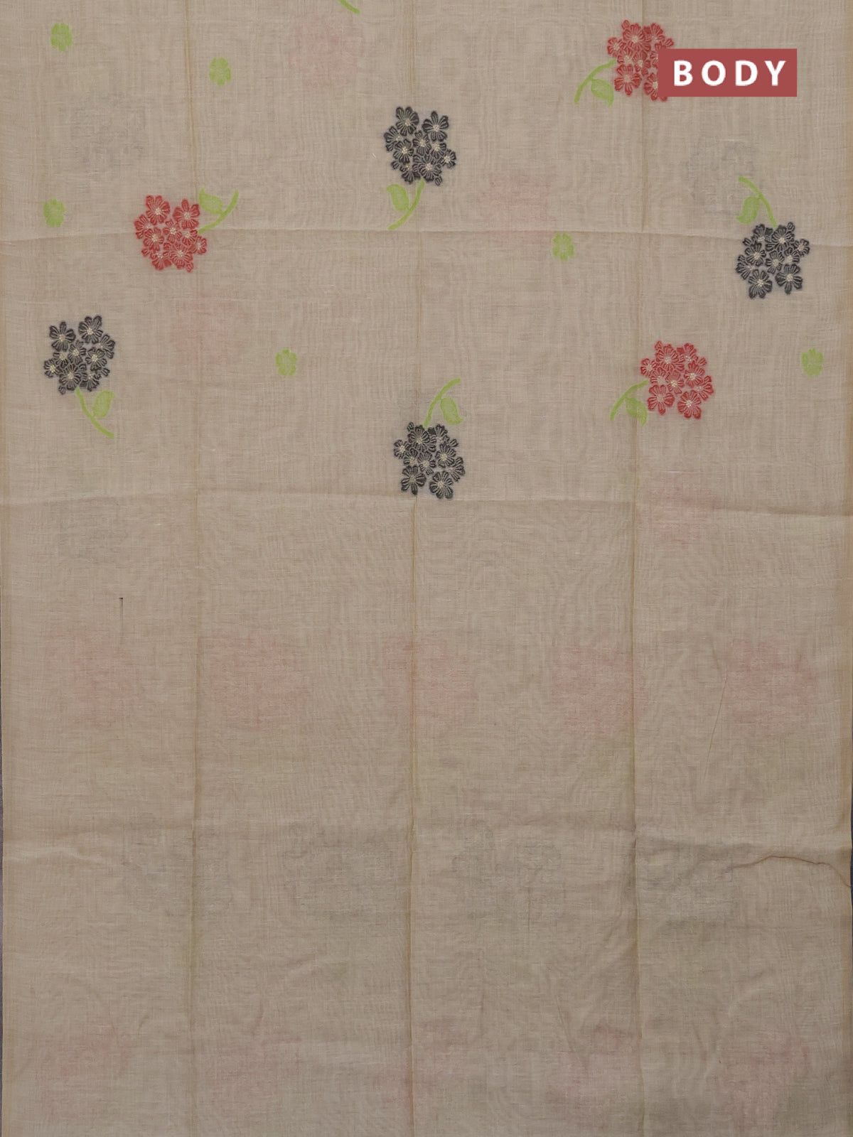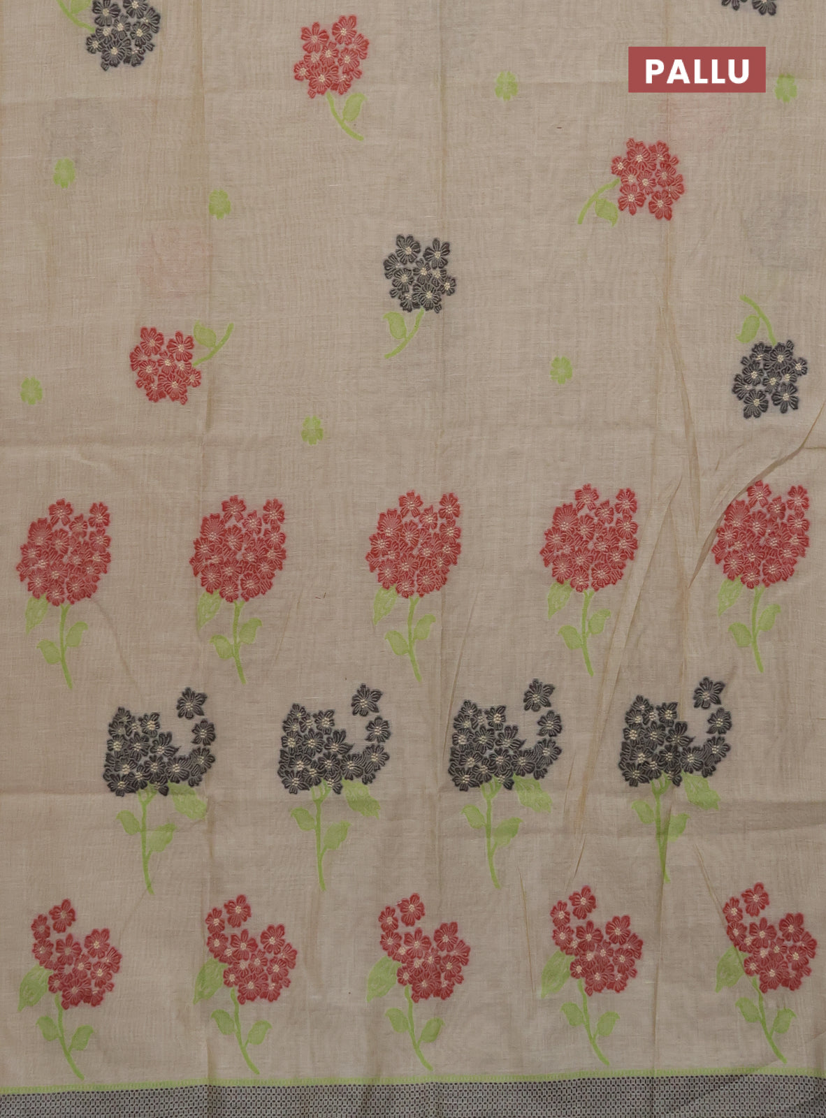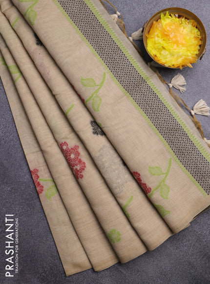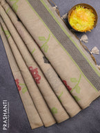 Munga cotton saree beige and black with floral thread woven buttas in borderless style