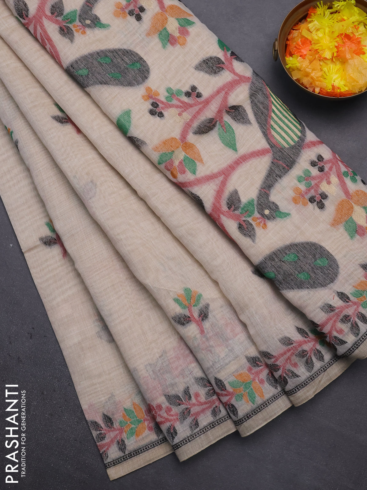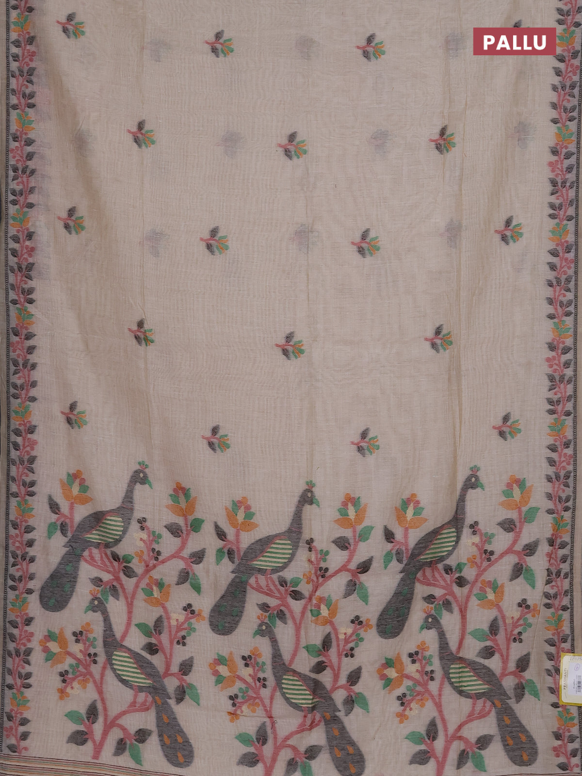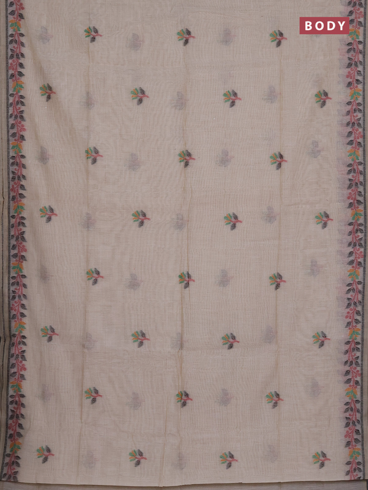 Munga cotton saree beige and maroon with thread woven floral buttas and thread weaving pallu