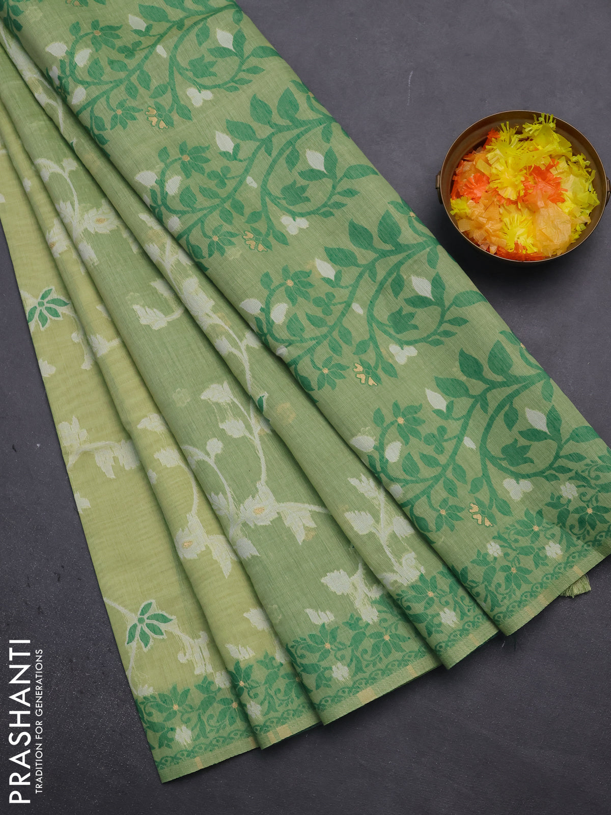 Munga cotton saree light green and green with allover thread weaves and thread weaving pallu