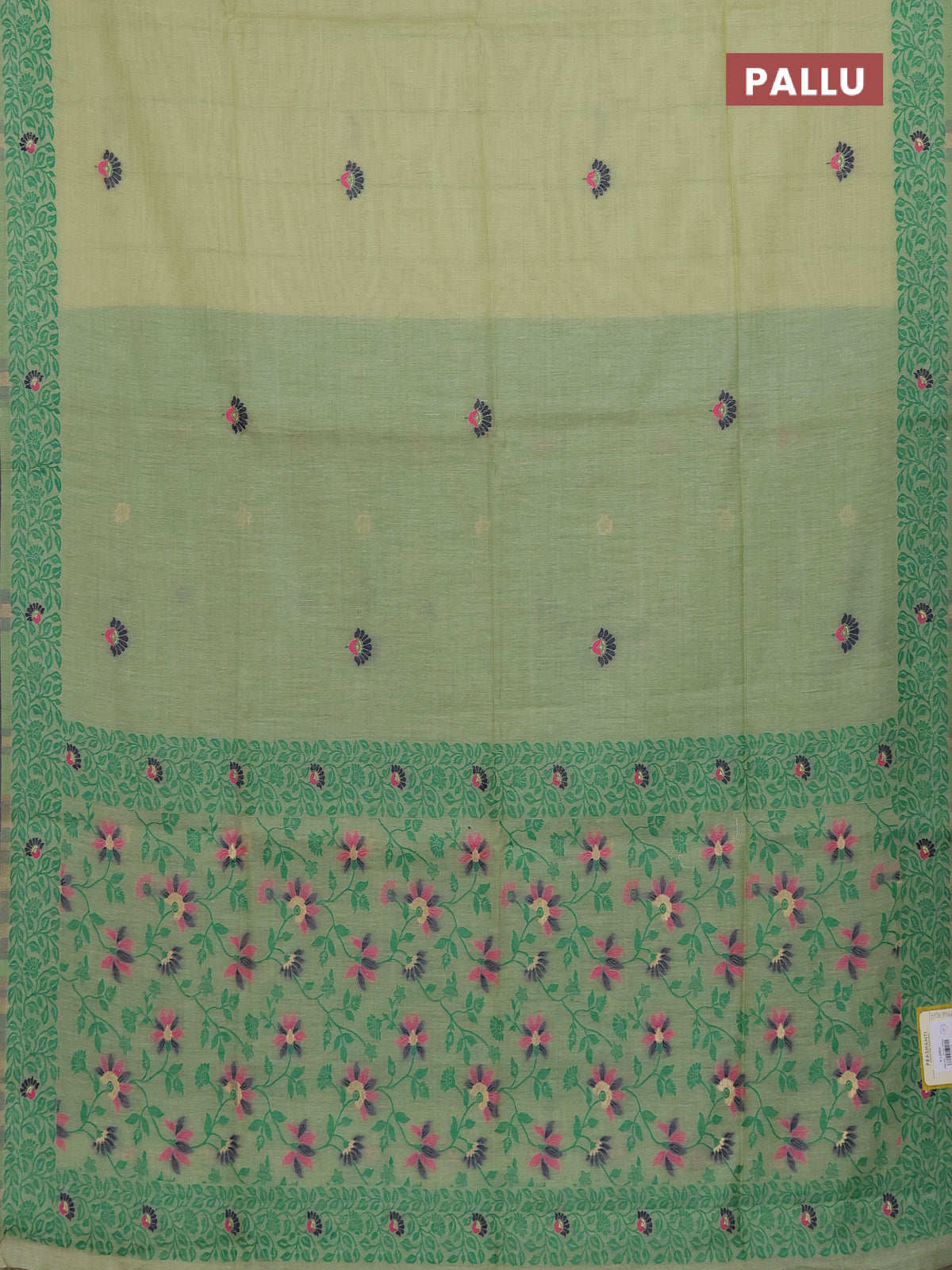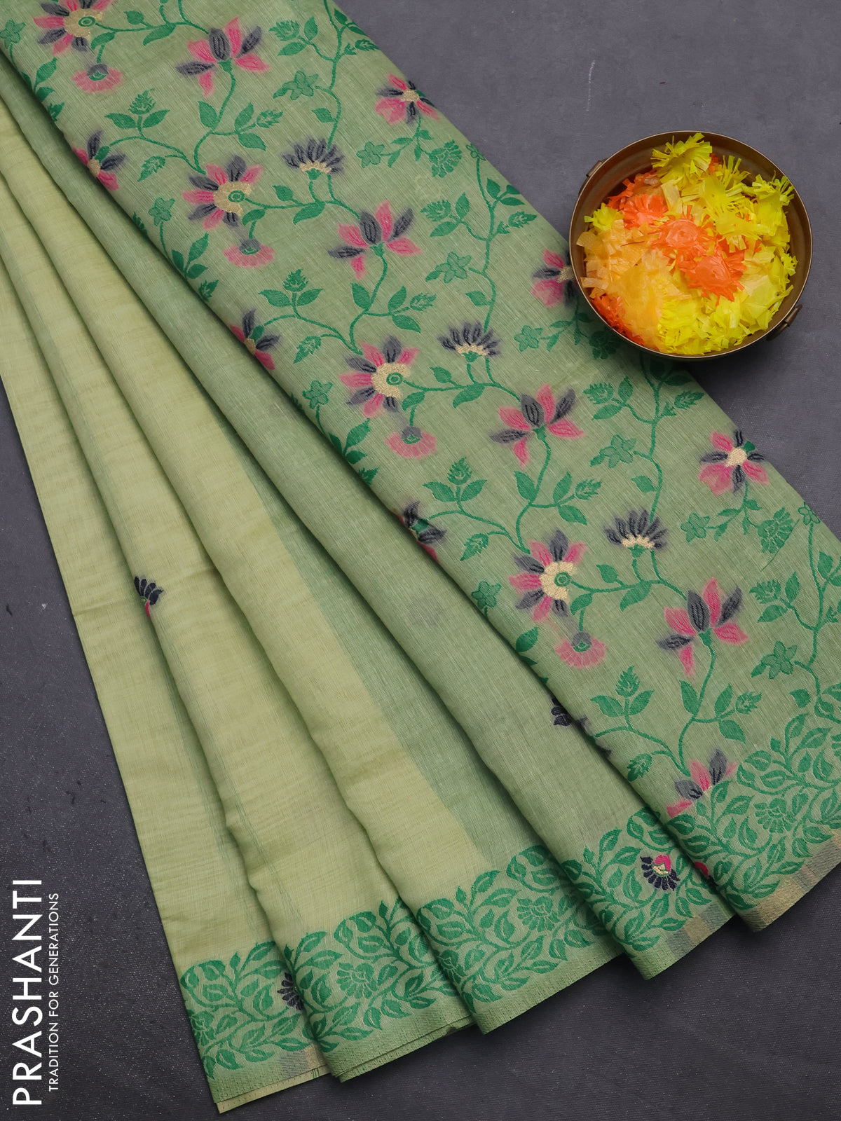Munga cotton saree pastel green and green with thread woven floral buttas and thread woven pallu