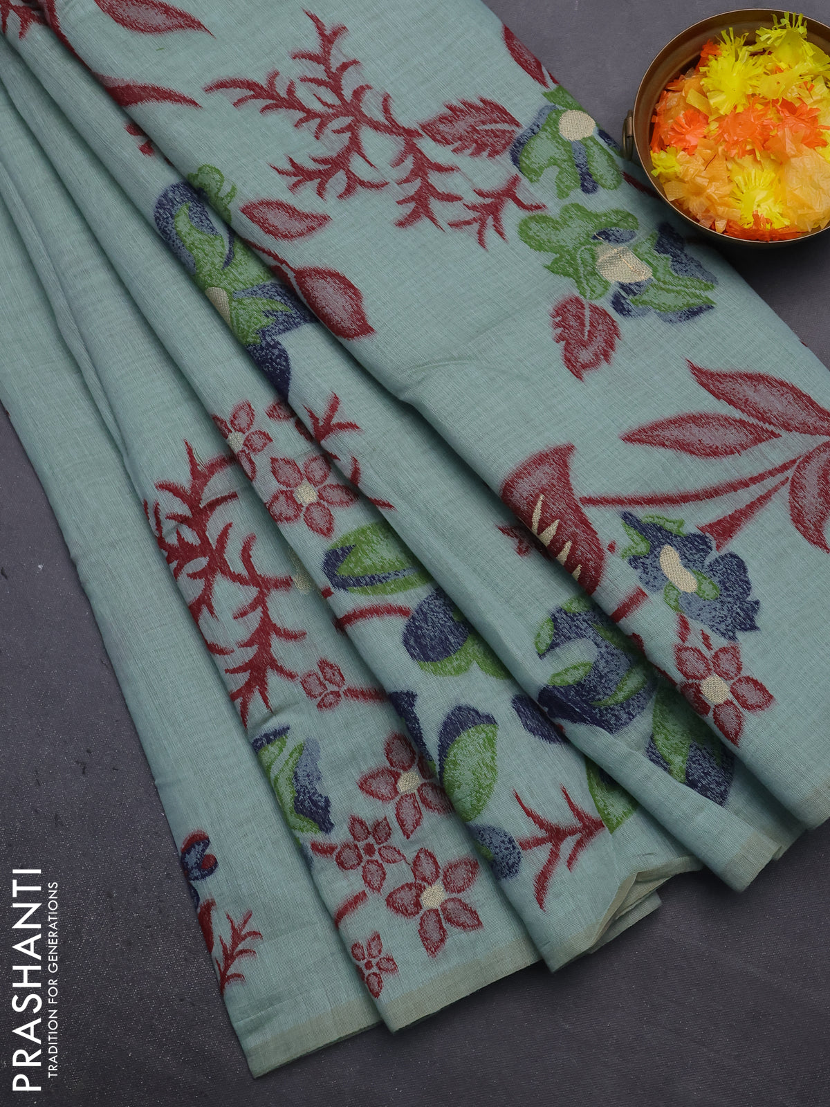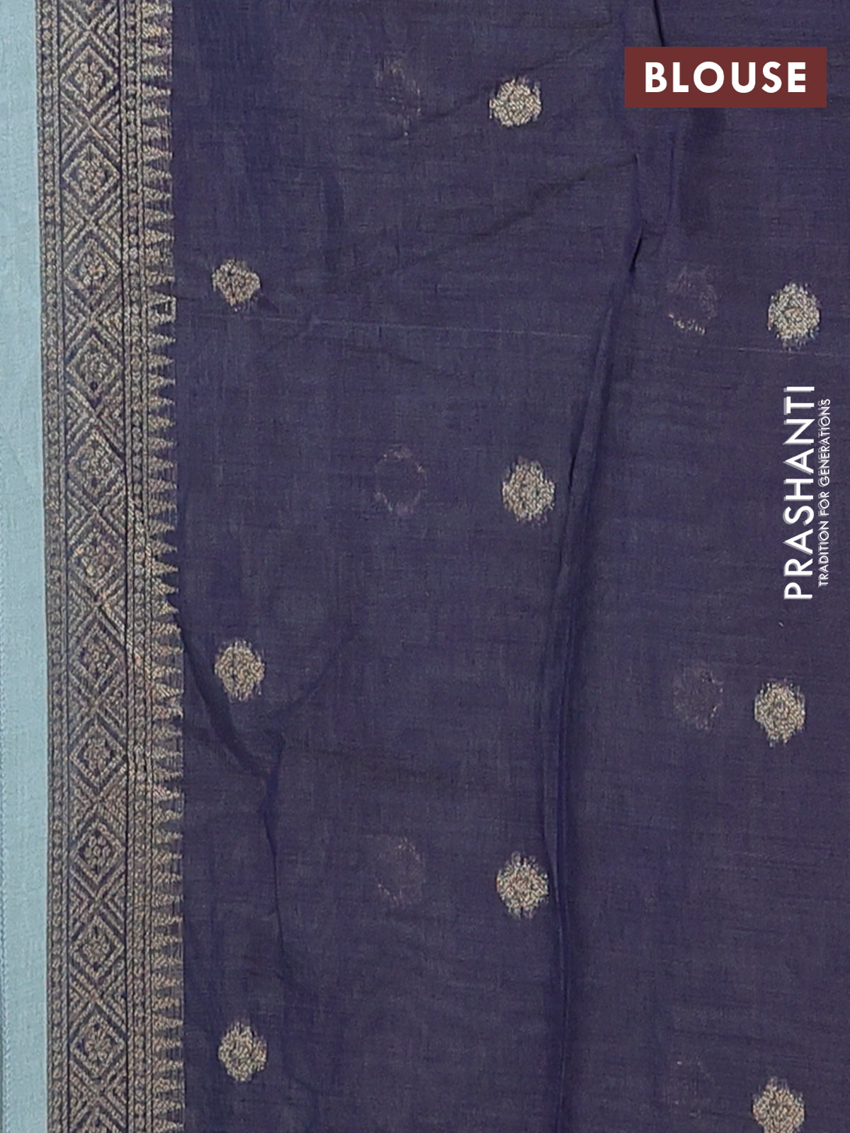 Munga cotton saree pastel green and navy blue with allover thread weaves in borderless style