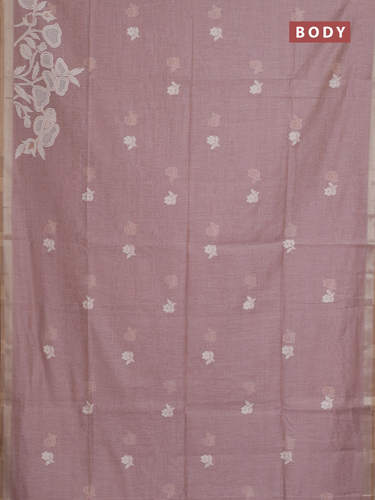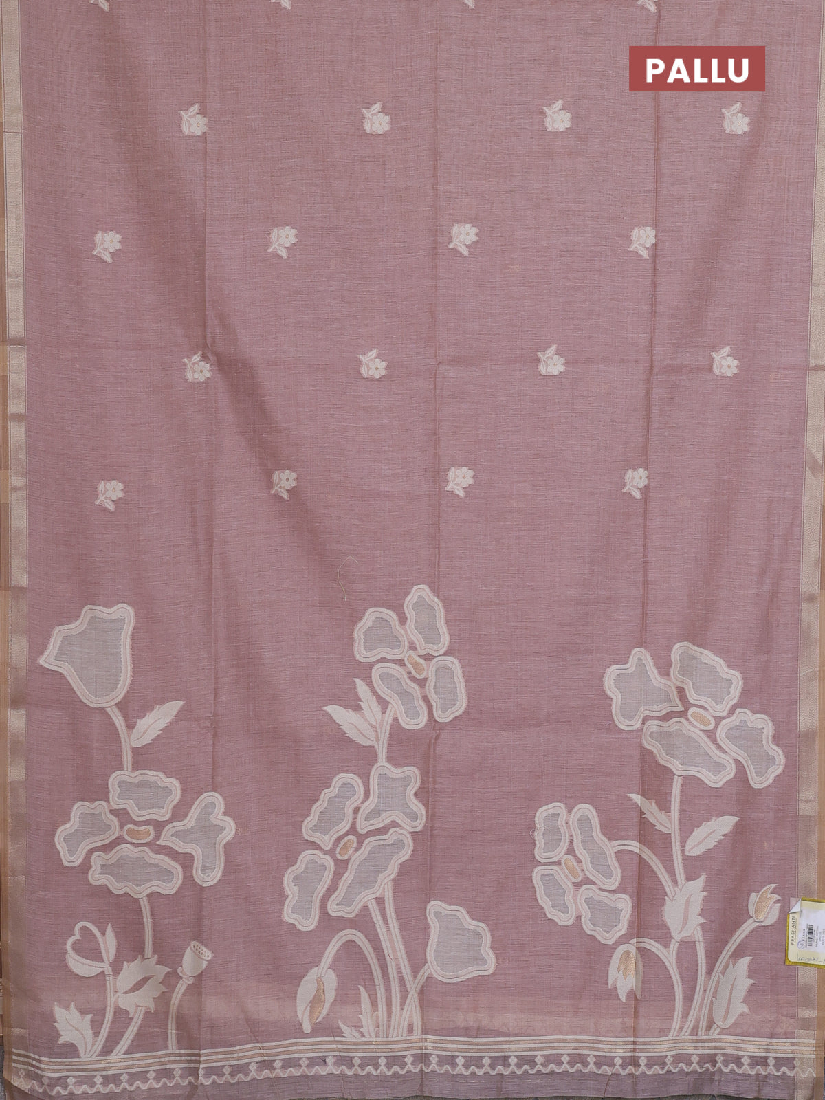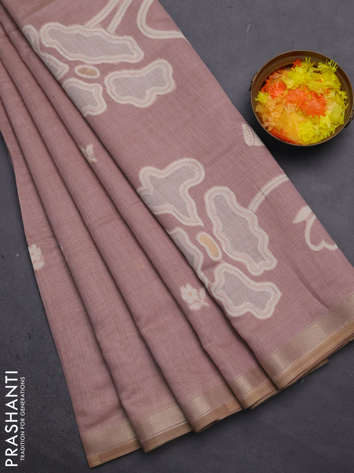 Munga cotton saree pastel pink with thread woven floral buttas and zari woven border