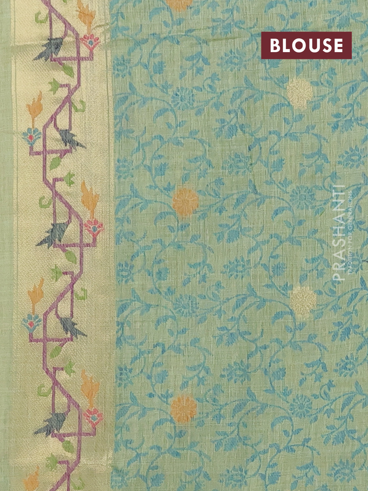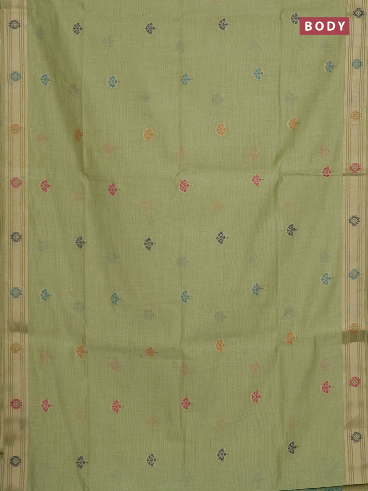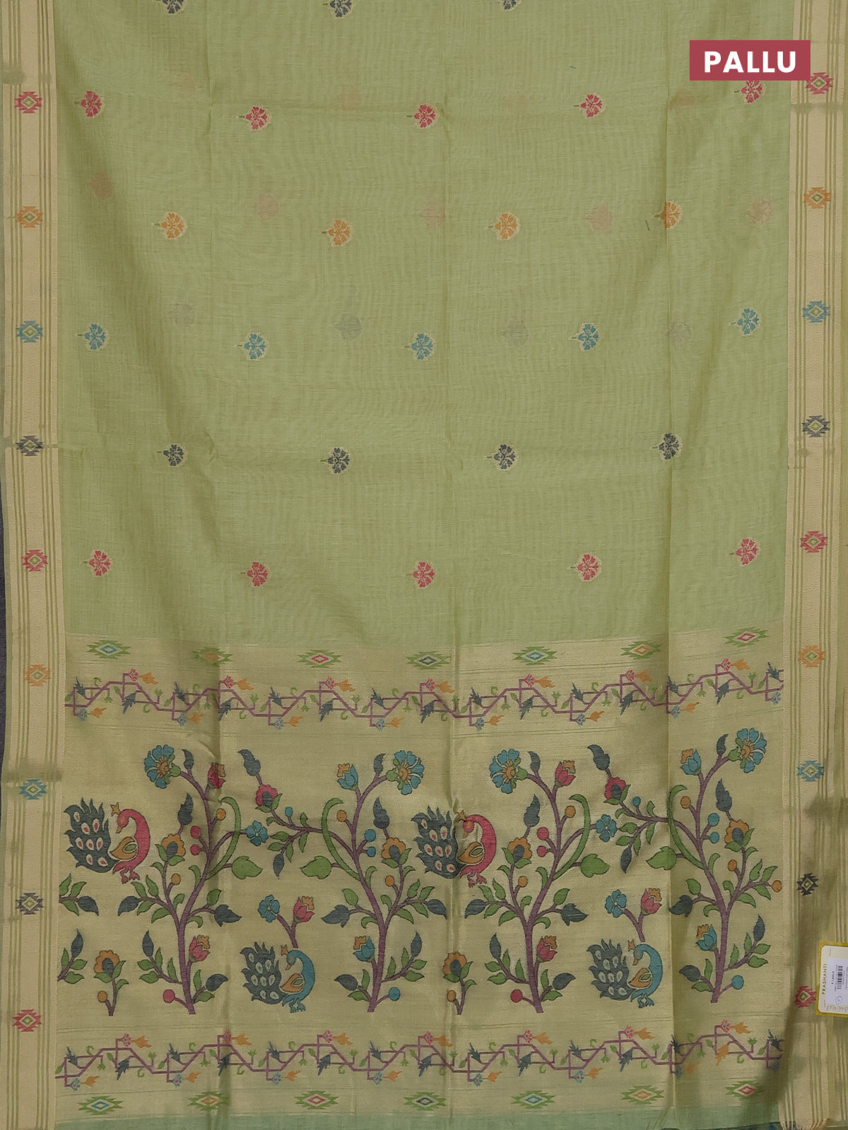 Munga cotton saree pista green with thread woven floral buttas and zari woven paithani design pallu