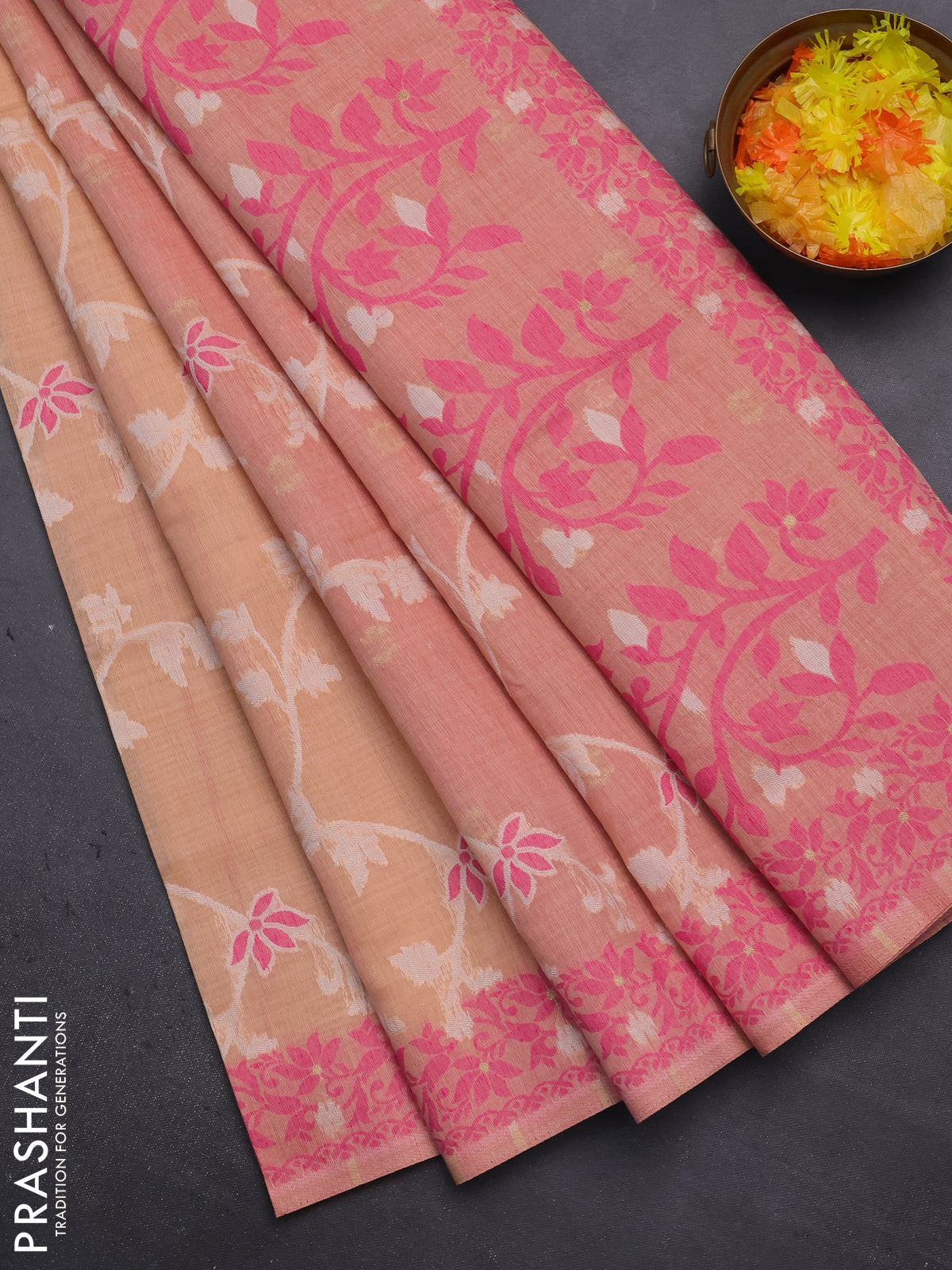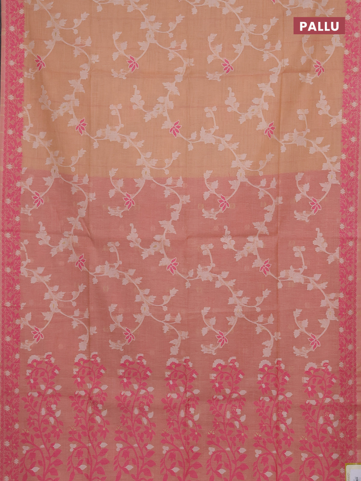 Munga cotton saree sandal and pink with allover thread weaves and thread weaving pallu