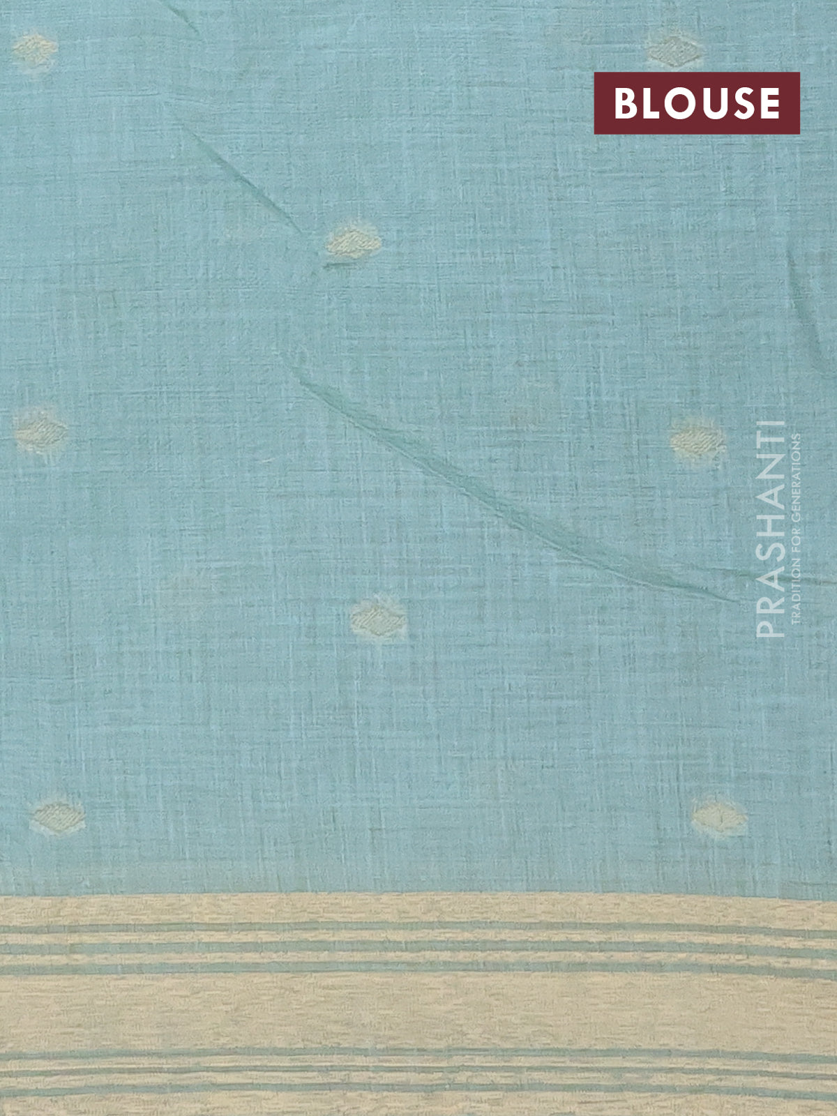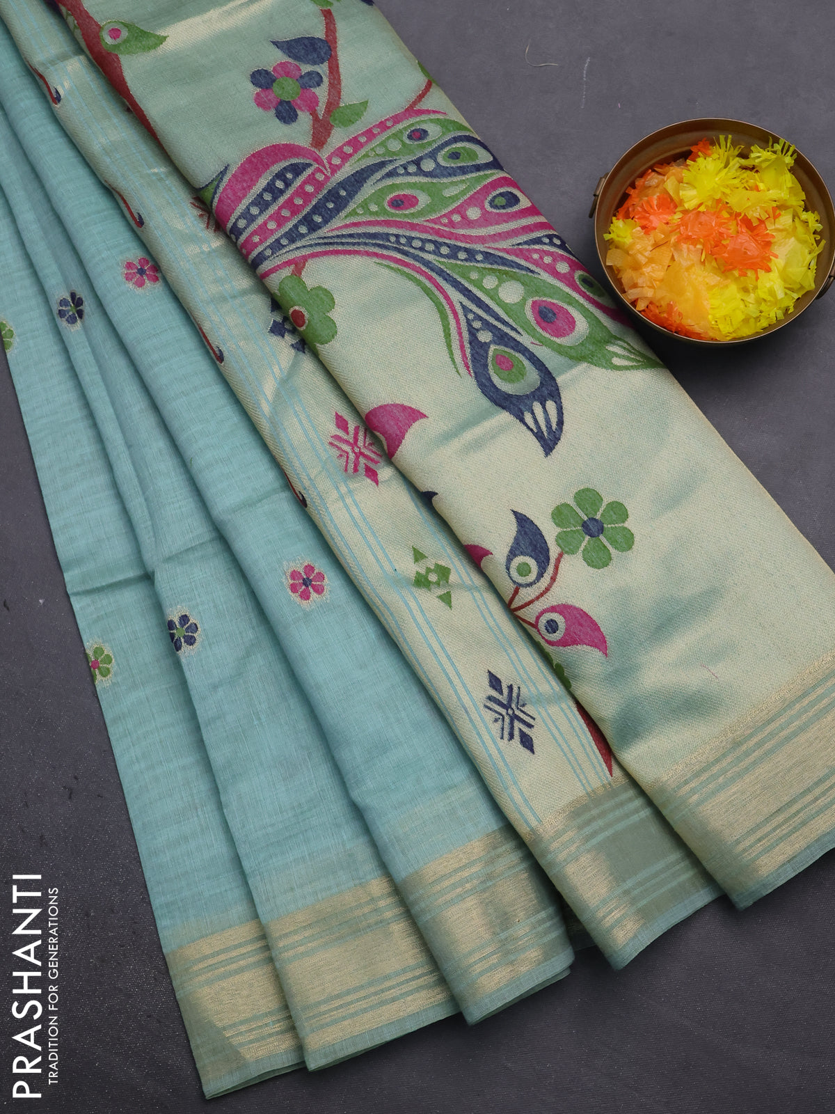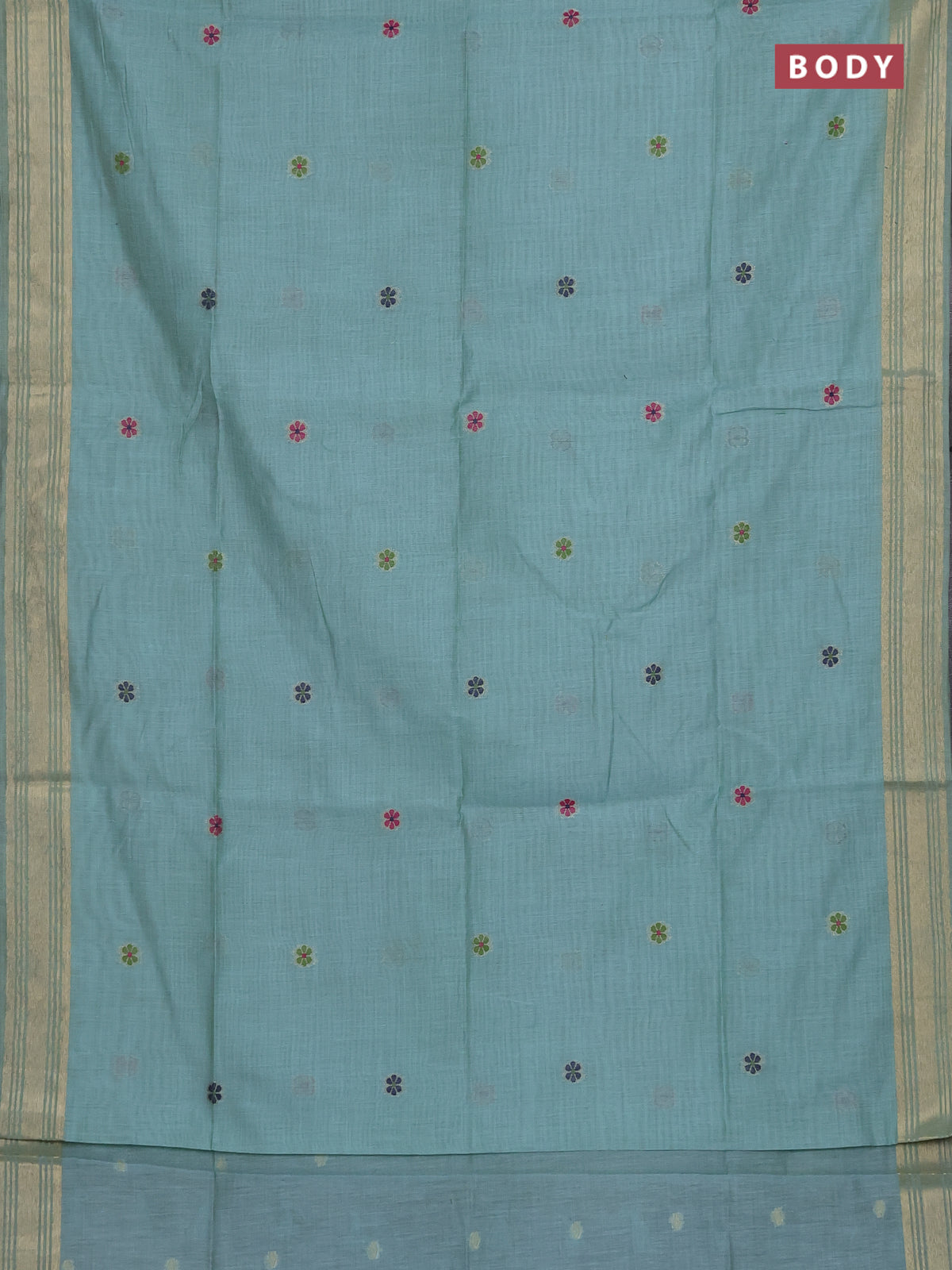 Munga cotton saree teal blue with thread woven floral buttas and zari woven paithani design pallu