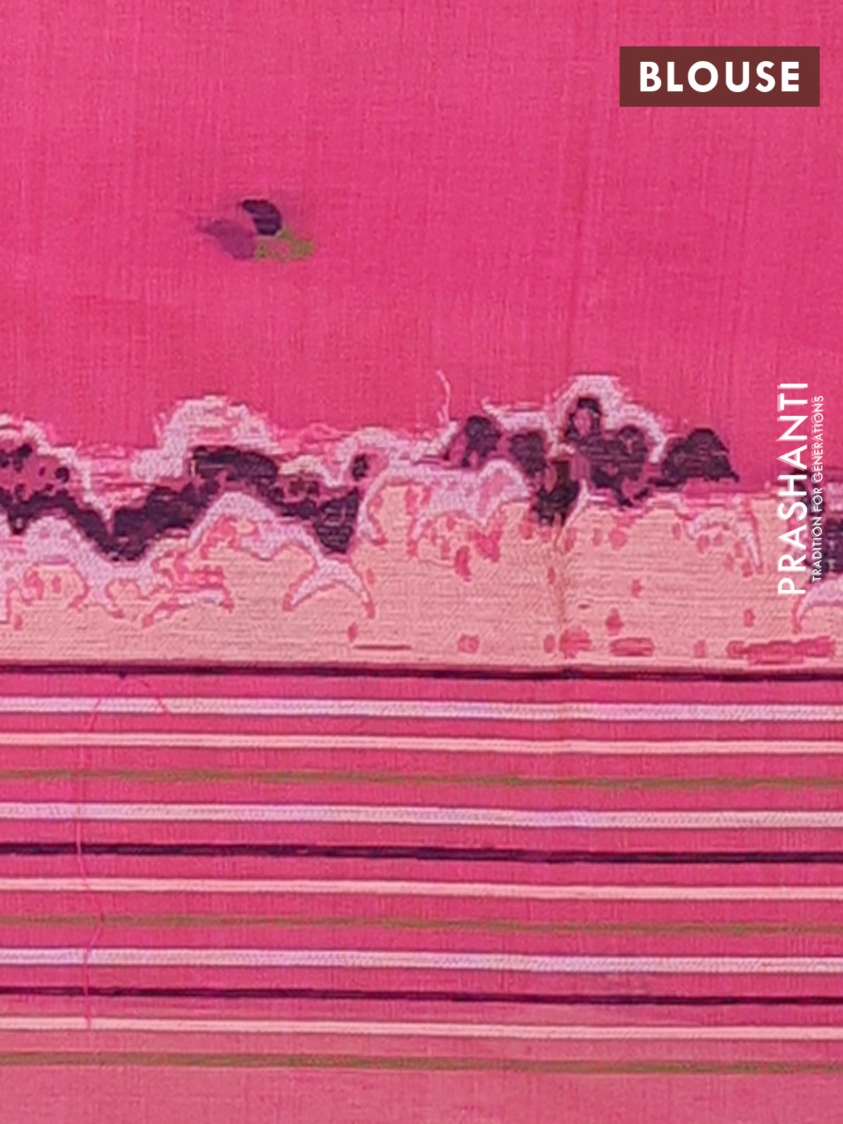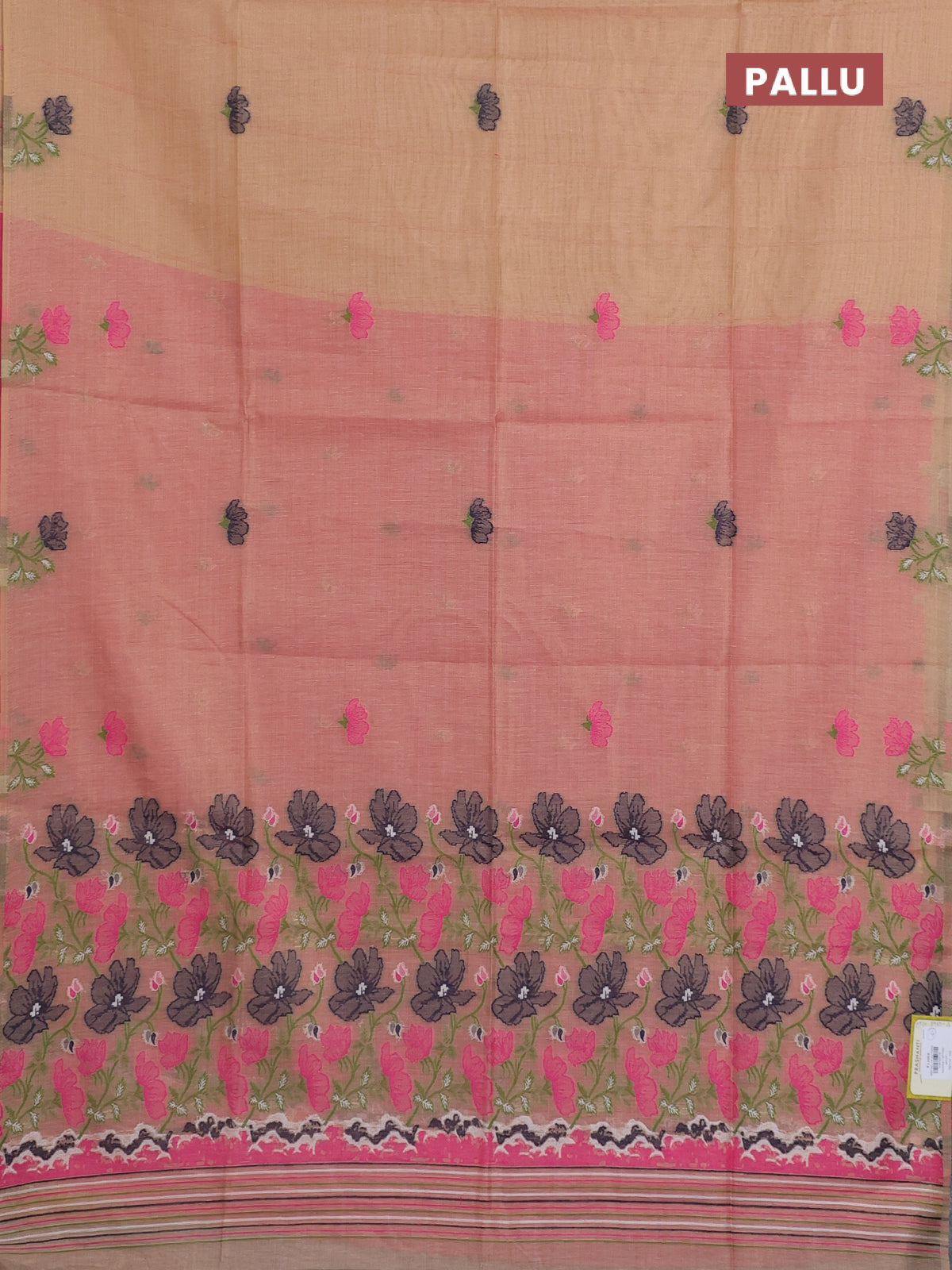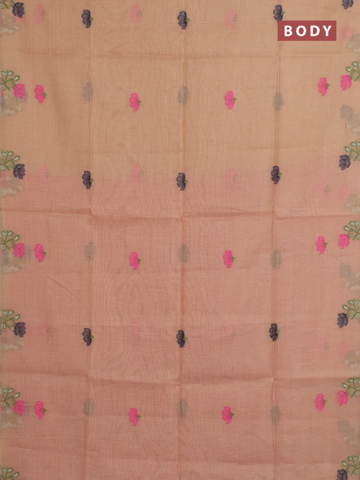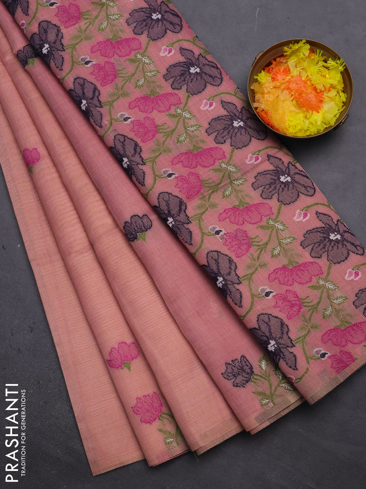 Munga cotton tissue saree peach shade and magenta pink with thread woven floral buttas and floral design weaving pallu