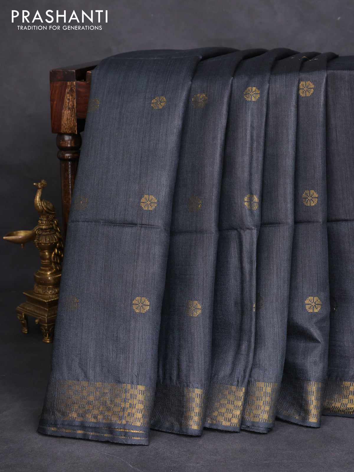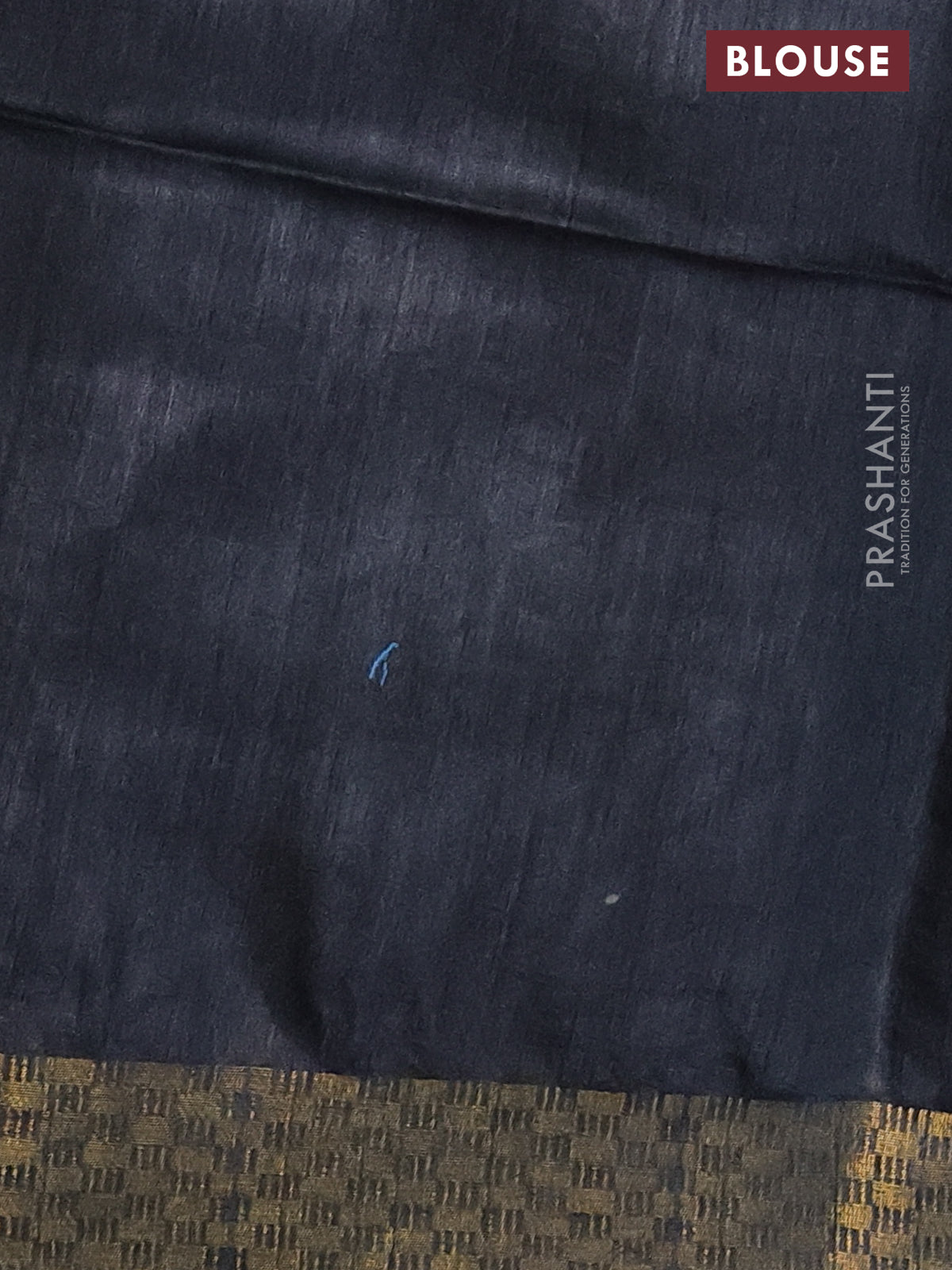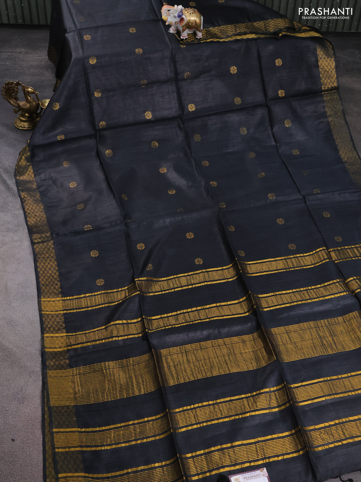Munga tussar silk saree black with allover zari woven buttas and zari woven border