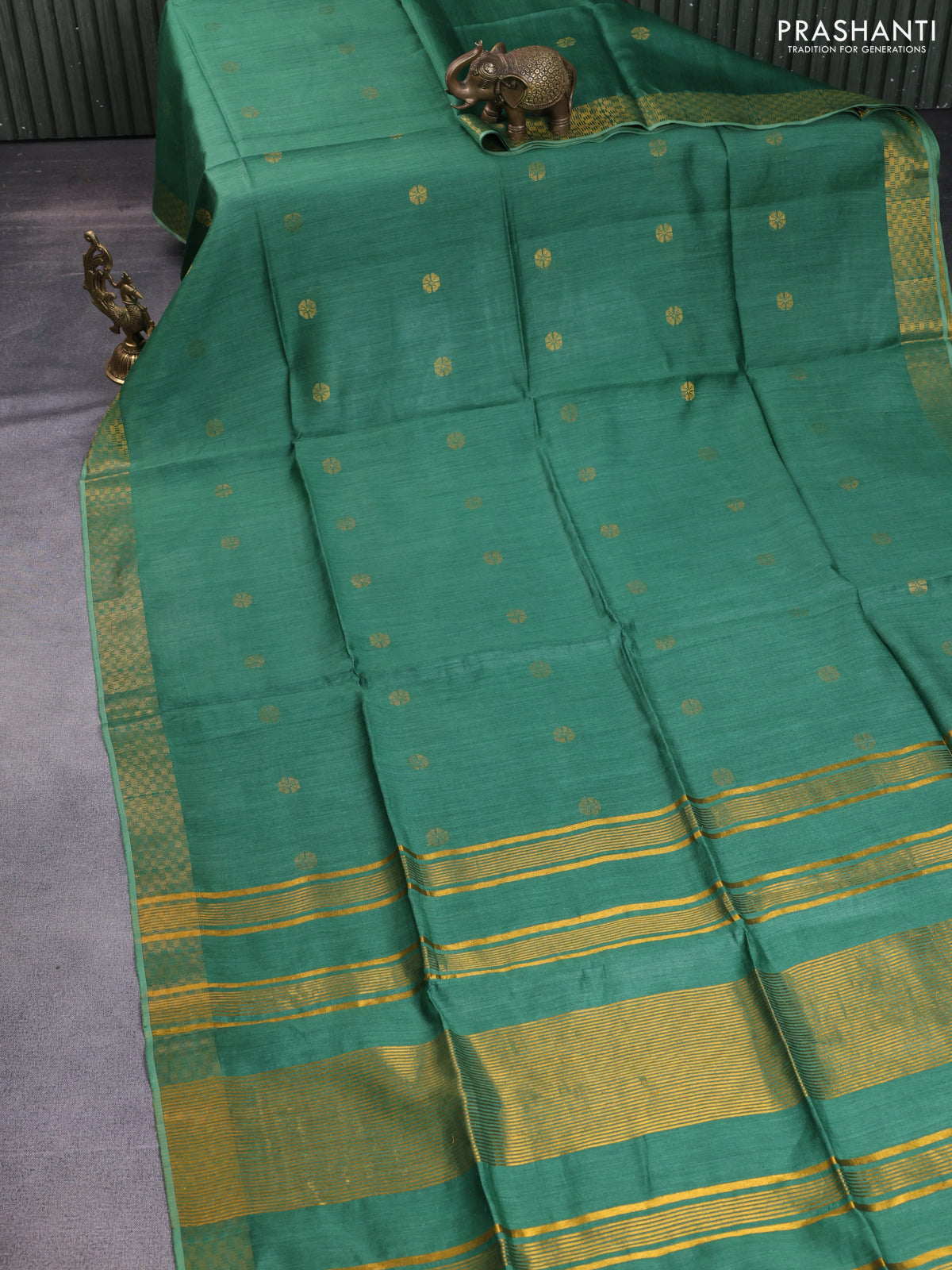 Munga tussar silk saree green with allover zari woven buttas and zari woven border