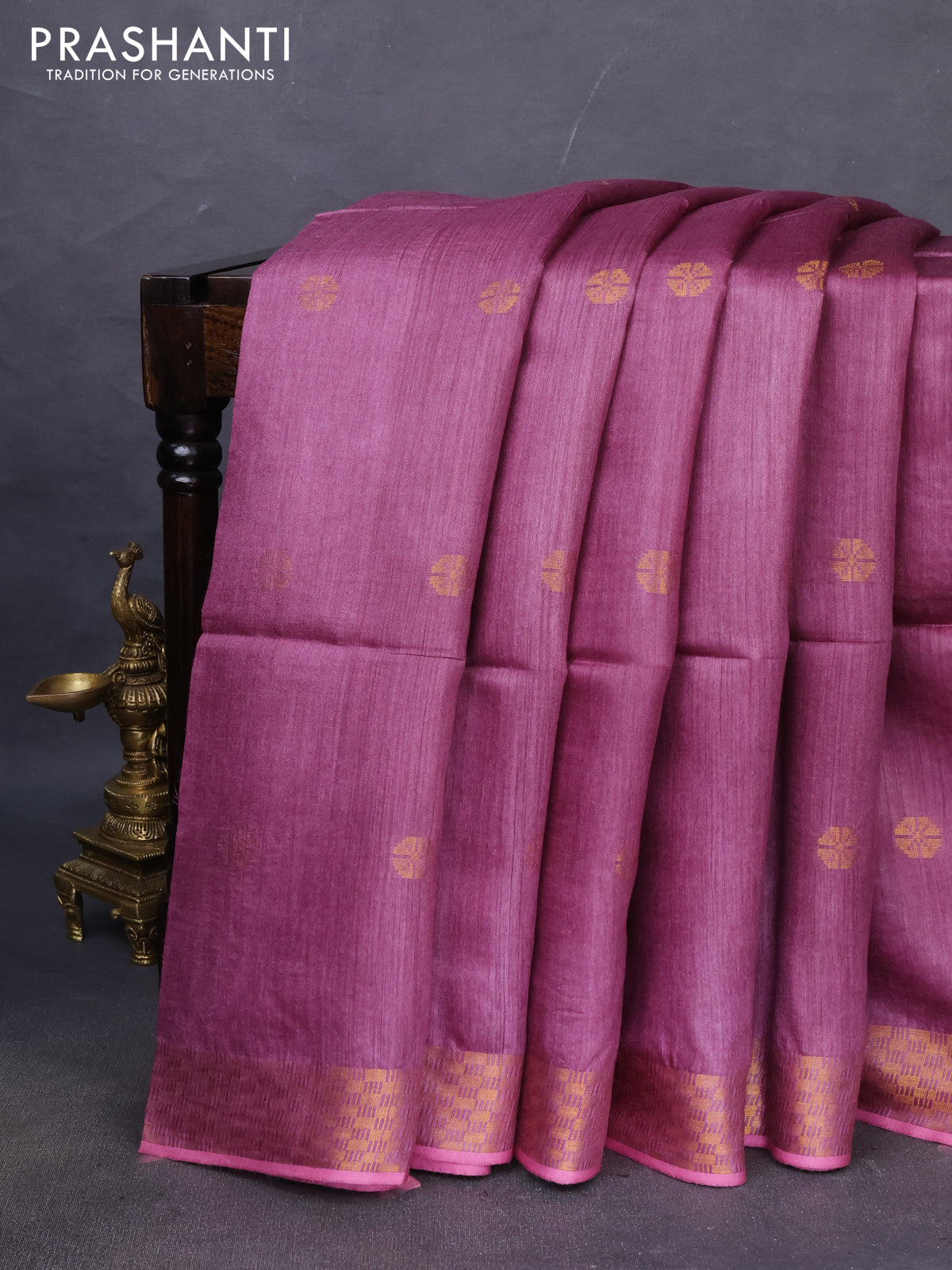 Munga tussar silk saree purple shade with allover zari woven buttas and zari woven border