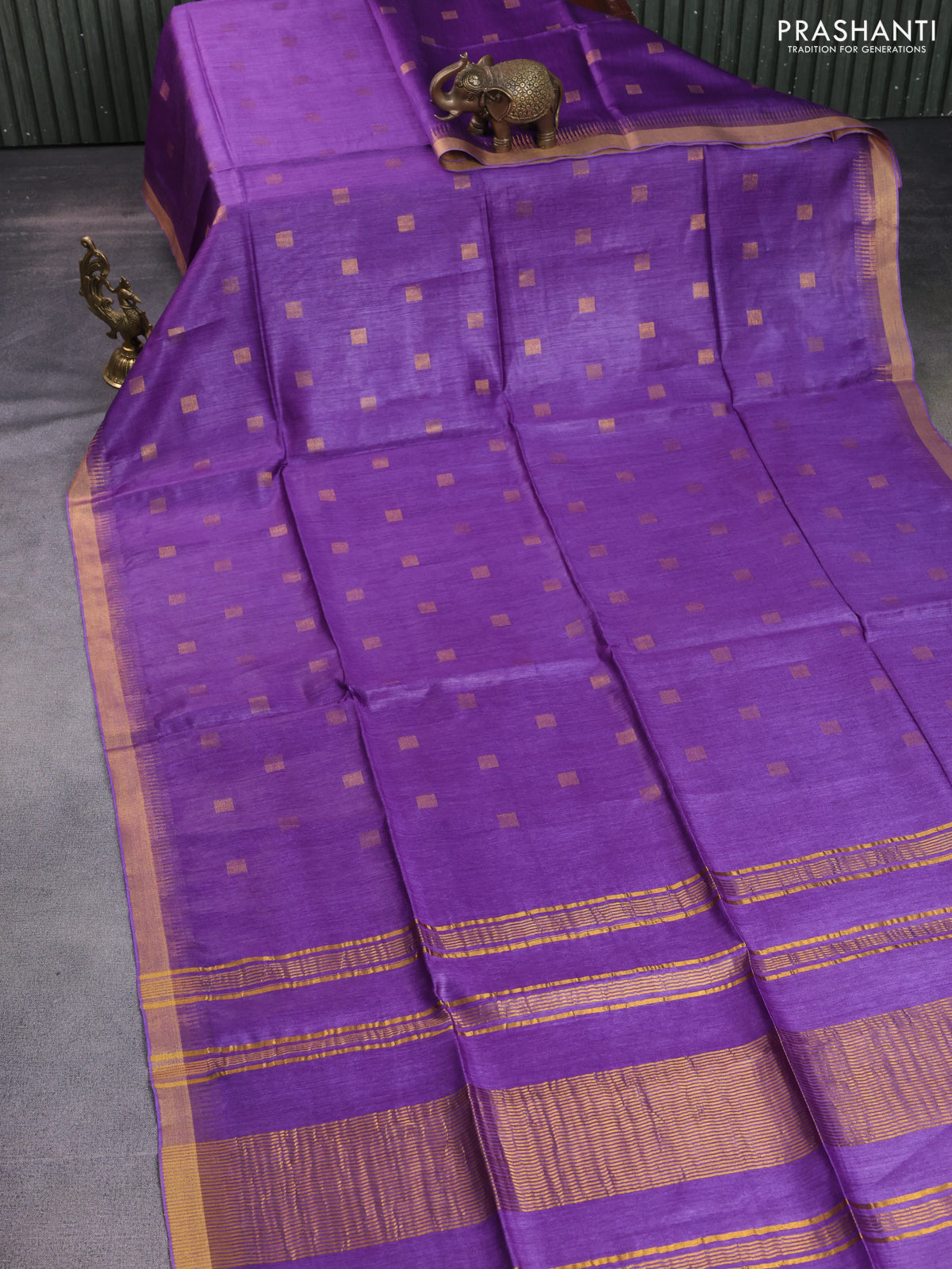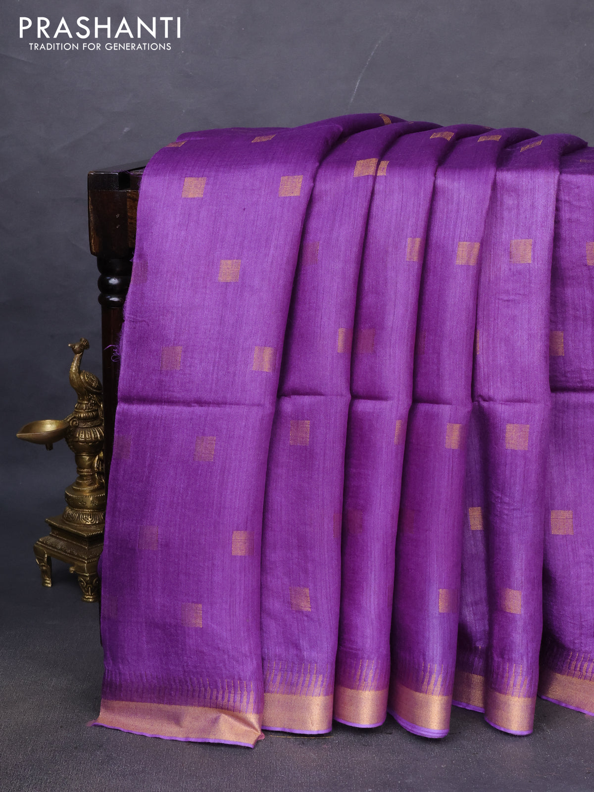 Munga tussar silk saree violet with allover zari woven buttas and zari woven border