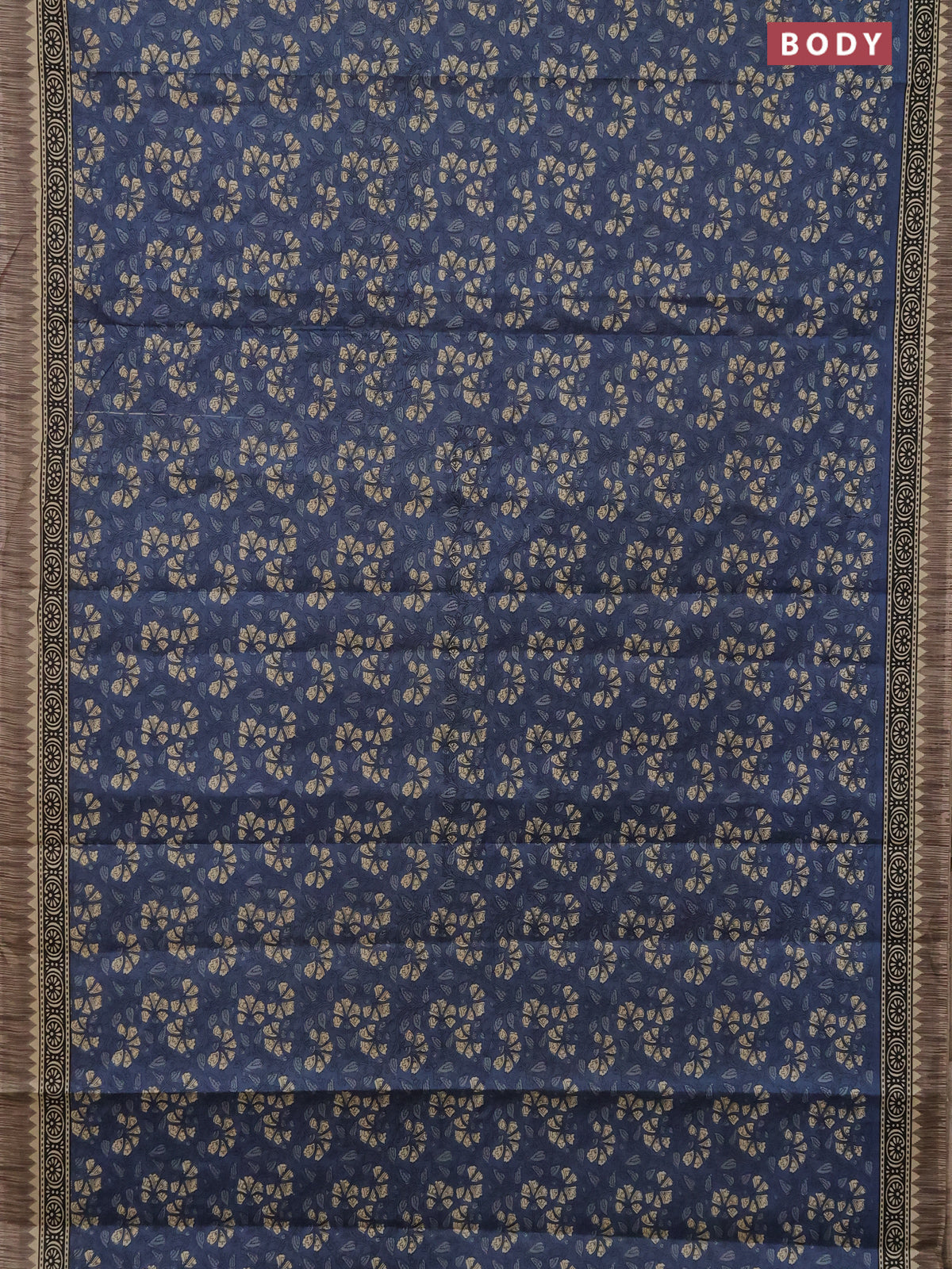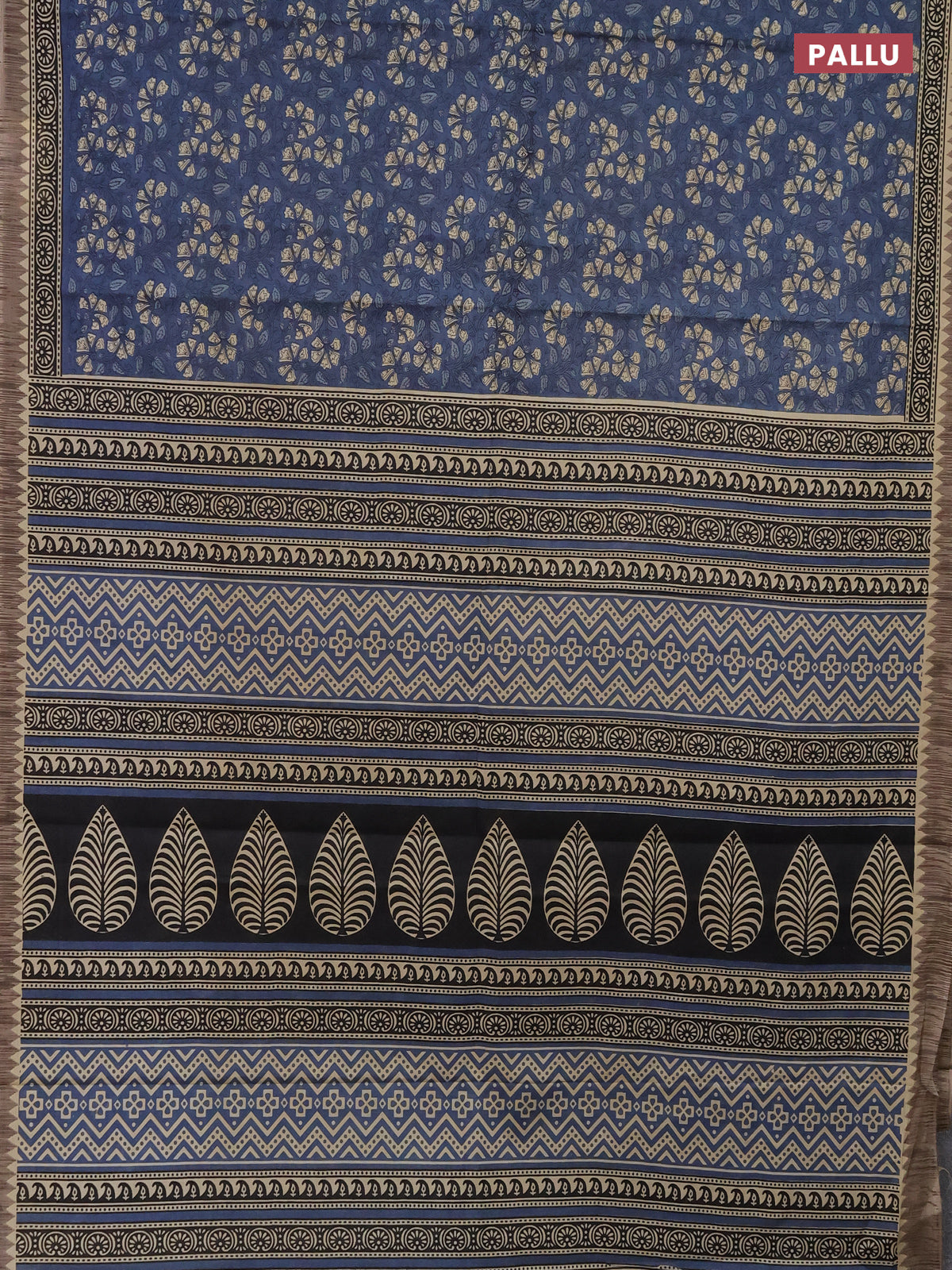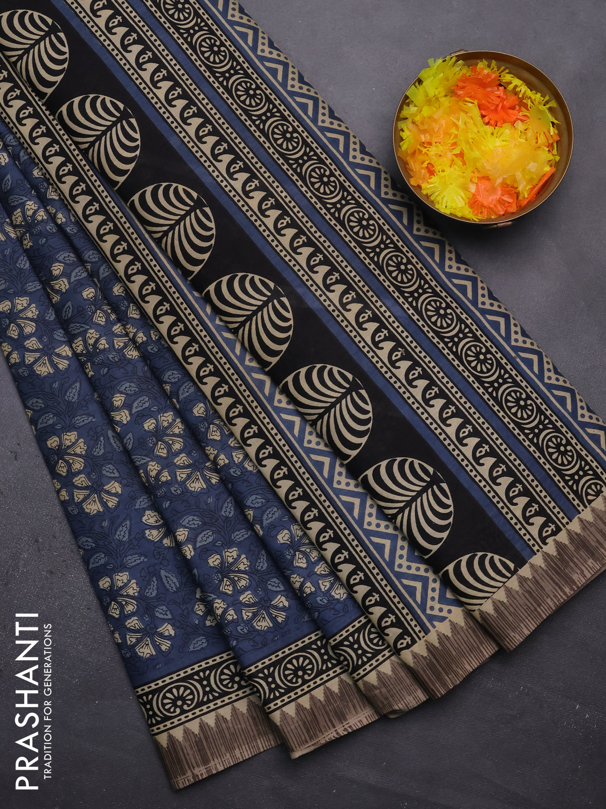 Muslin cotton saree blue and grey with allover kalamkari prints and printed border