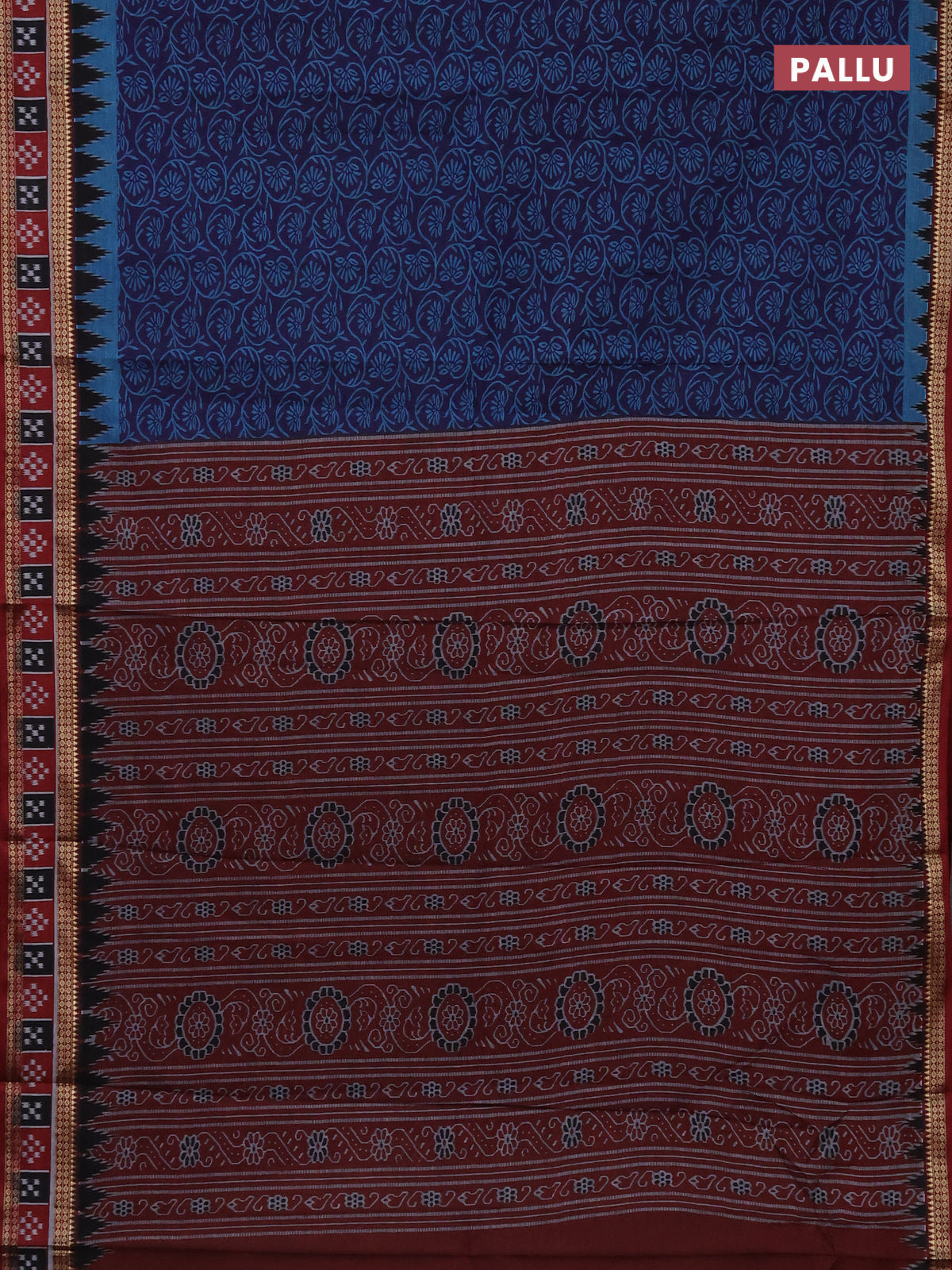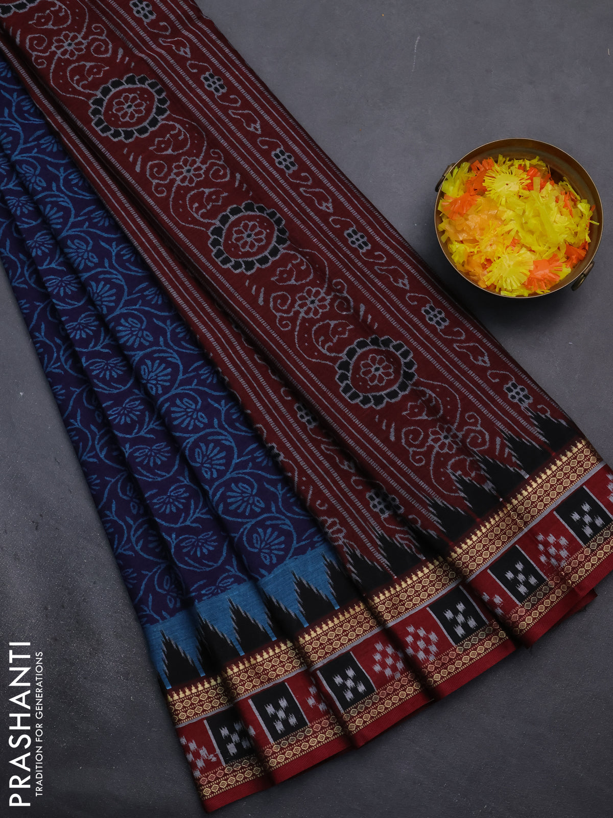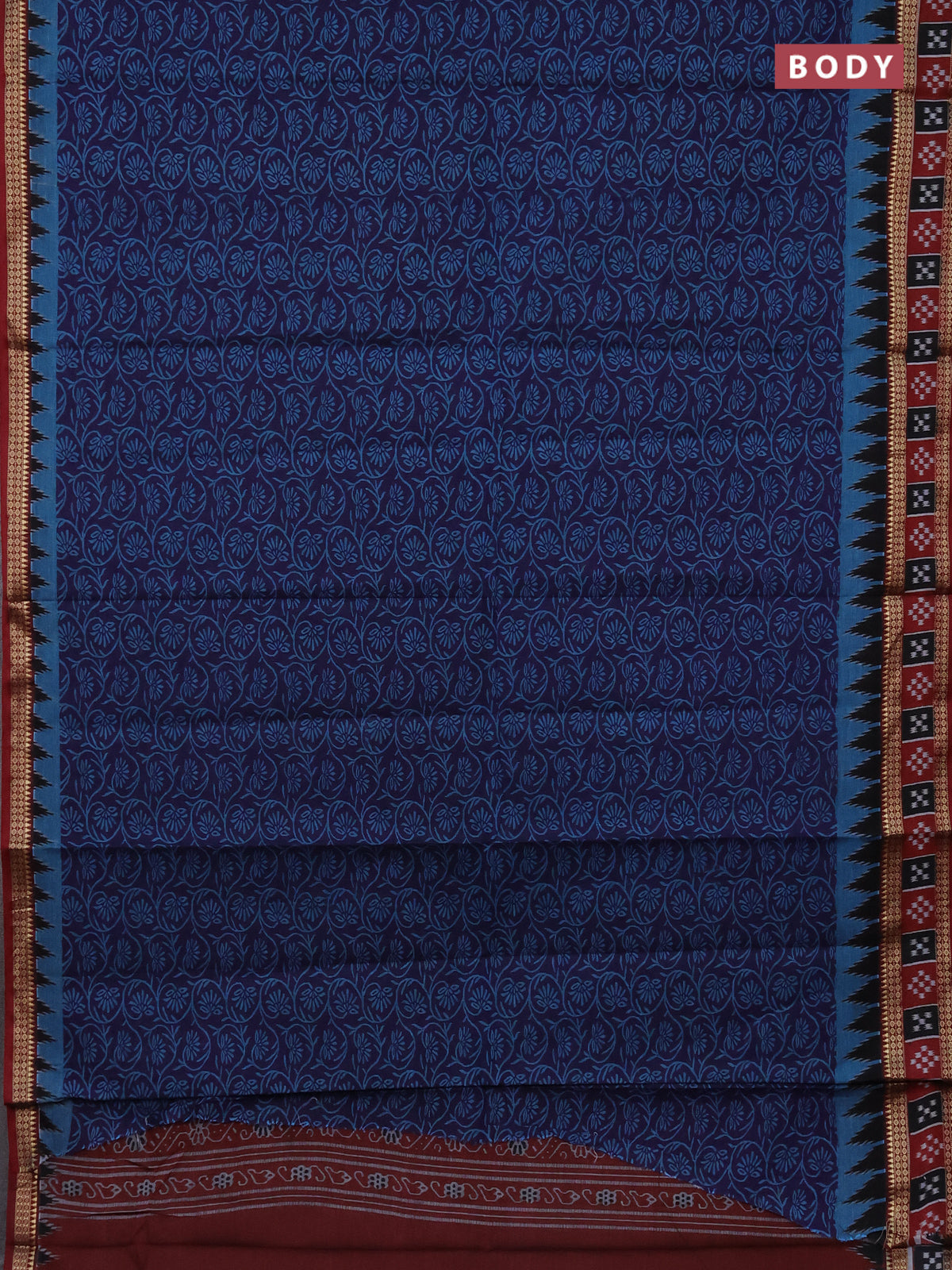 Muslin cotton saree navy blue and maroon with allover prints and woven border