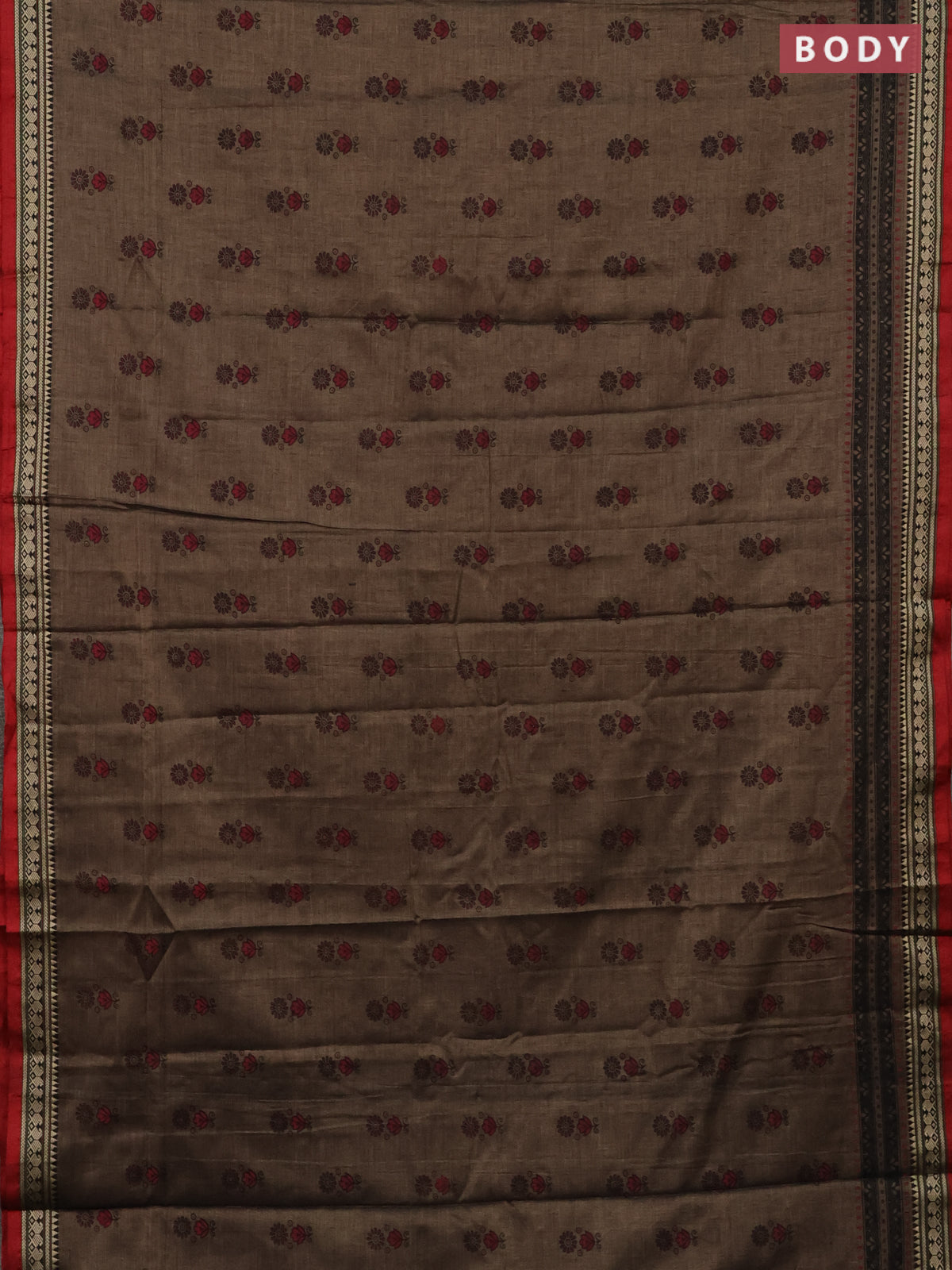 Narayanpet cotton saree chikku shade and red with block prints and thread woven border