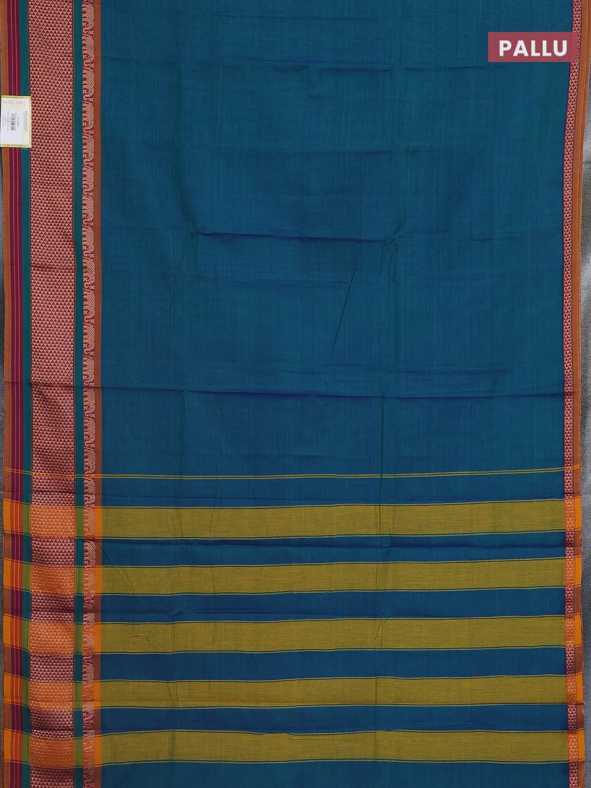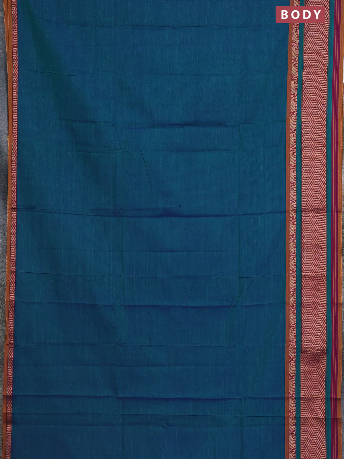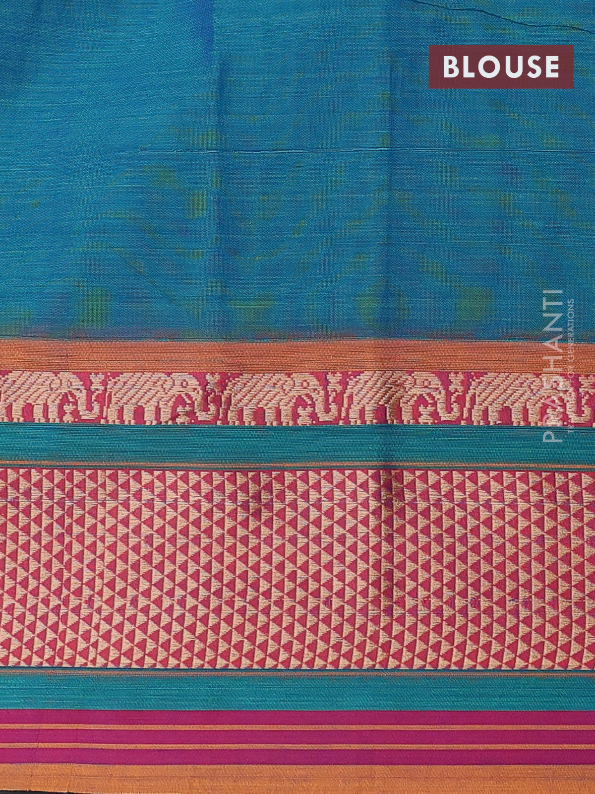 Narayanpet cotton saree dual shade of green with plain body and thread woven border