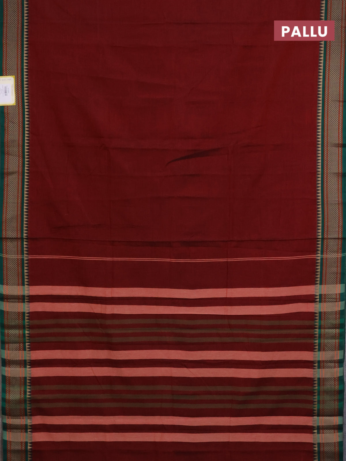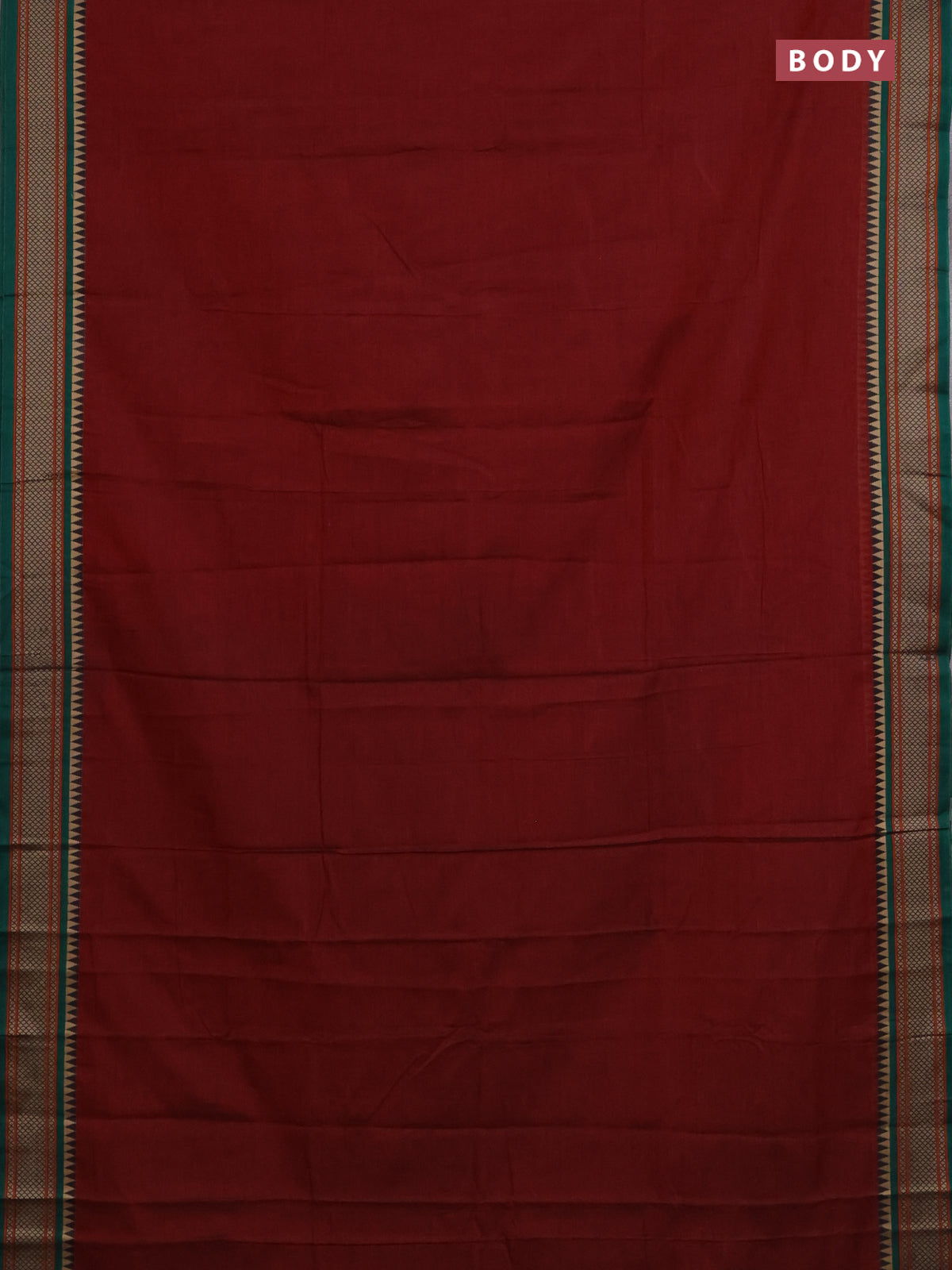 Narayanpet cotton saree maroon and green with plain body and thread woven border