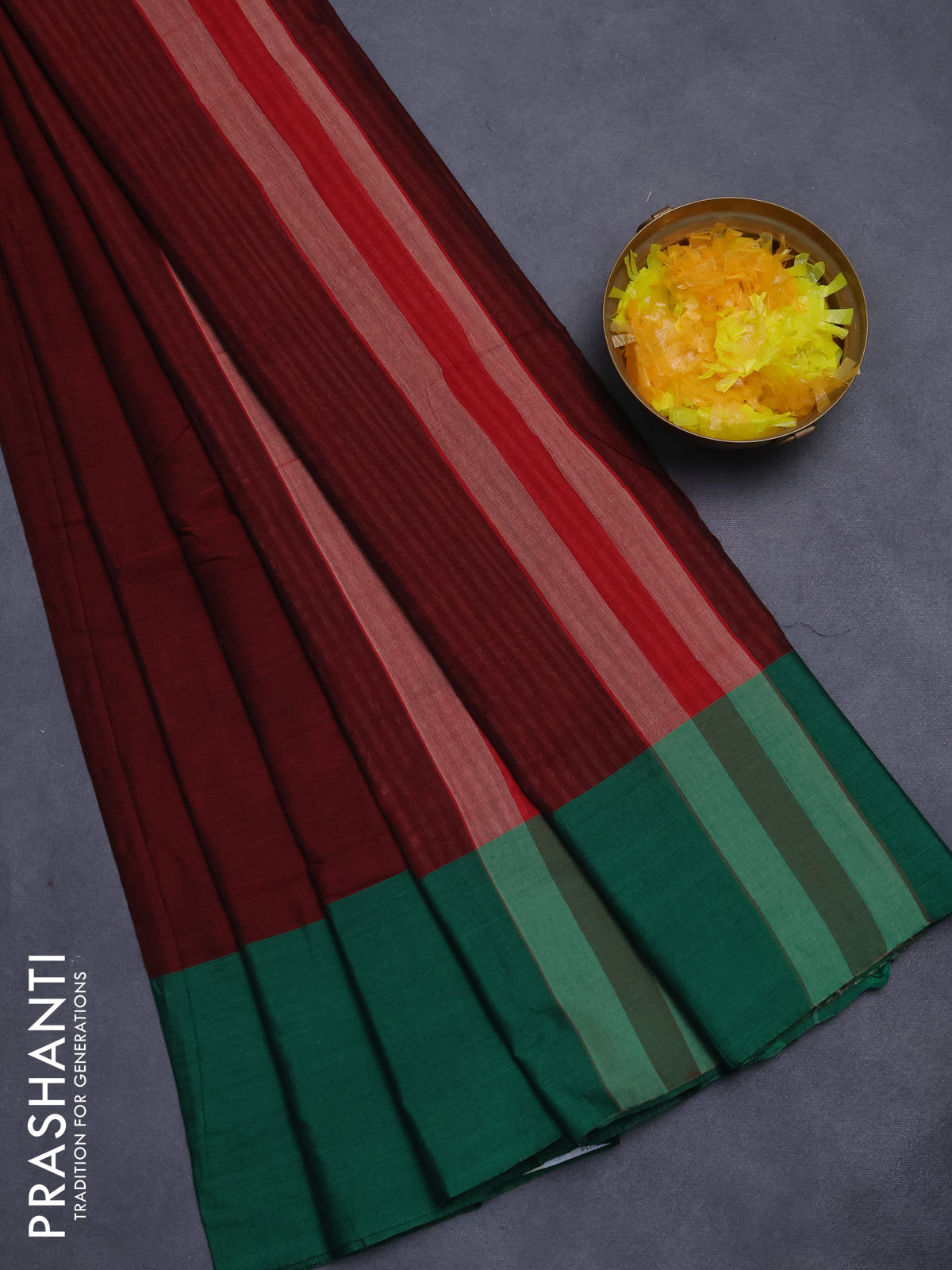 Narayanpet cotton saree maroon with plain body and ganga jamuna border