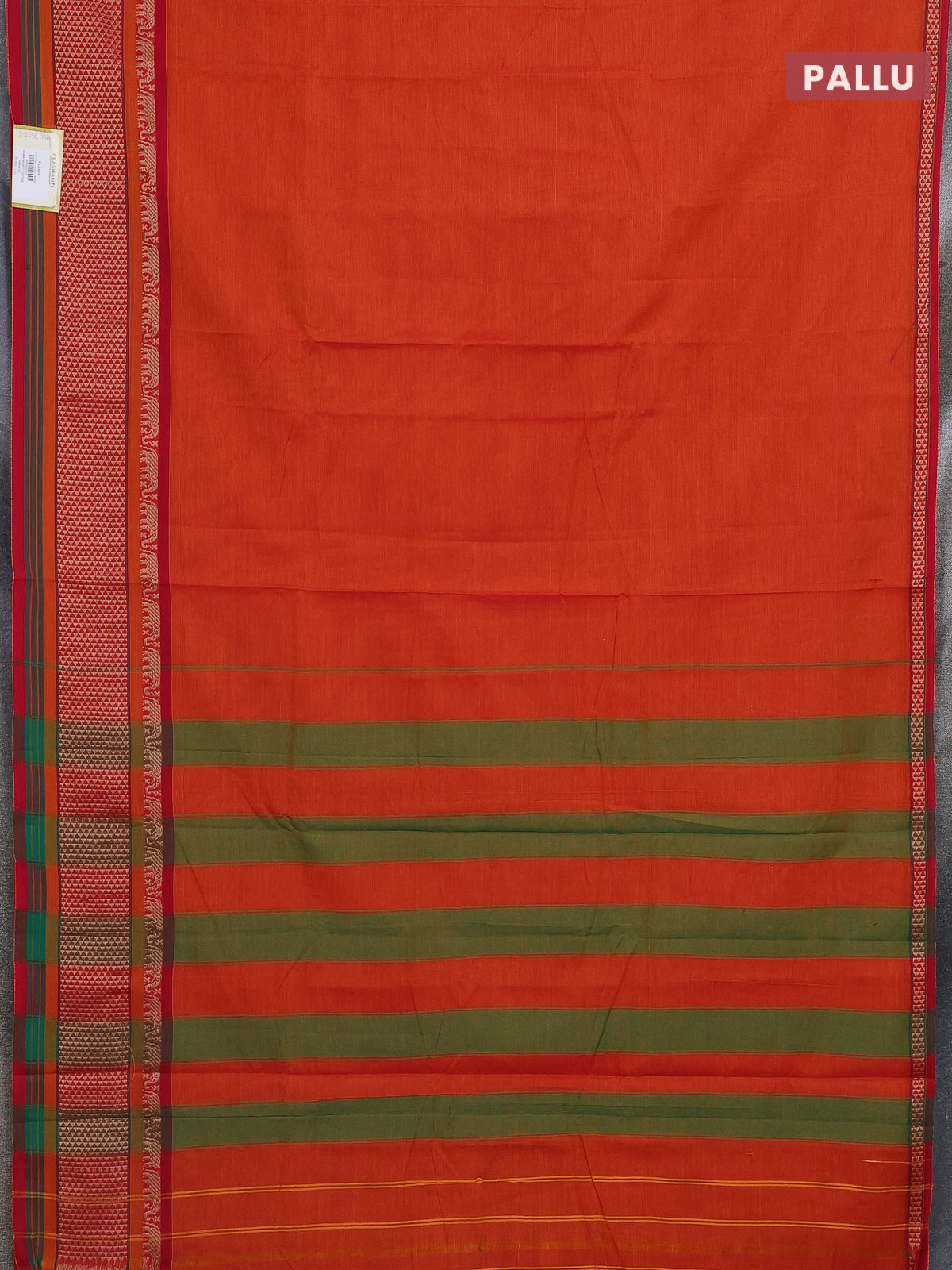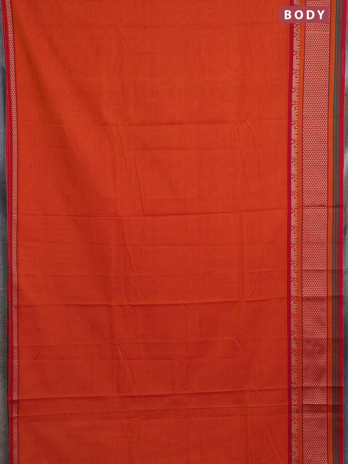 Narayanpet cotton saree orange and red with plain body and thread woven border