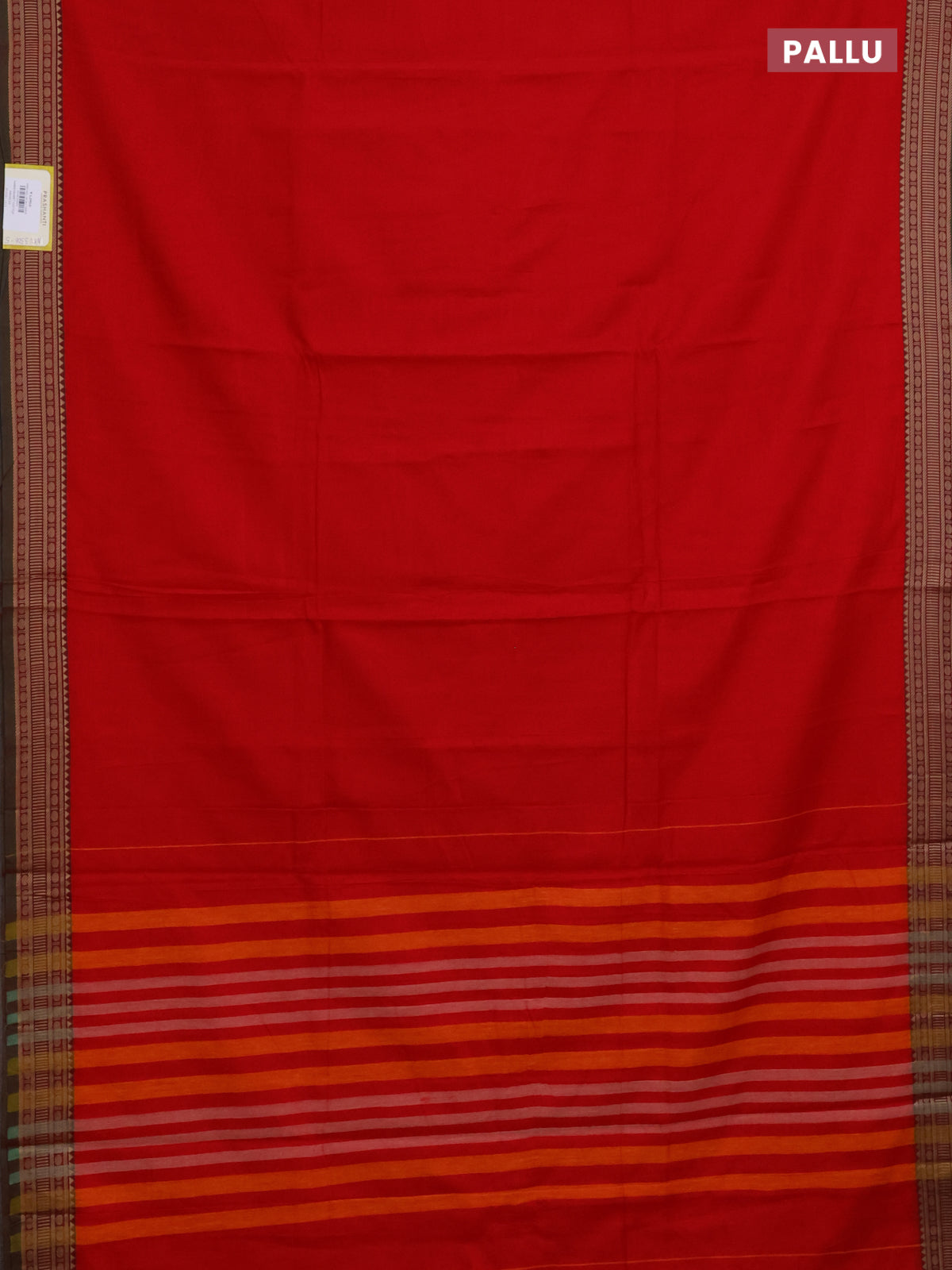 Narayanpet cotton saree red and dual shade of green with plain body and thread woven border