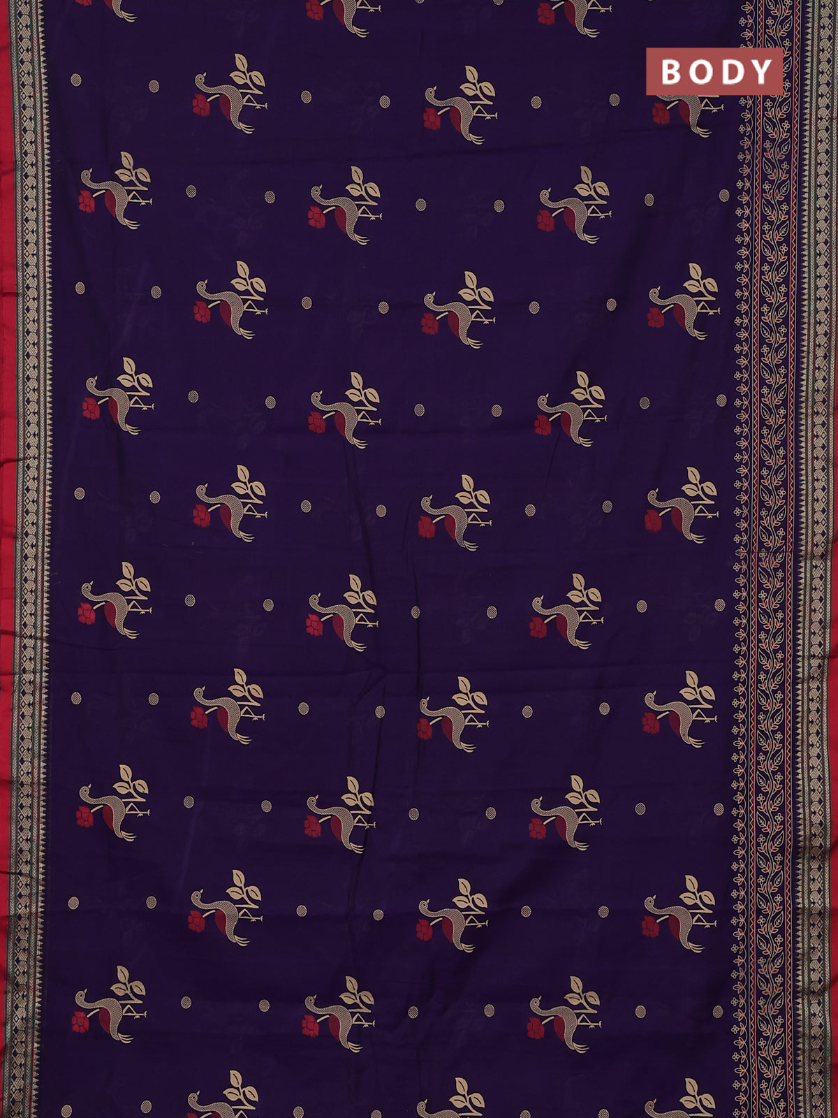 Narayanpet cotton saree violet and red with block prints and thread woven border