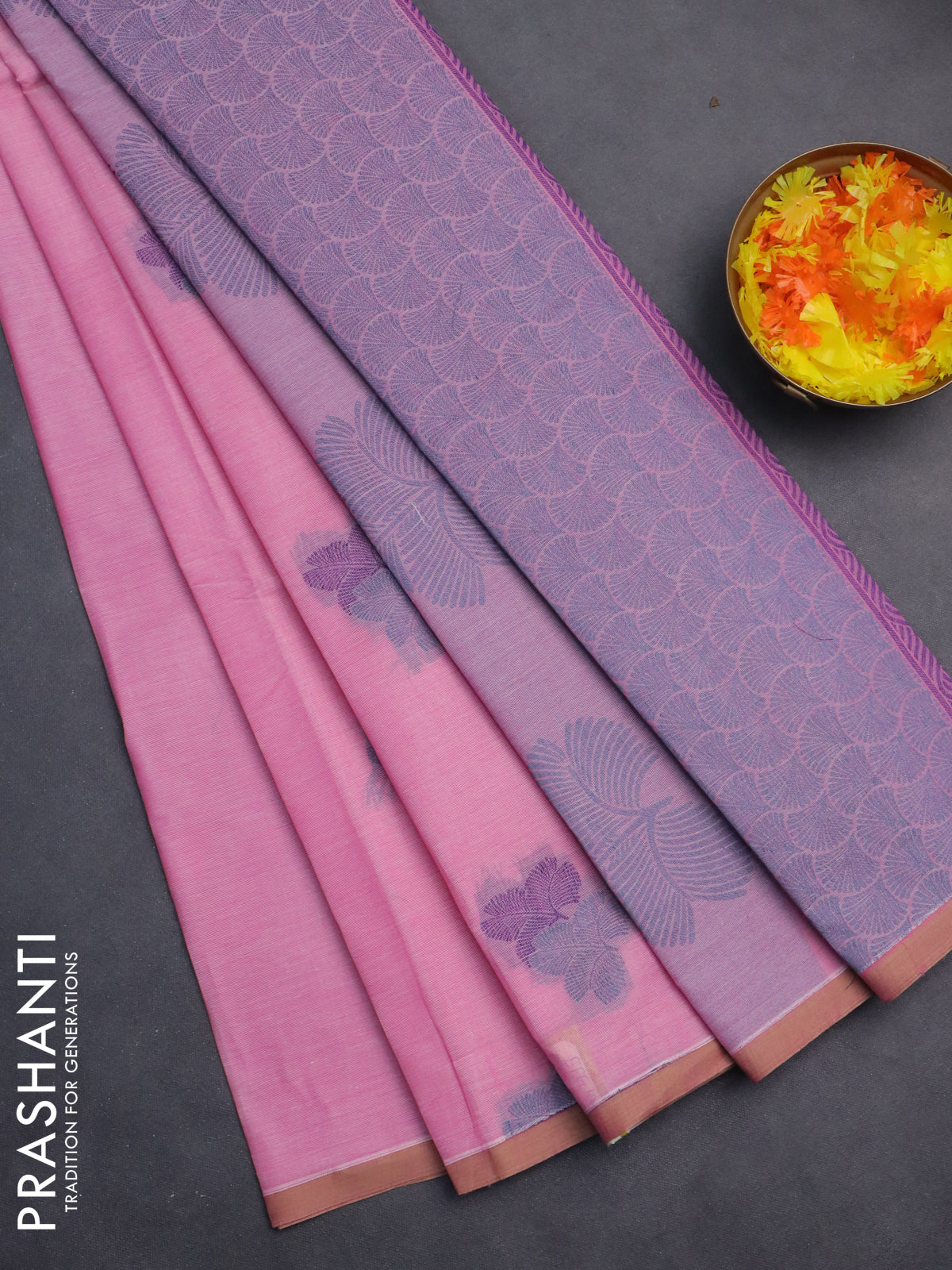 Nithyam cotton saree candy pink with thread woven buttas and piping border