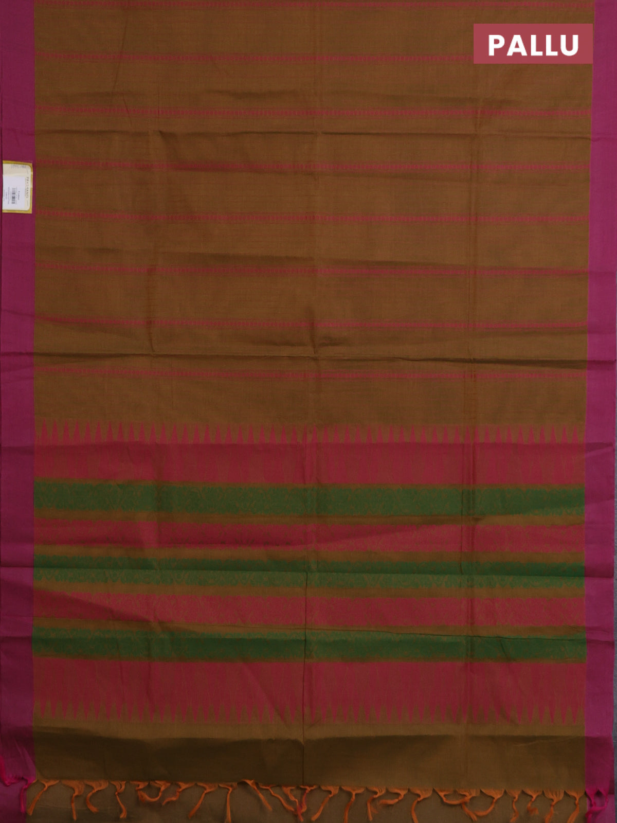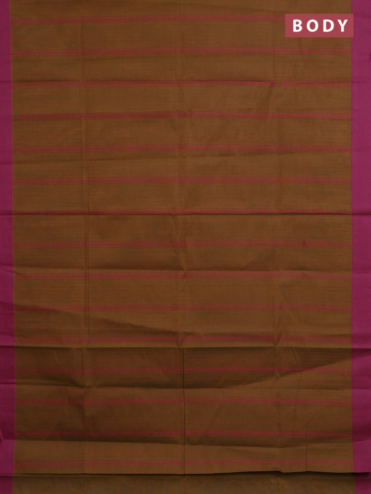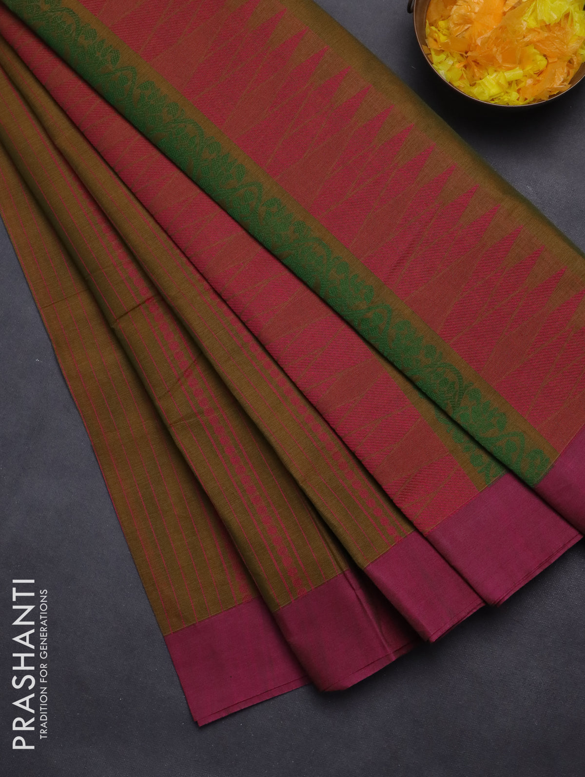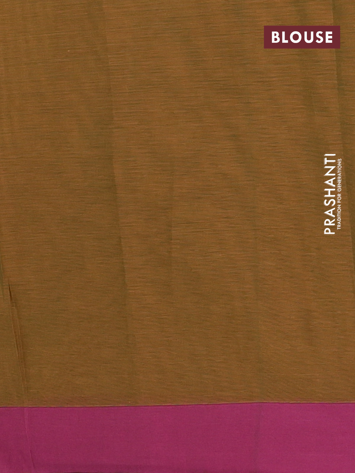 Nithyam cotton saree dark mustard and dark magenta pink with allover thread weaves and simple border