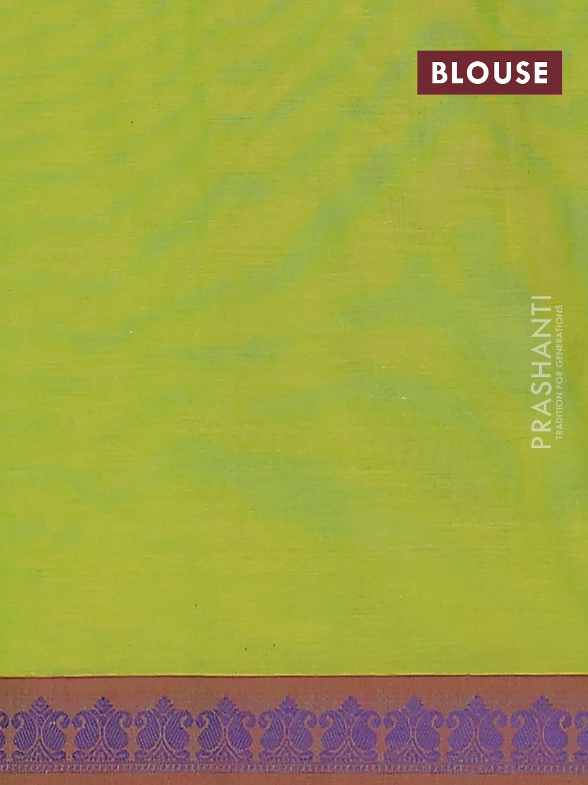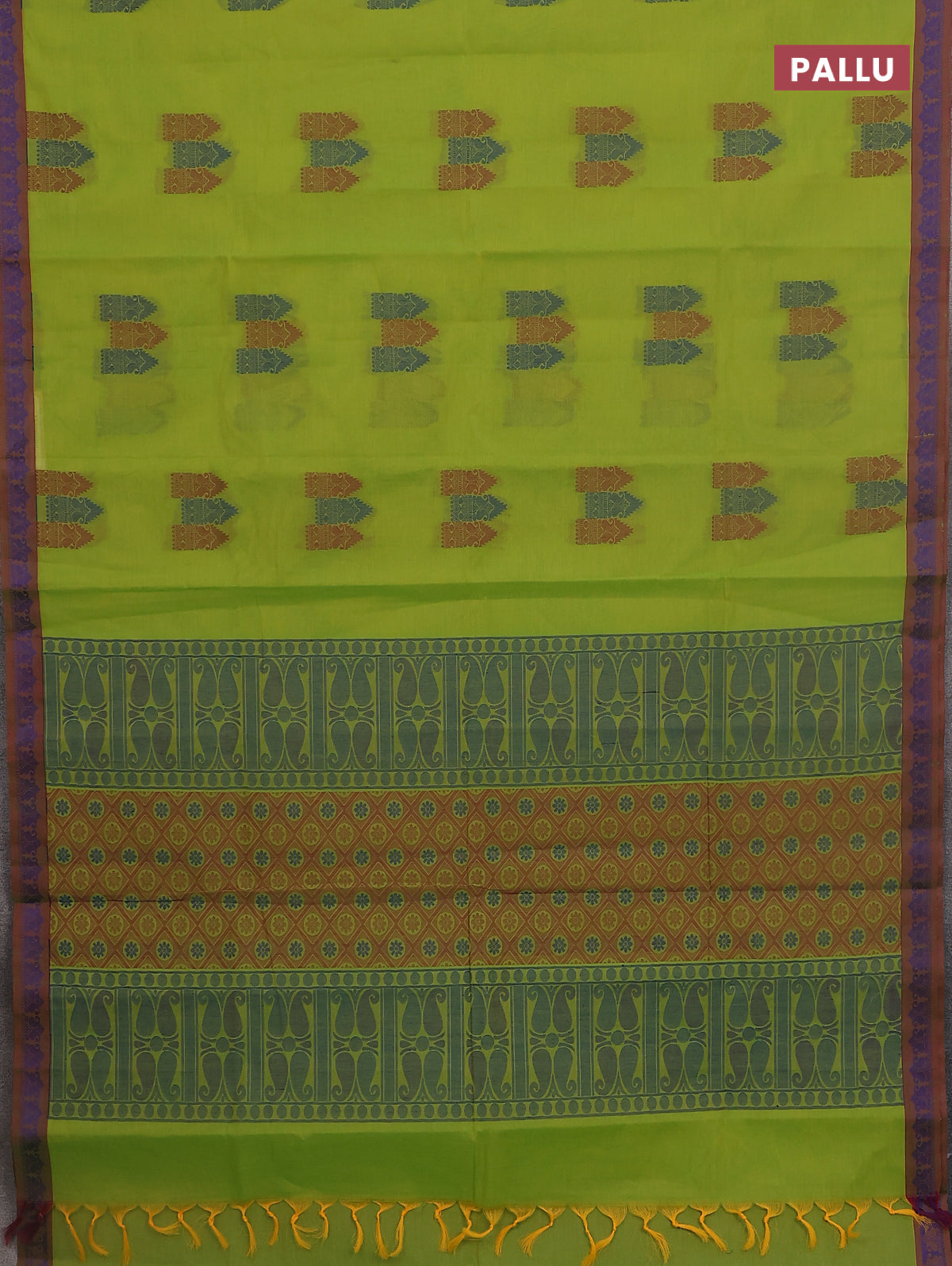 Nithyam cotton saree fluorescent green with allover thread woven buttas and paisley thread woven border