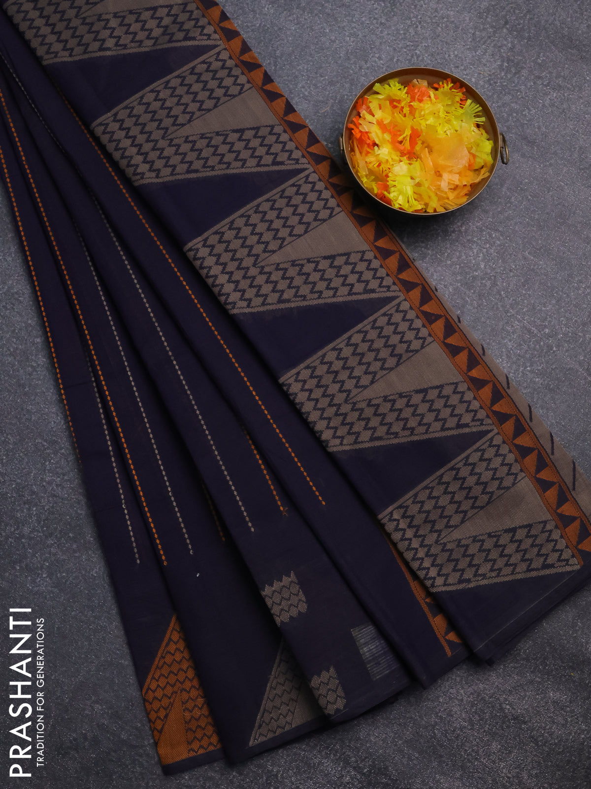 Nithyam cotton saree navy blue with allover thread weaves and thread woven butta border