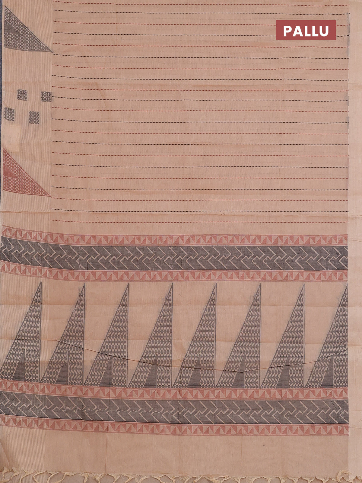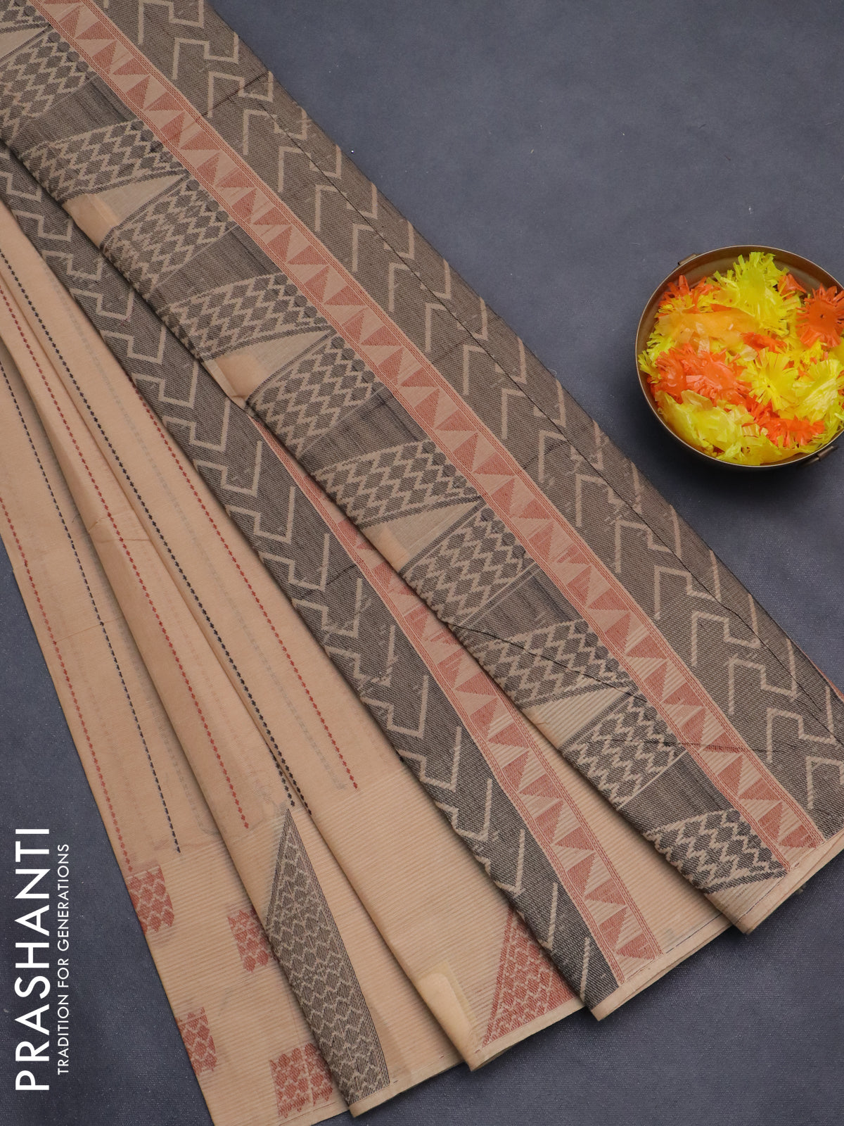 Nithyam cotton saree sandal with allover thread weaves and thread woven butta border