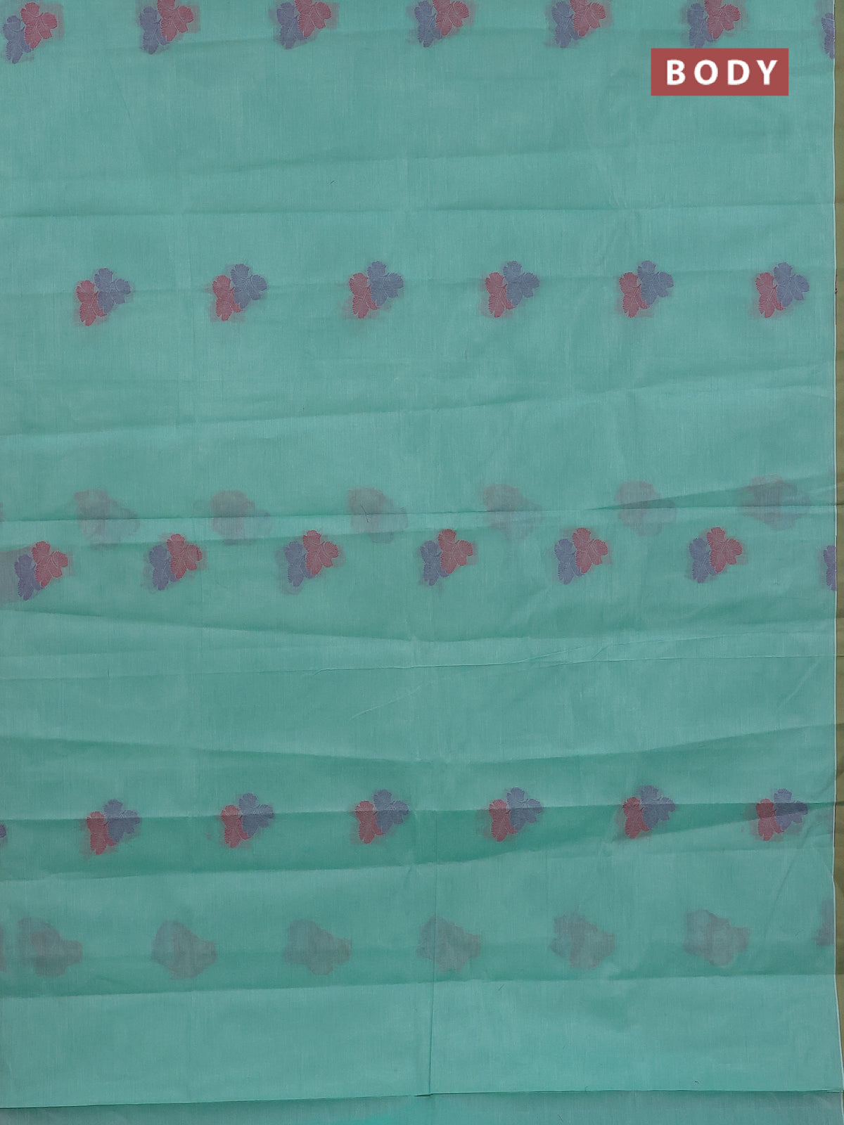 Nithyam cotton saree teal green with thread woven buttas and piping border