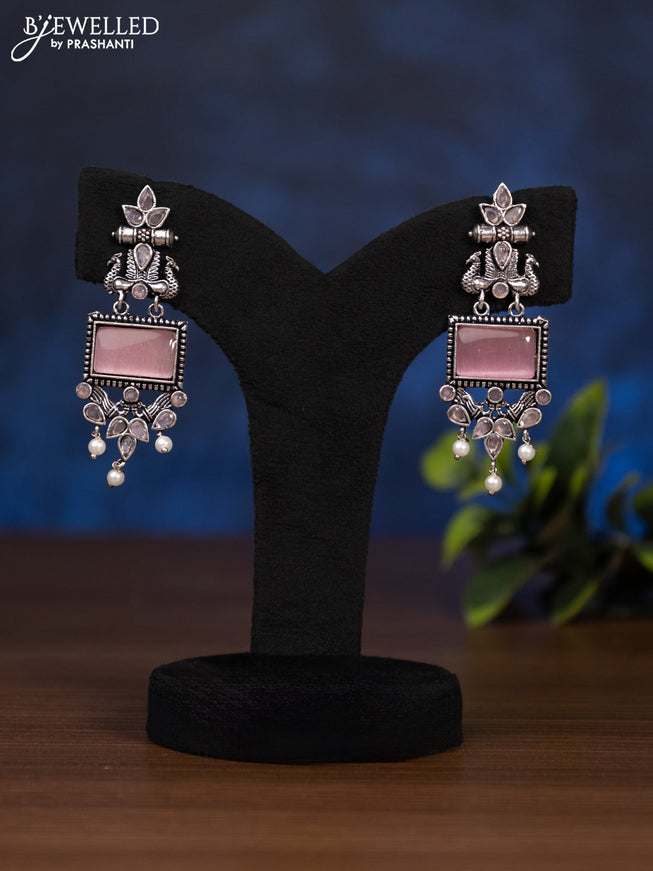 Oxidised earring elephant design with ruby stones and pearls