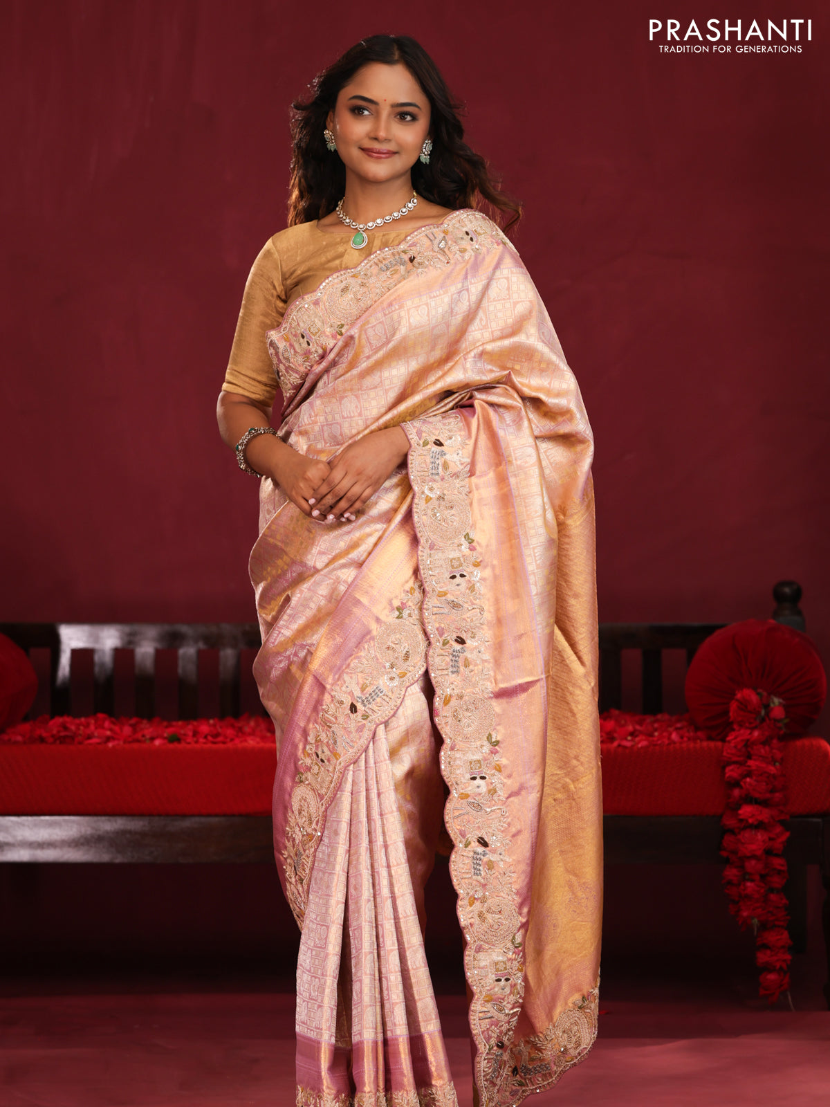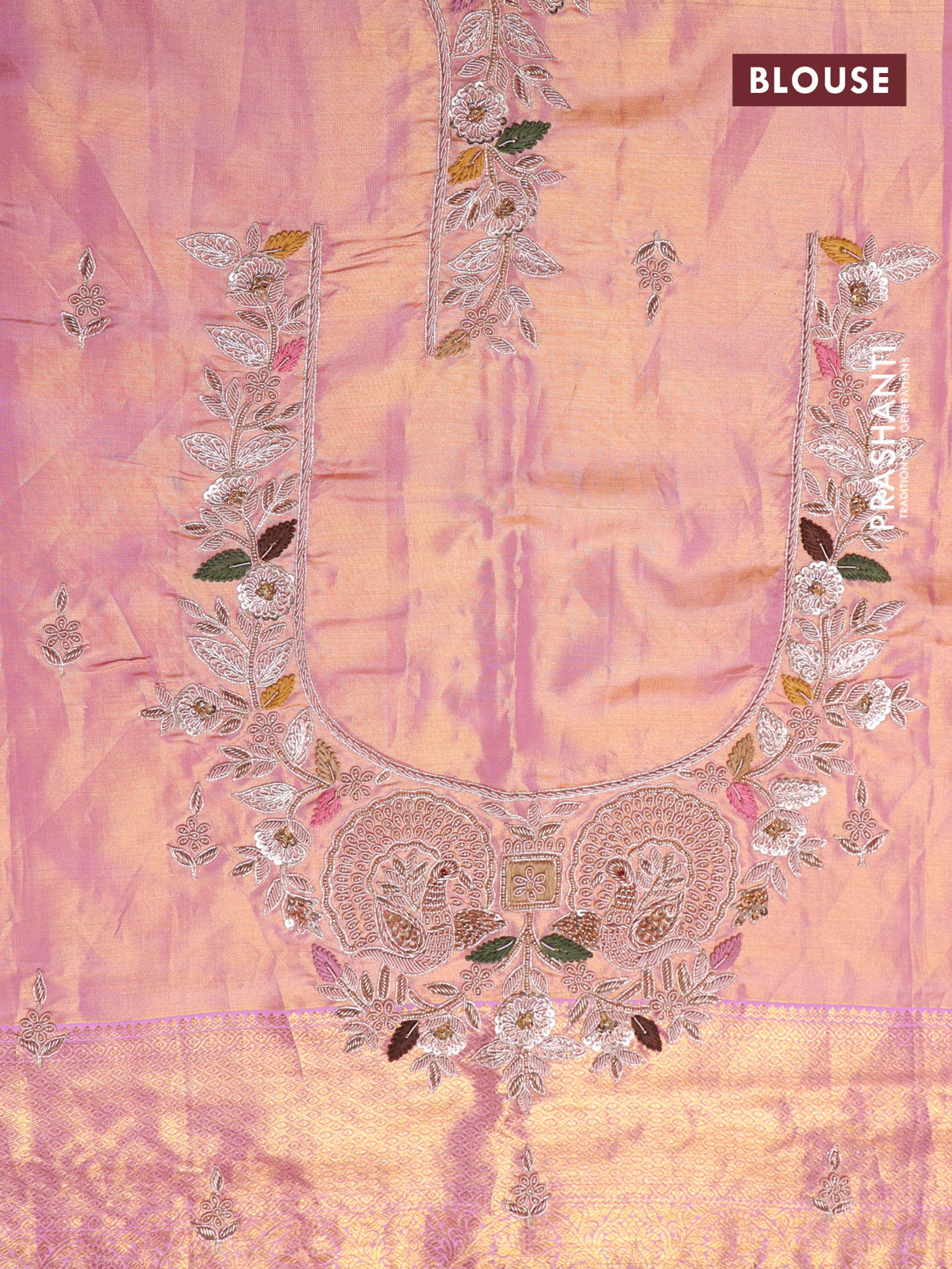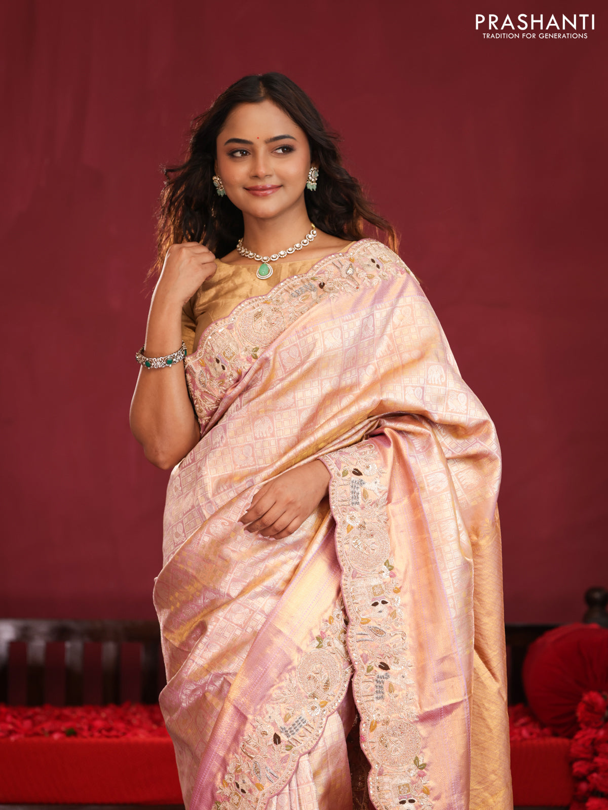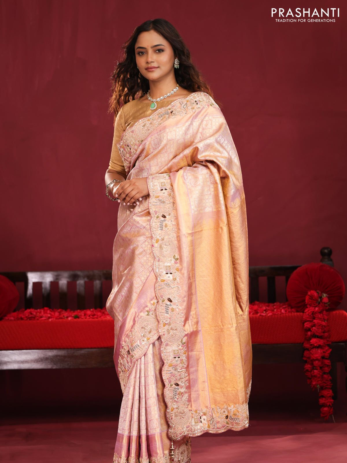 Pastel pink pure kanchipuram silk saree with brocade zari weaves & embroidery
