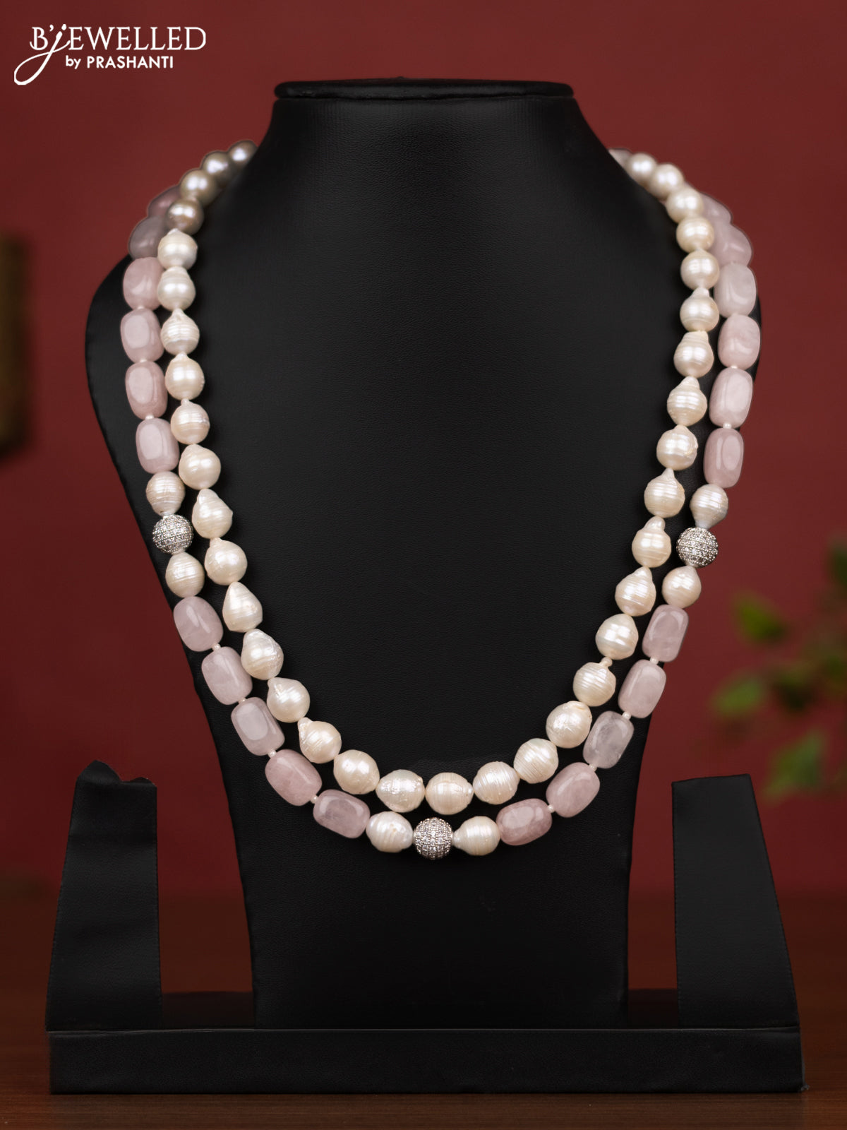 Pearl baby pink and offwhite maala double layer without earring