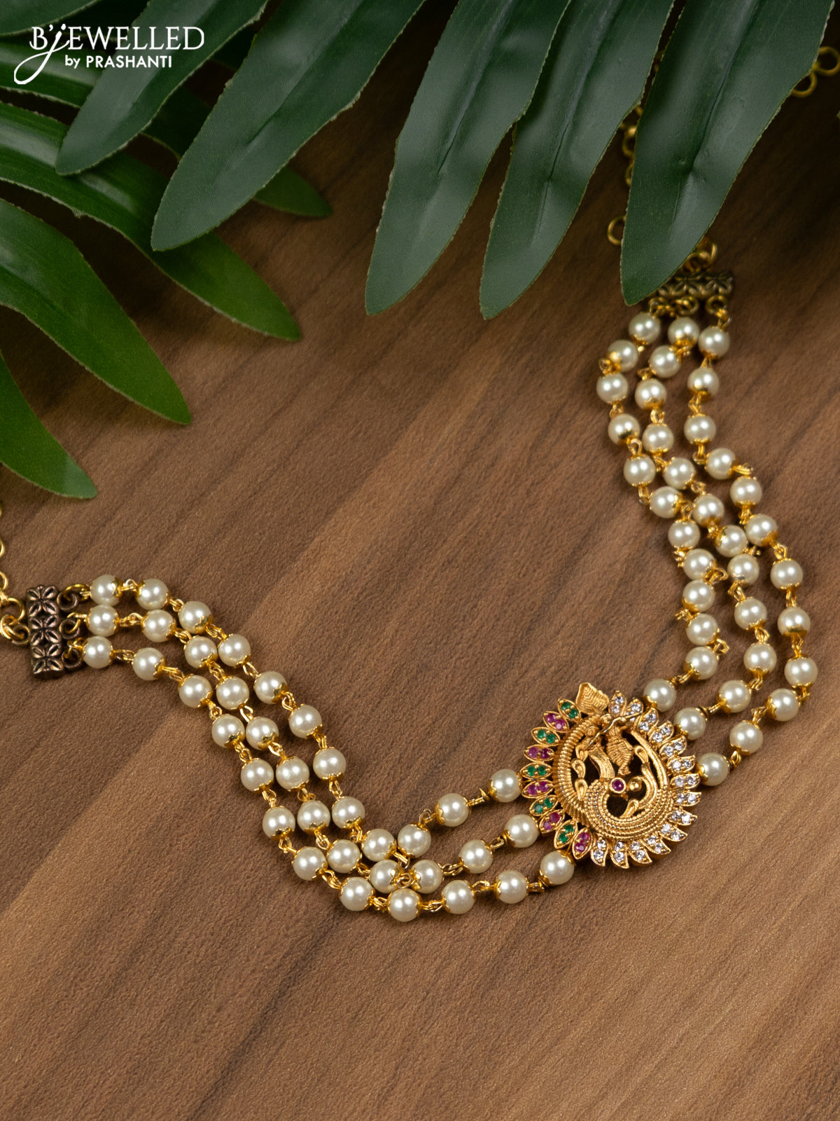 Pearl choker radhakrishna pendant with kemp and cz stones without earring