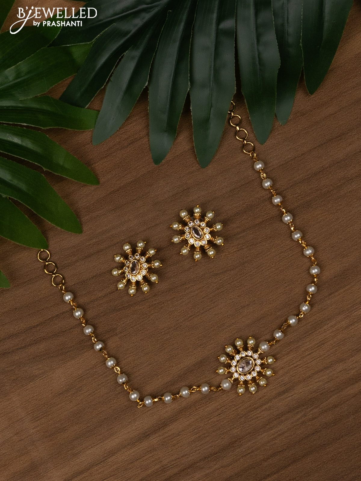 Pearl choker with cz stones and pearls