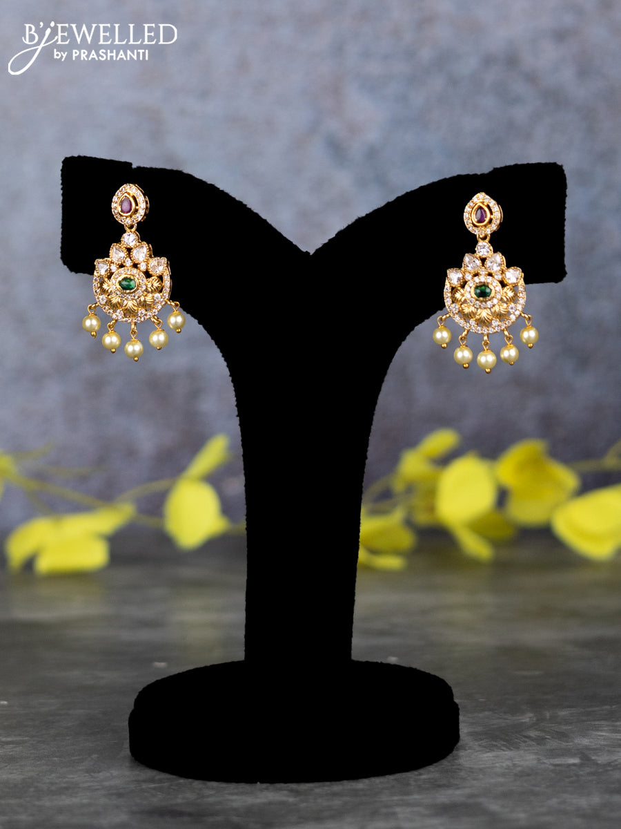 Pearl double layer haram elephant design with kemp & cz stones and pearl hangings