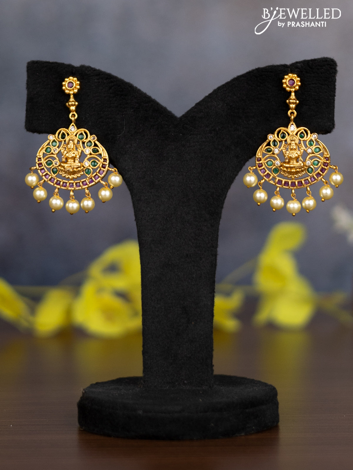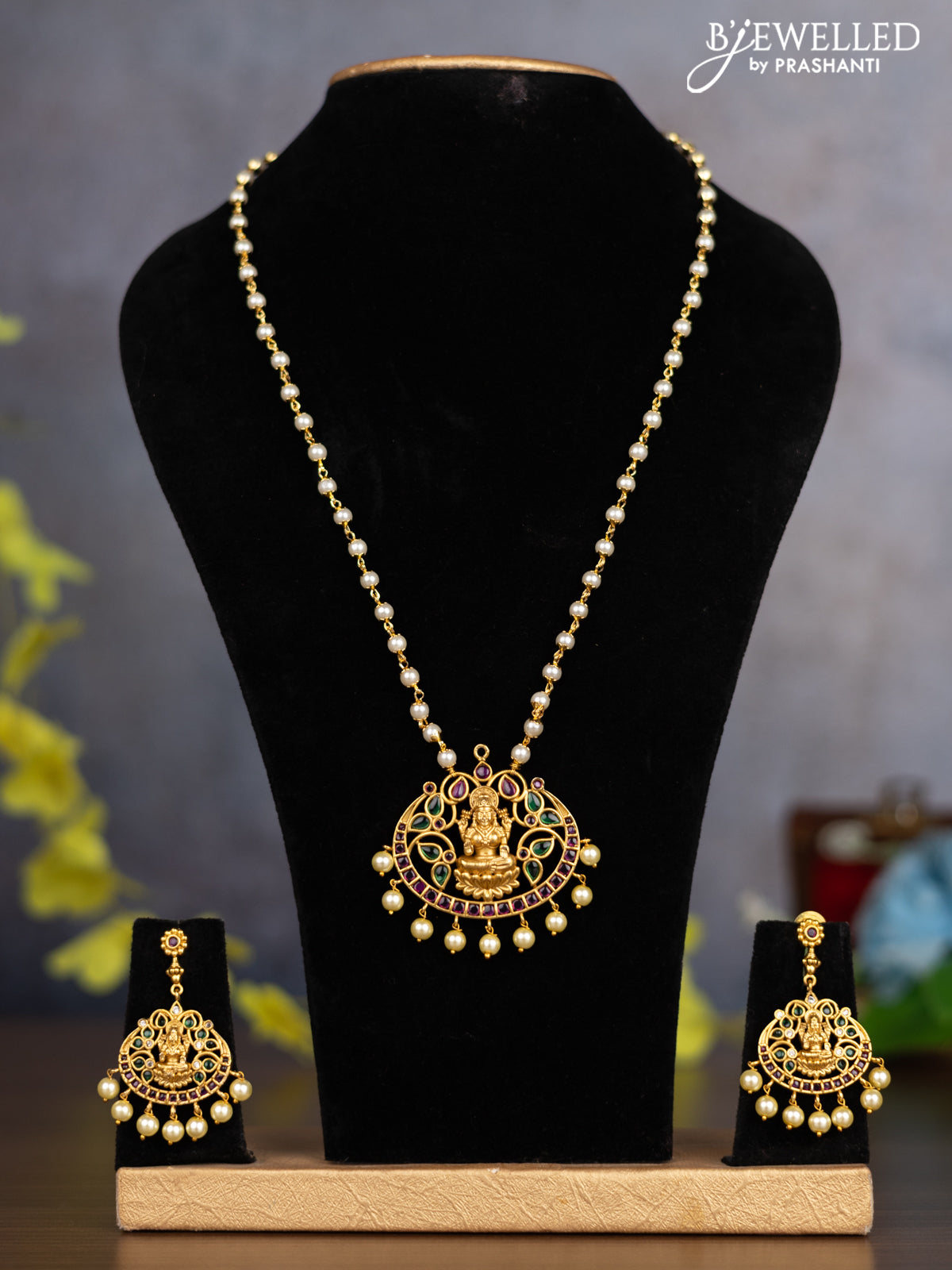 Pearl necklace lakshmi pendant with kemp & cz stones and pearl hangings