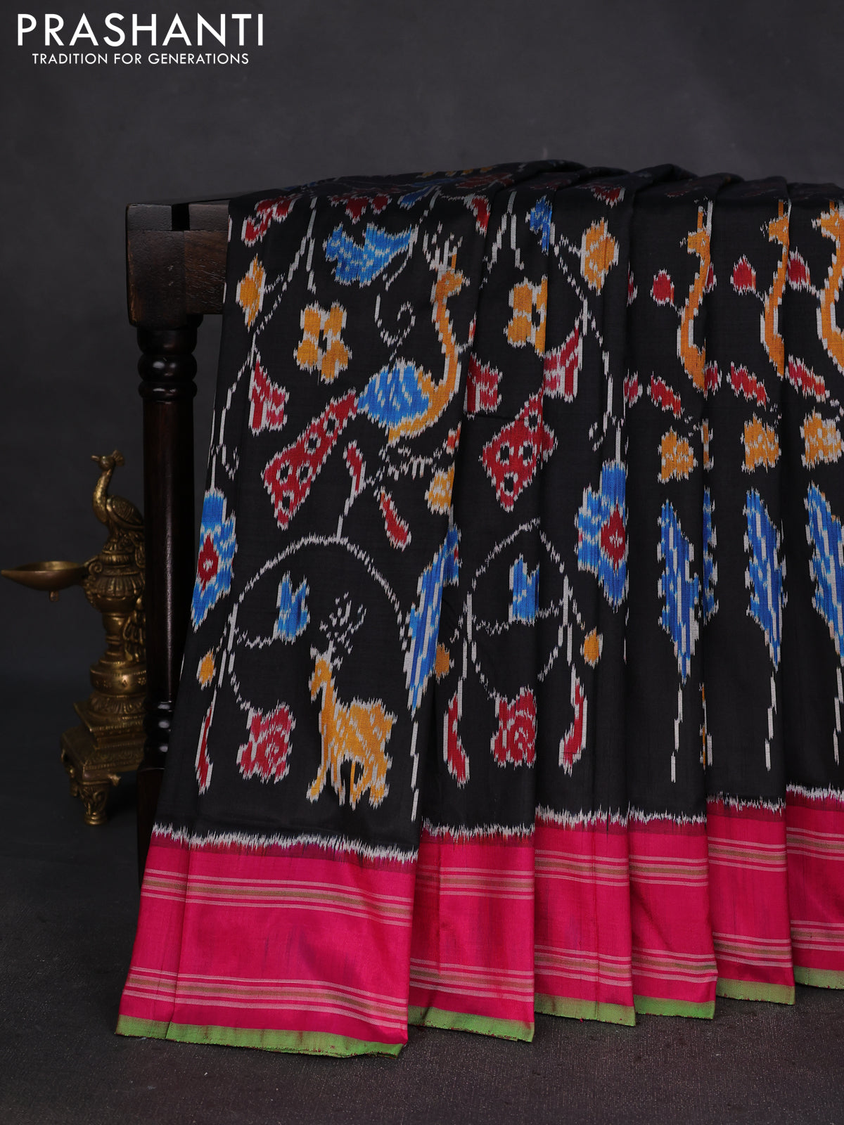 Pochampally silk saree black and pink with allover ikat weaves and rettapet border