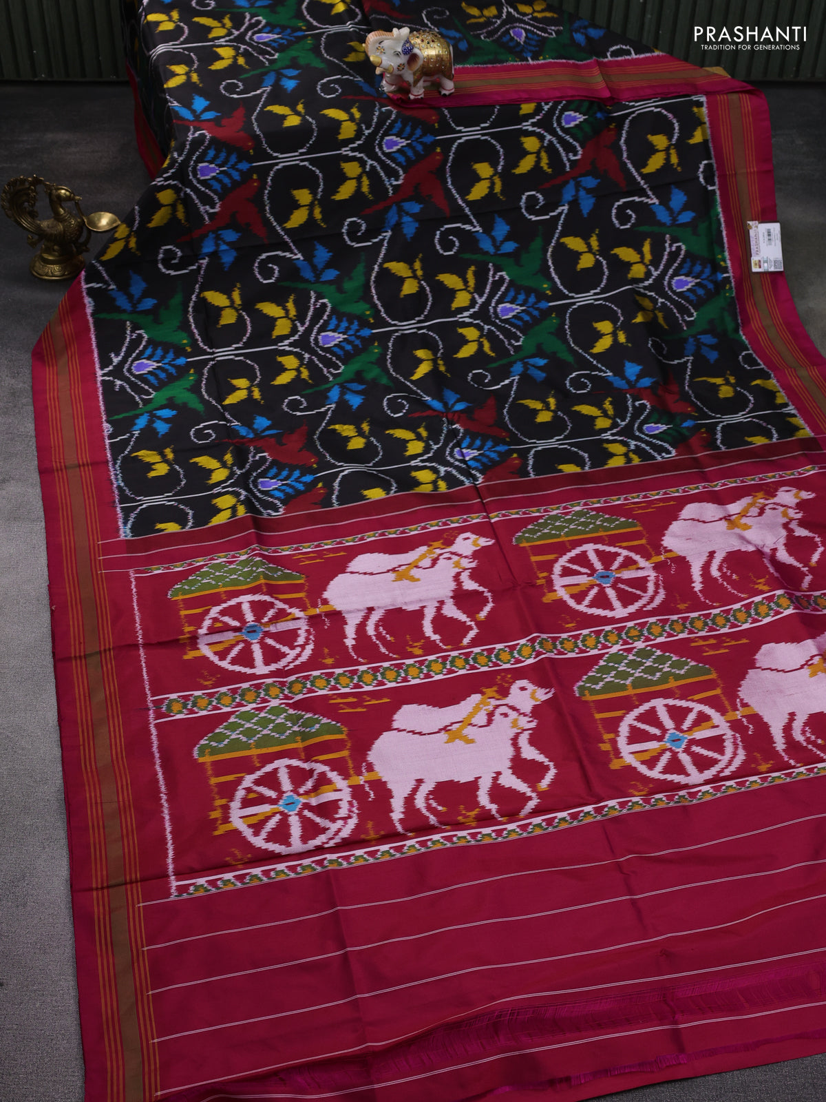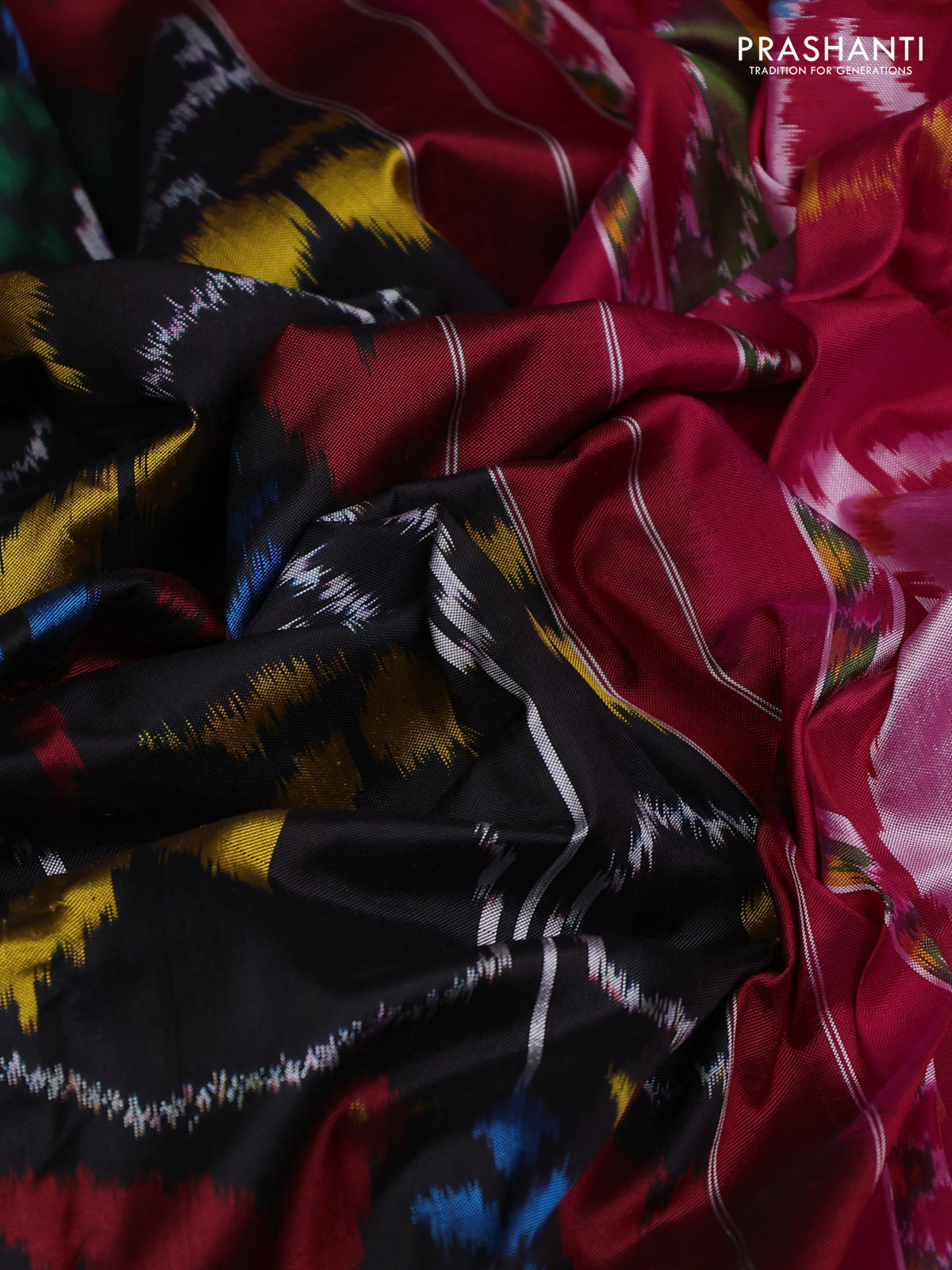 Pochampally silk saree black and pink with allover patola weaves and rettapet border