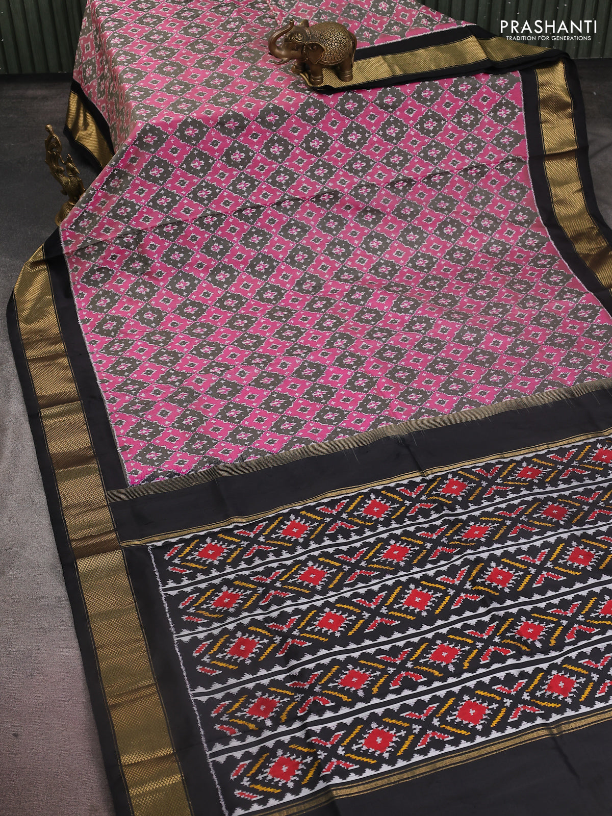 Pochampally silk saree black pink and black with allover ikat weaves and zari woven border