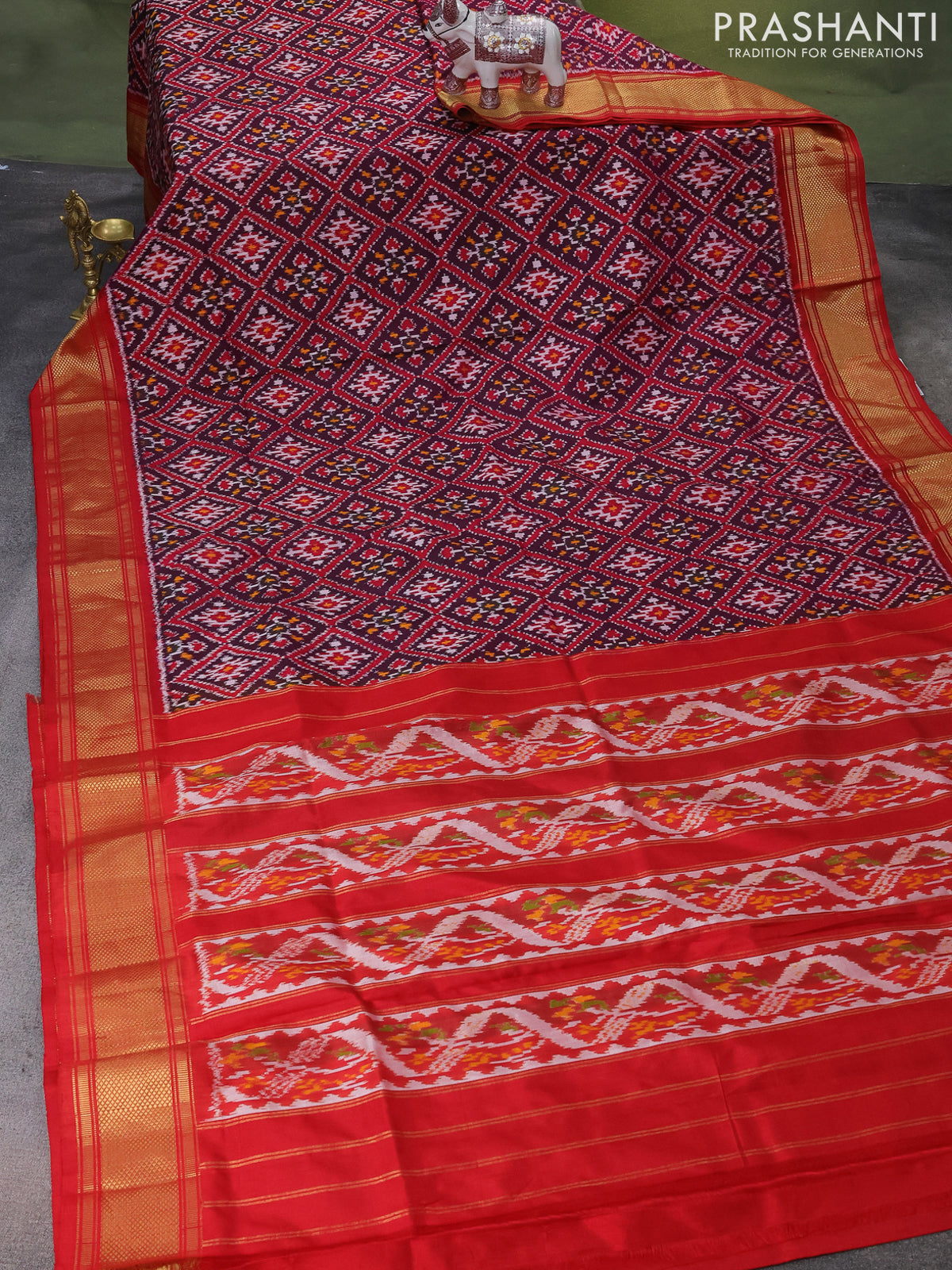 Pochampally silk saree deep wine shade and maroon with allover ikat weaves and zari woven border