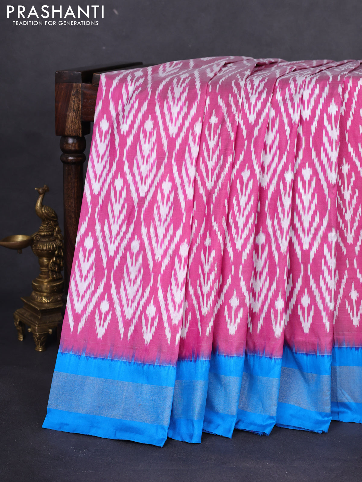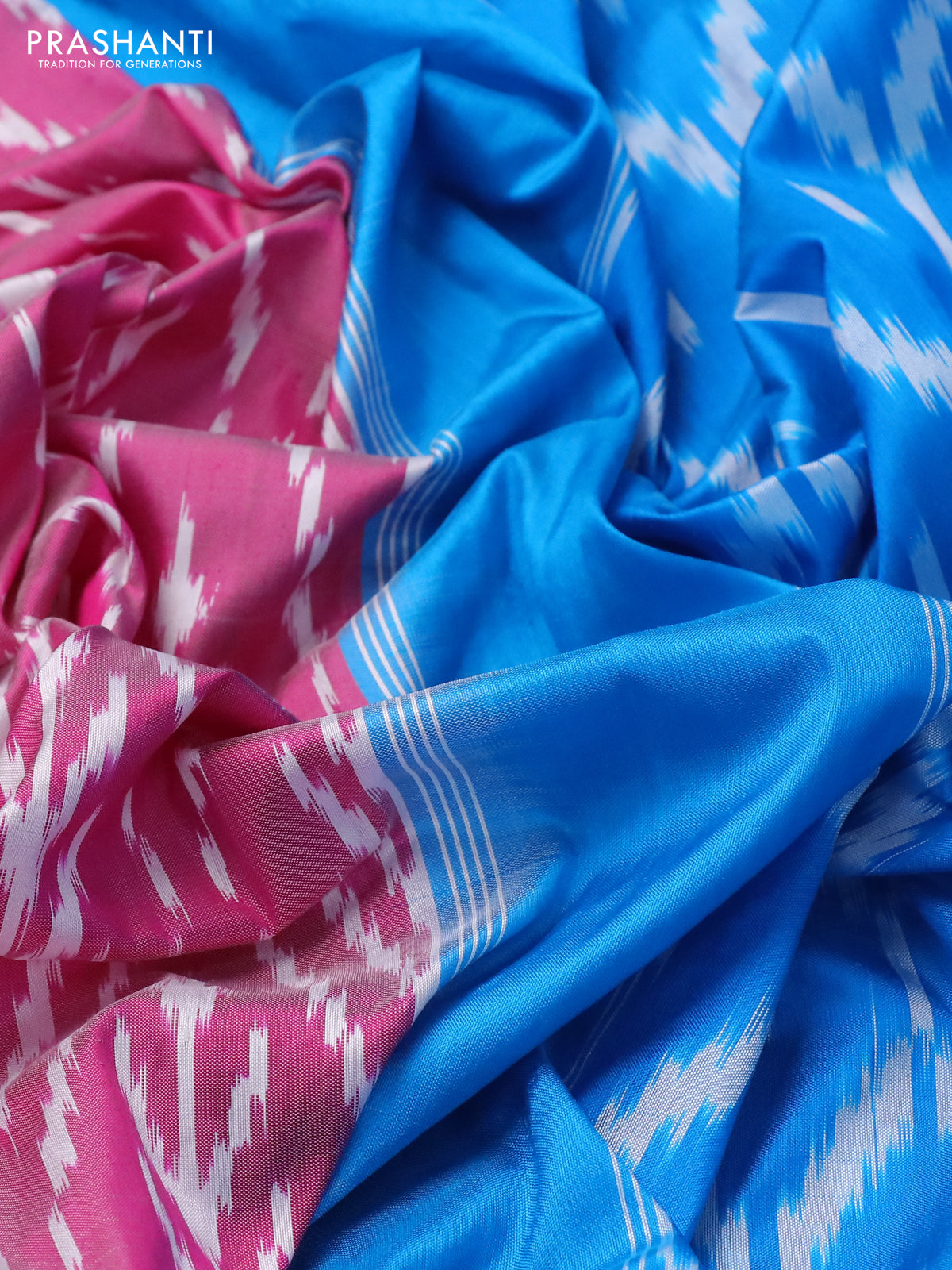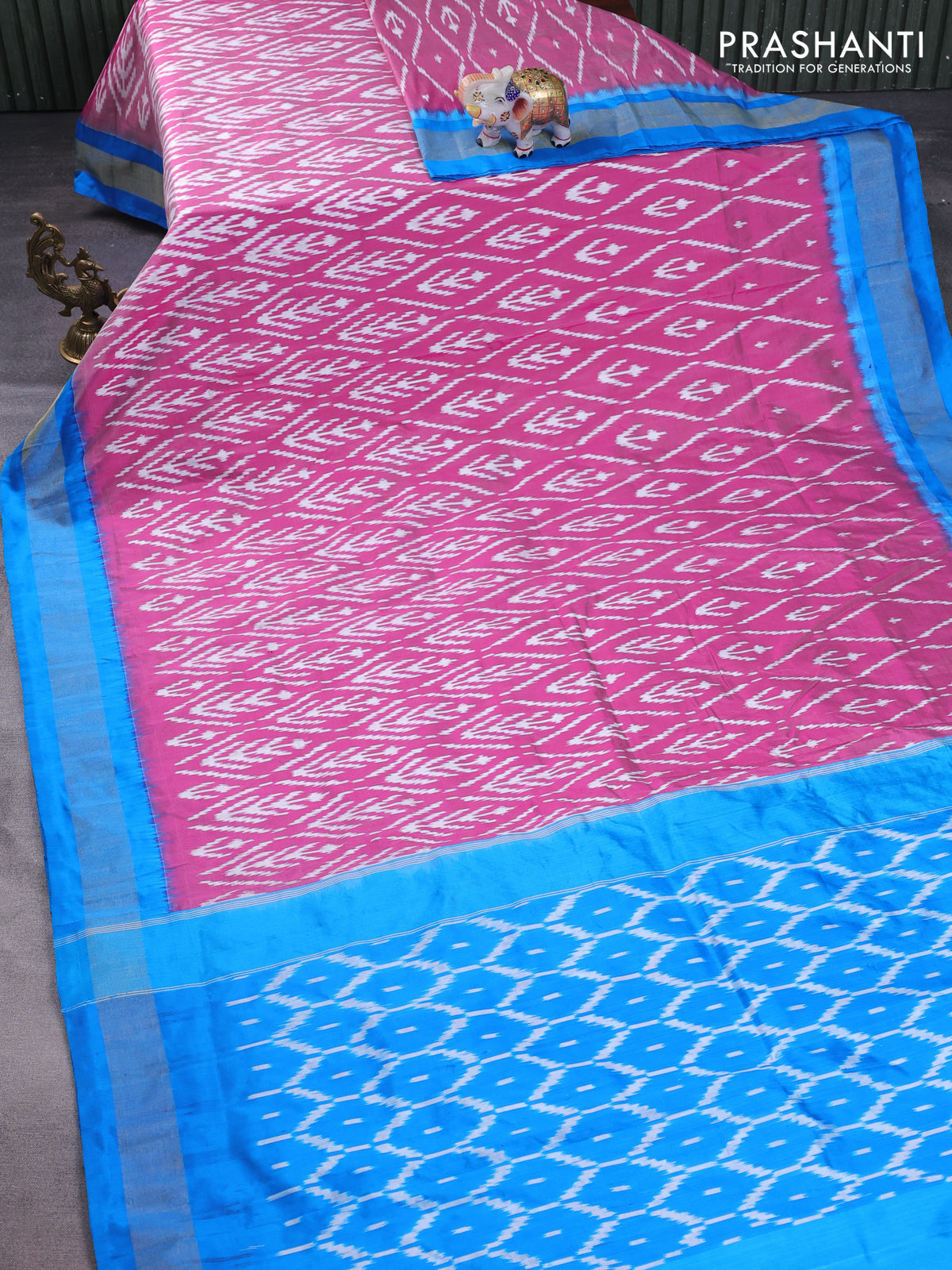 Pochampally silk saree magenta pink and cs blue with allover ikat weaves and zari woven border