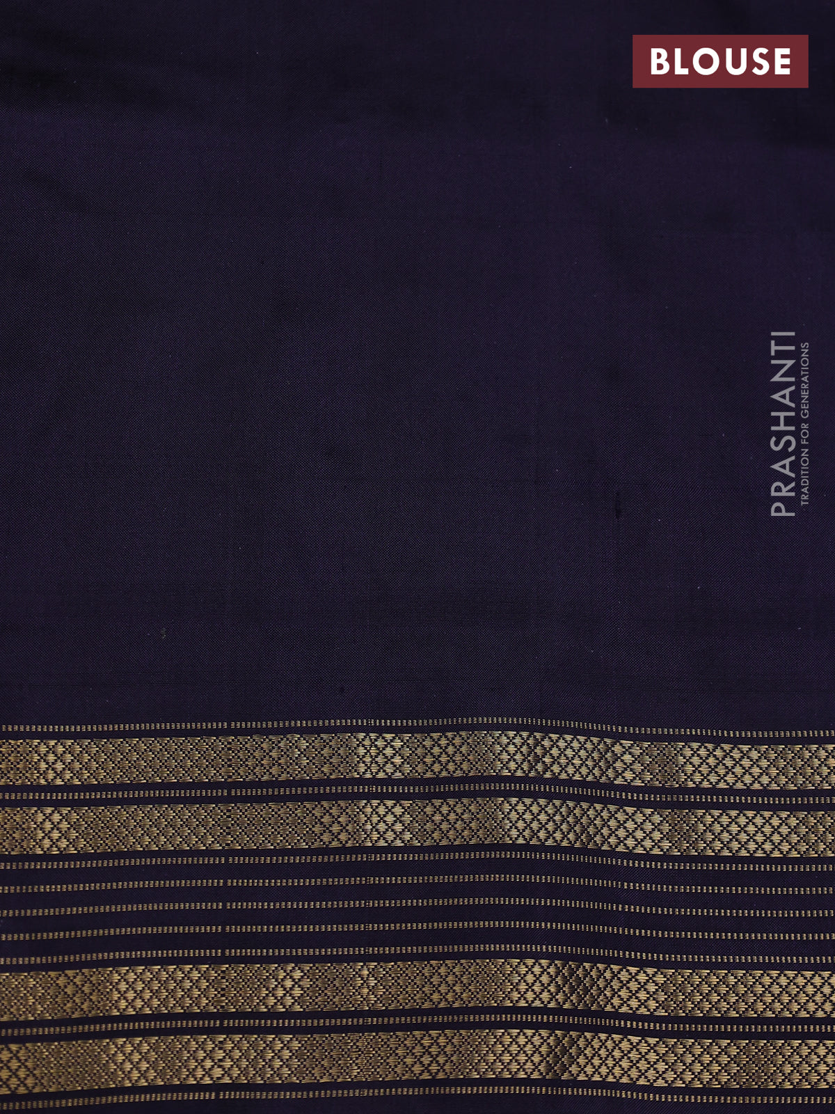 Pochampally silk saree off white and blue with allover ikat weaves and temple design zari woven border