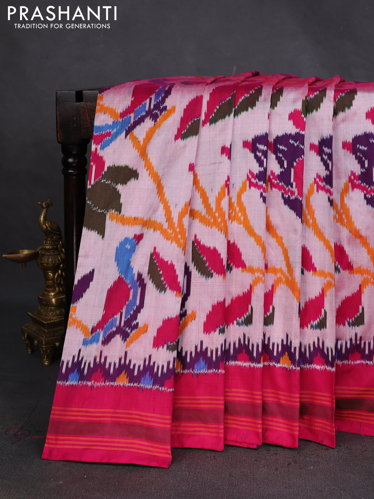 Pochampally silk saree pastel pink and pink with allover patola weaves and rettapet border