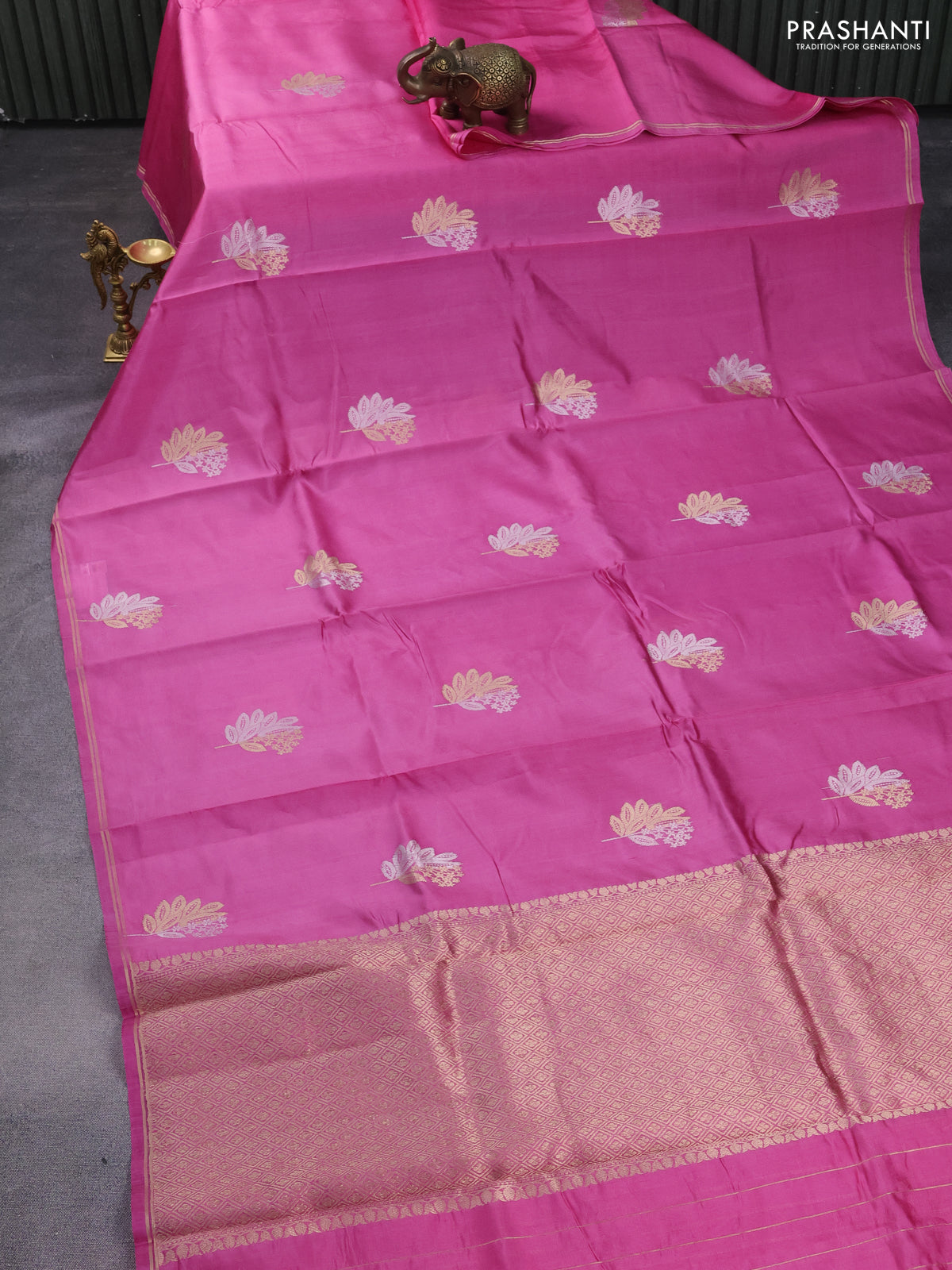 Poona silk saree pink with silver & gold zari woven buttas and zari woven simple border