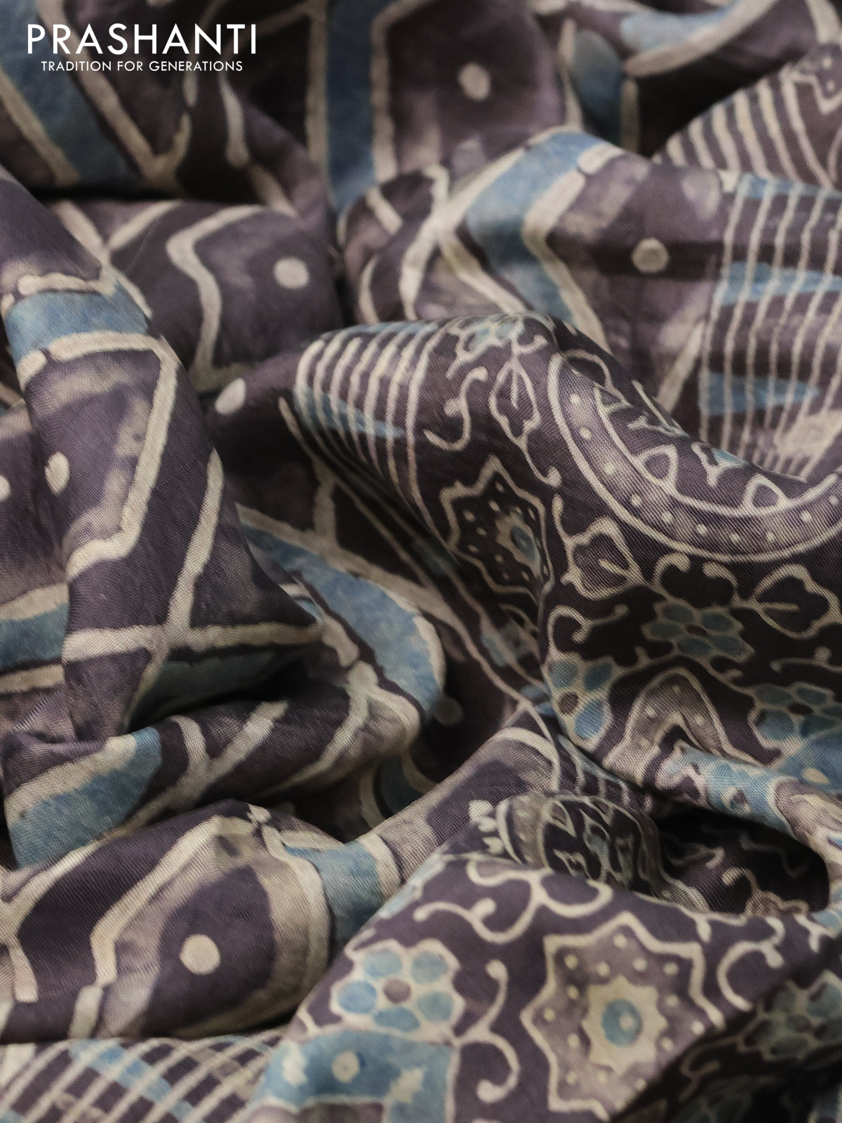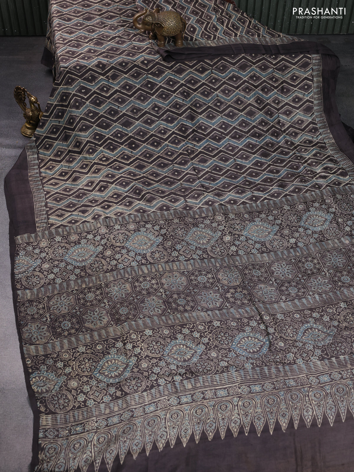 Printed silk saree grey shade with allover ajrakh prints and simple border